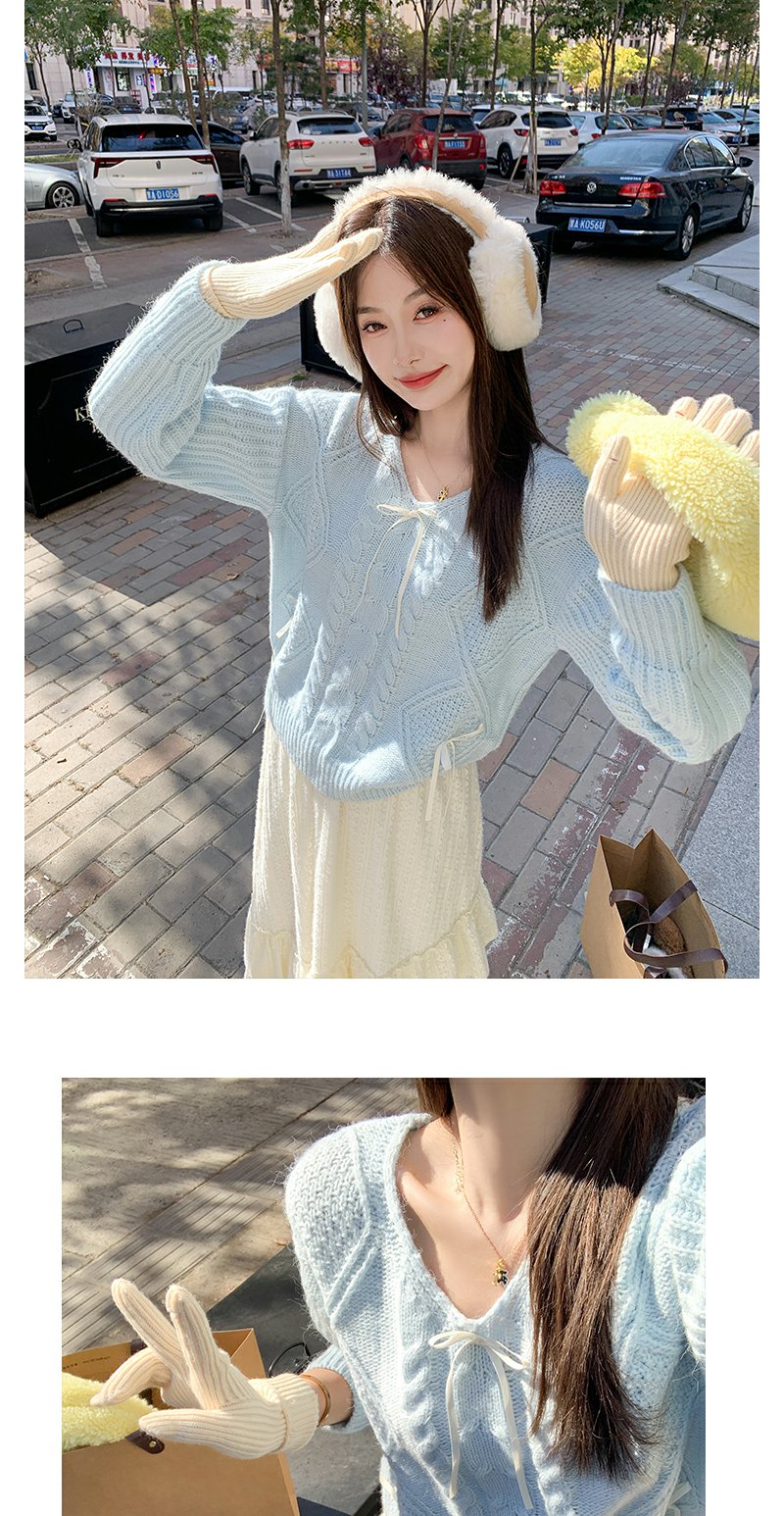 蓝色V领毛衣