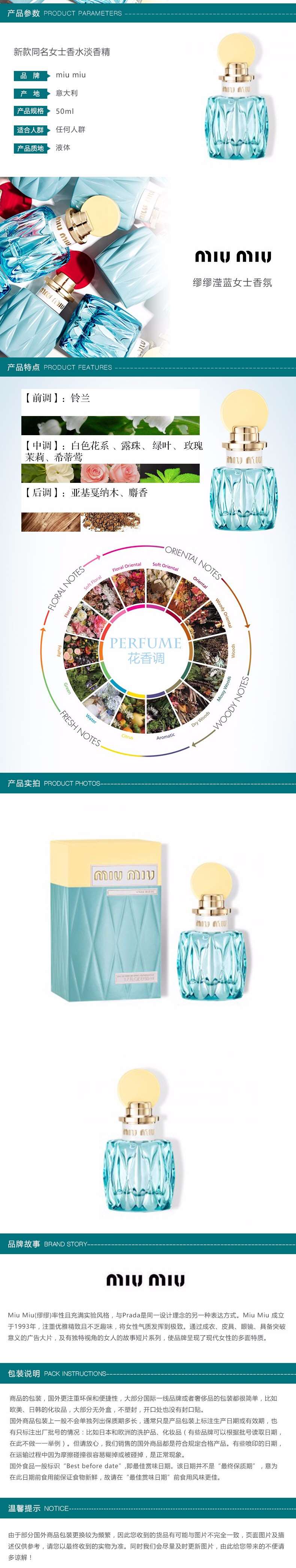 miu miu缪缪 新款同名女士香水 淡香 50ml 意大利