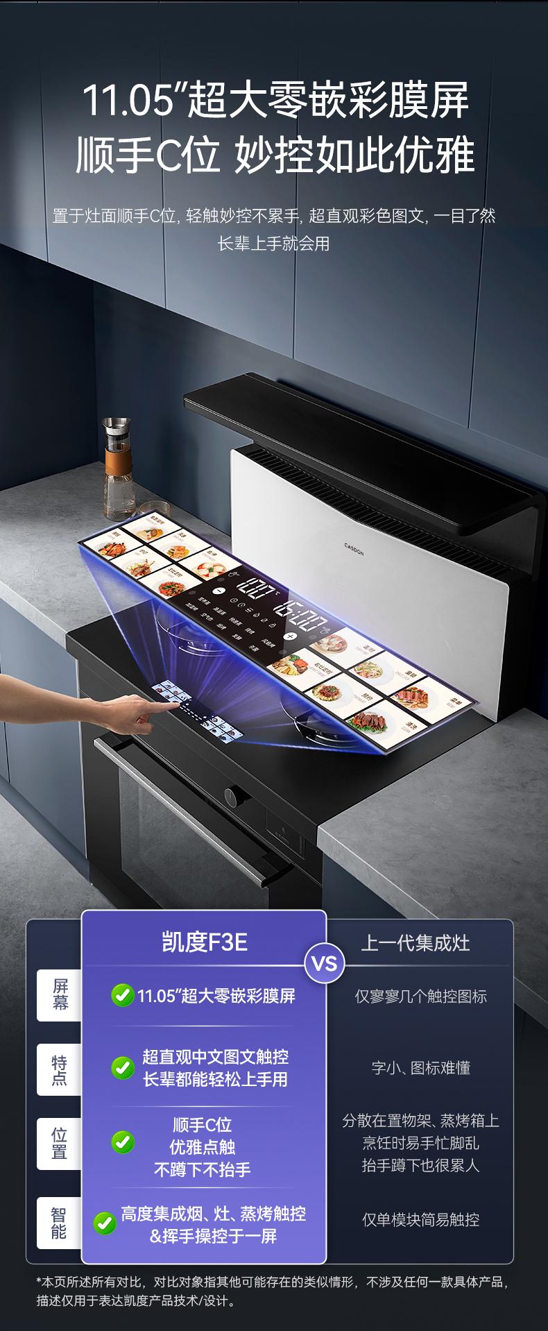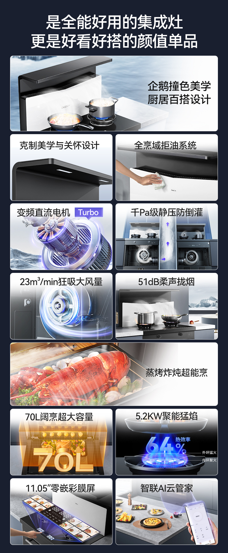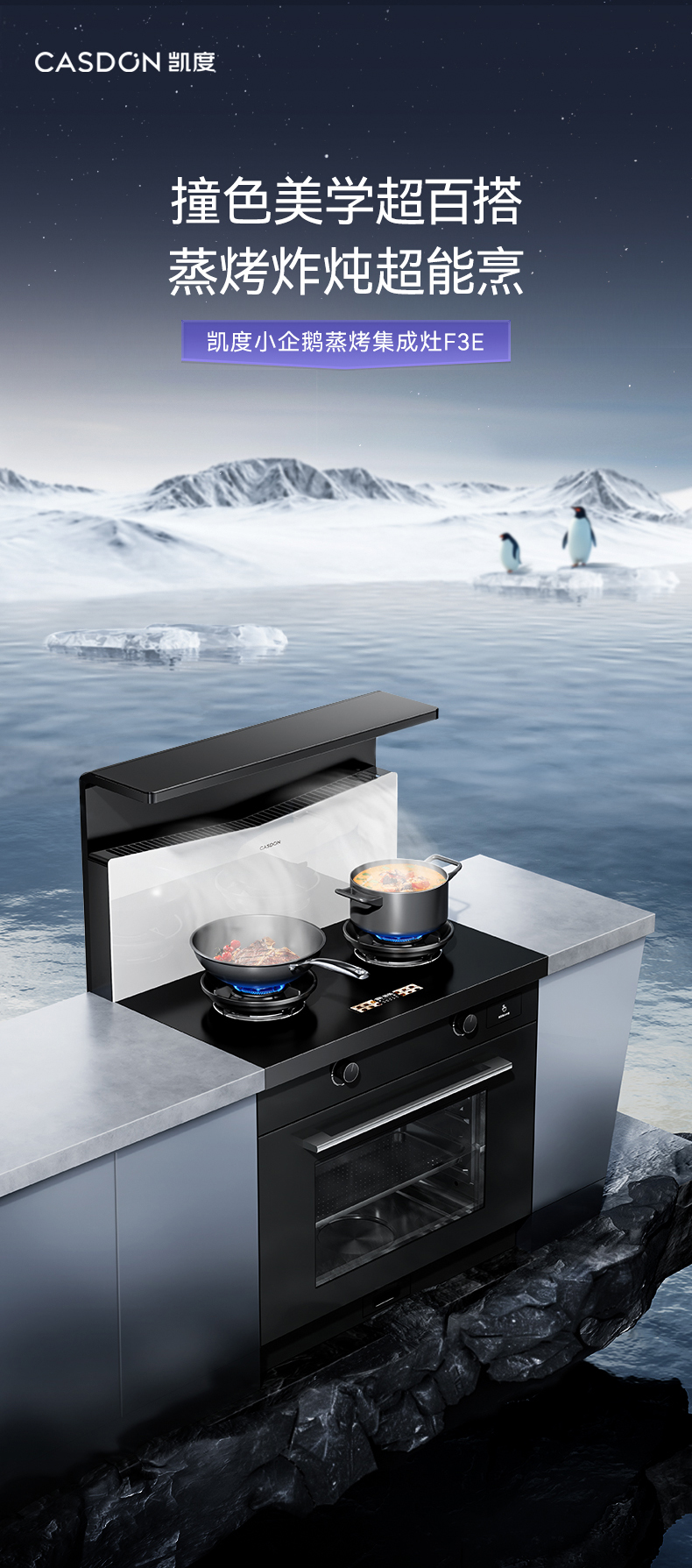【年度新品】凯度小企鹅集成灶F3E家用变频燃气灶烟机蒸烤箱一体