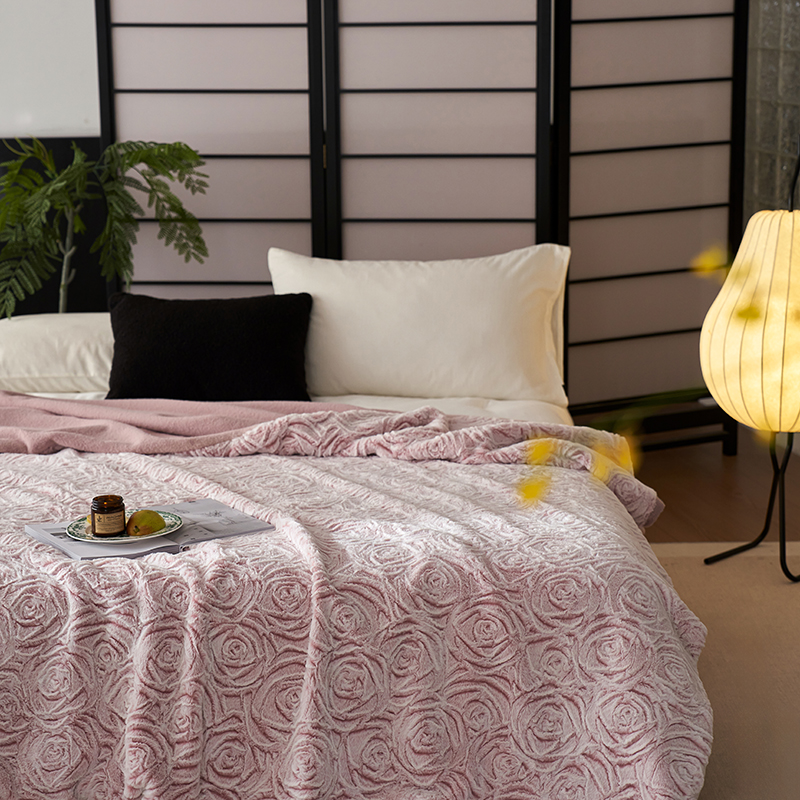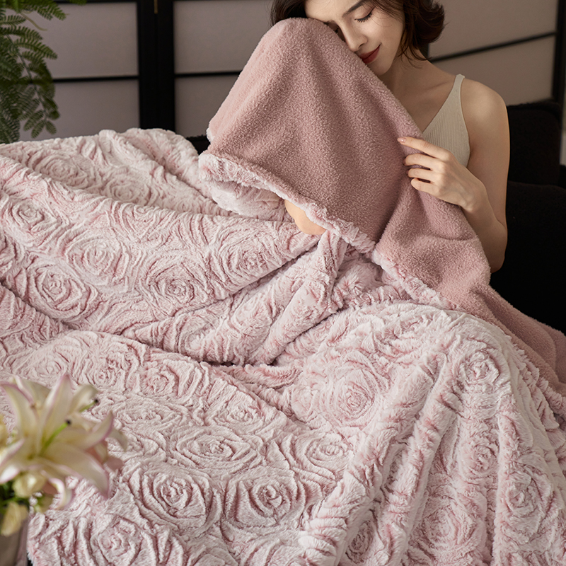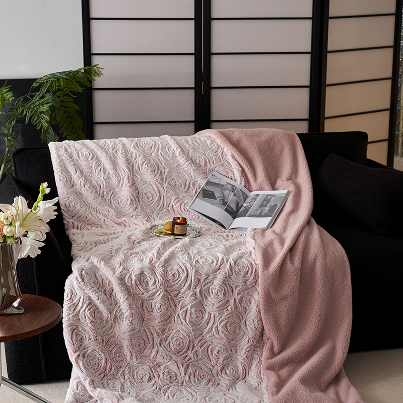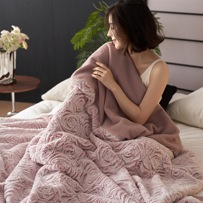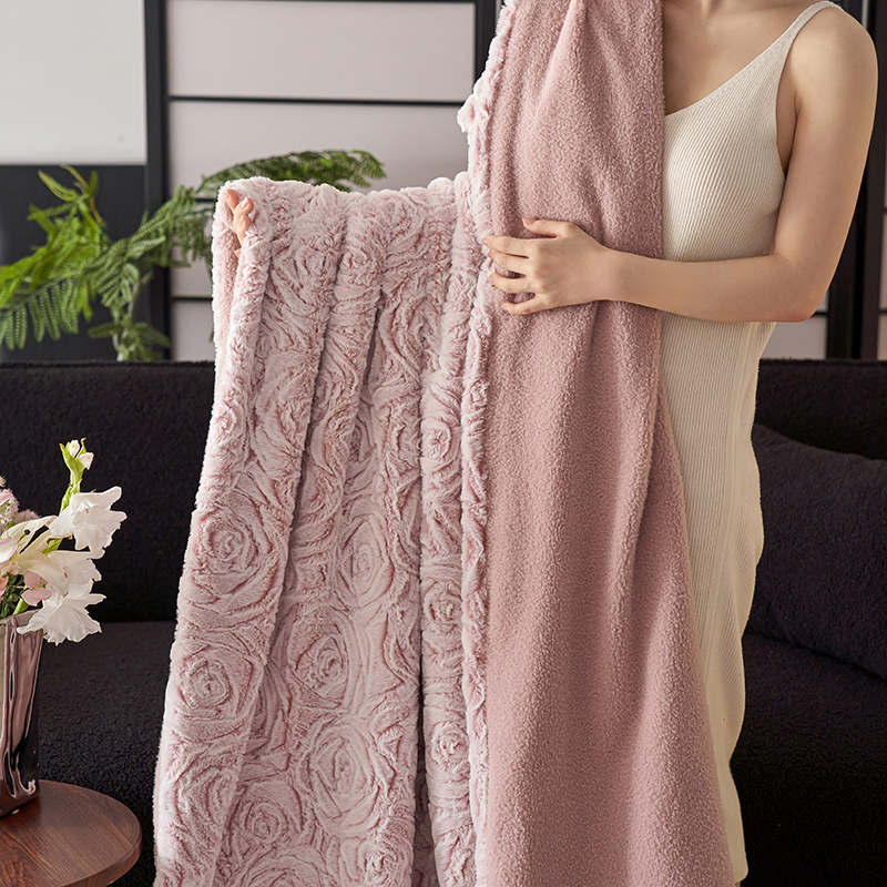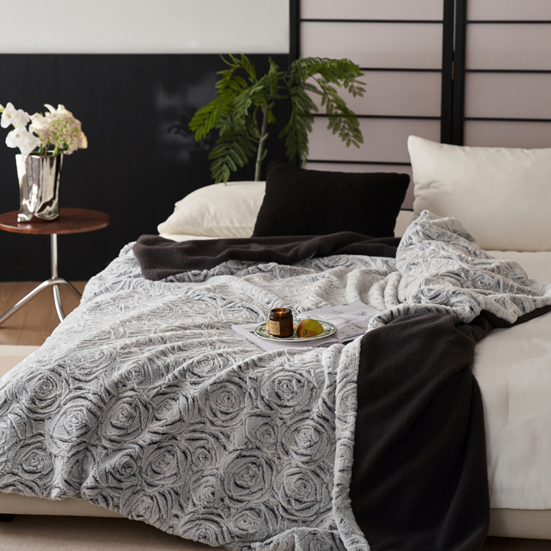 秋冬兔毛大马士革曼塔玫瑰系列盖毯毛毯