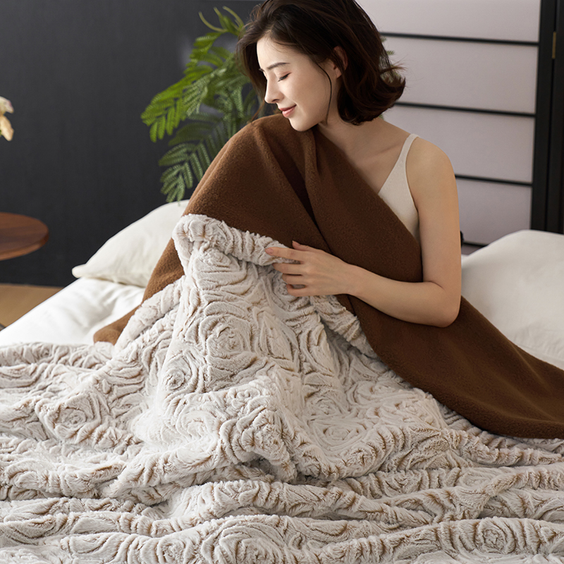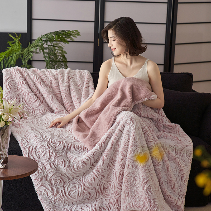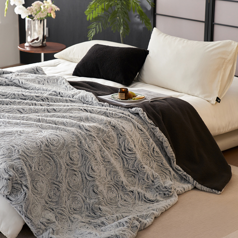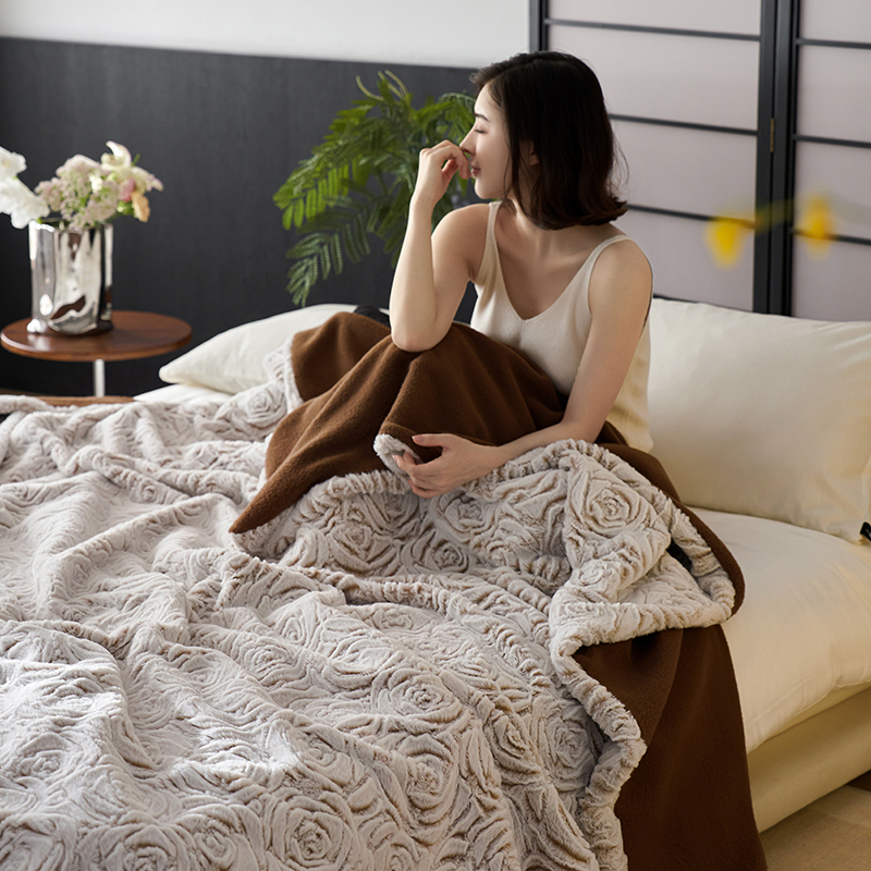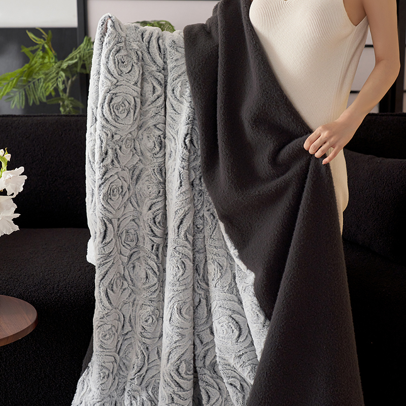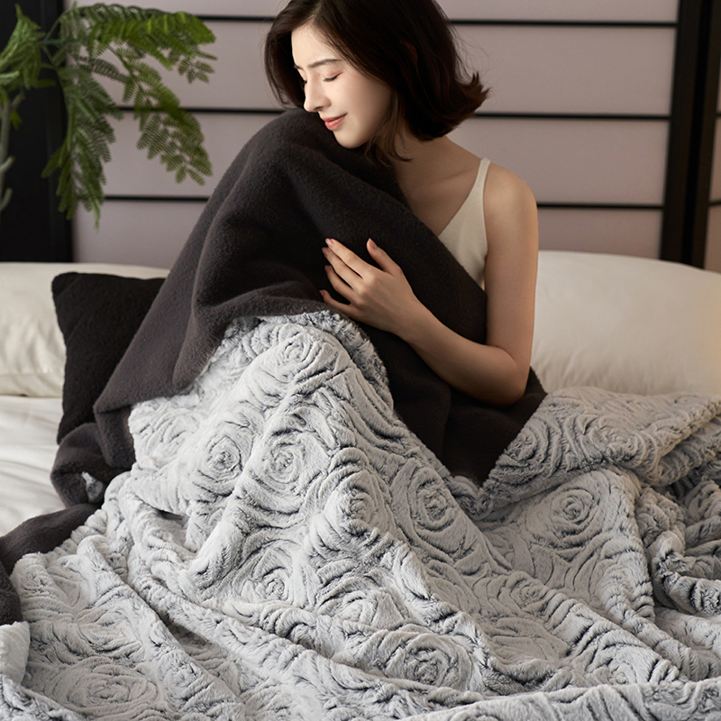 秋冬兔毛大马士革曼塔玫瑰系列盖毯毛毯