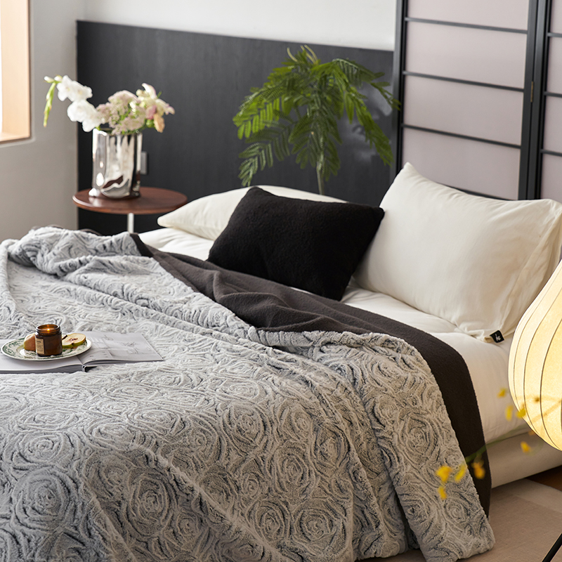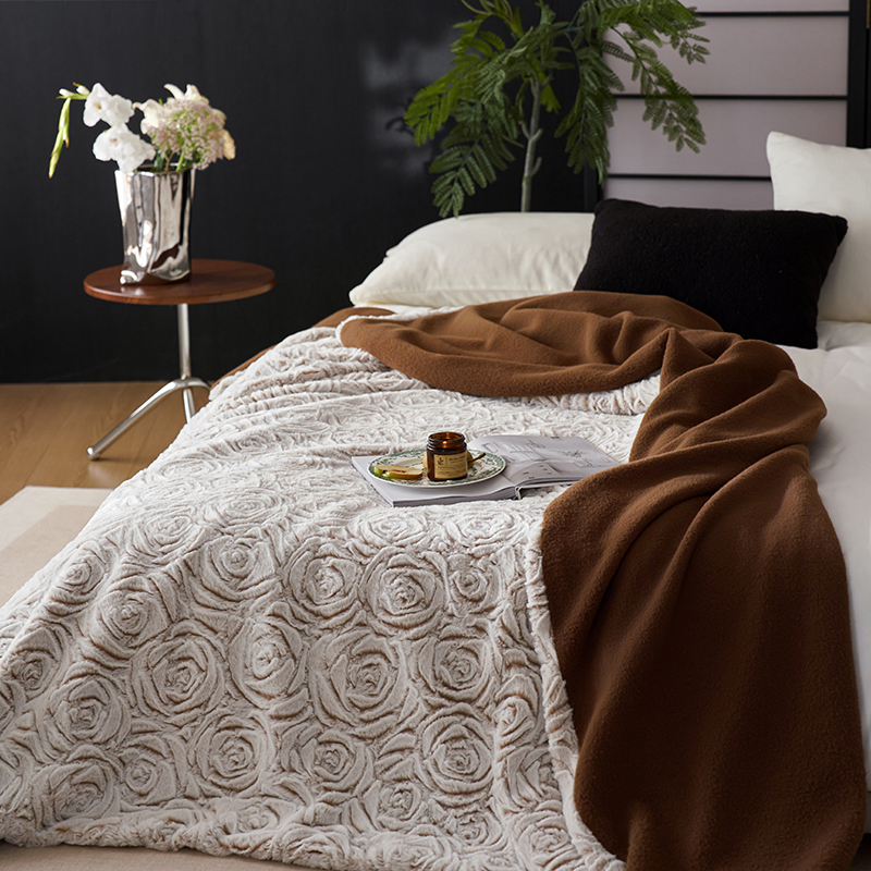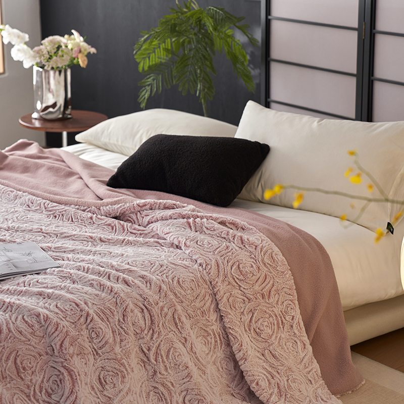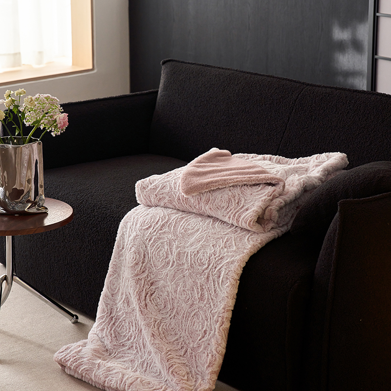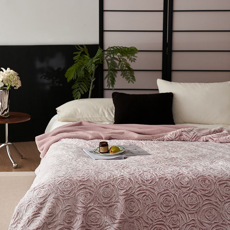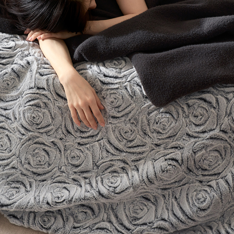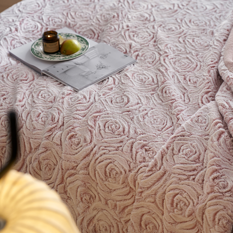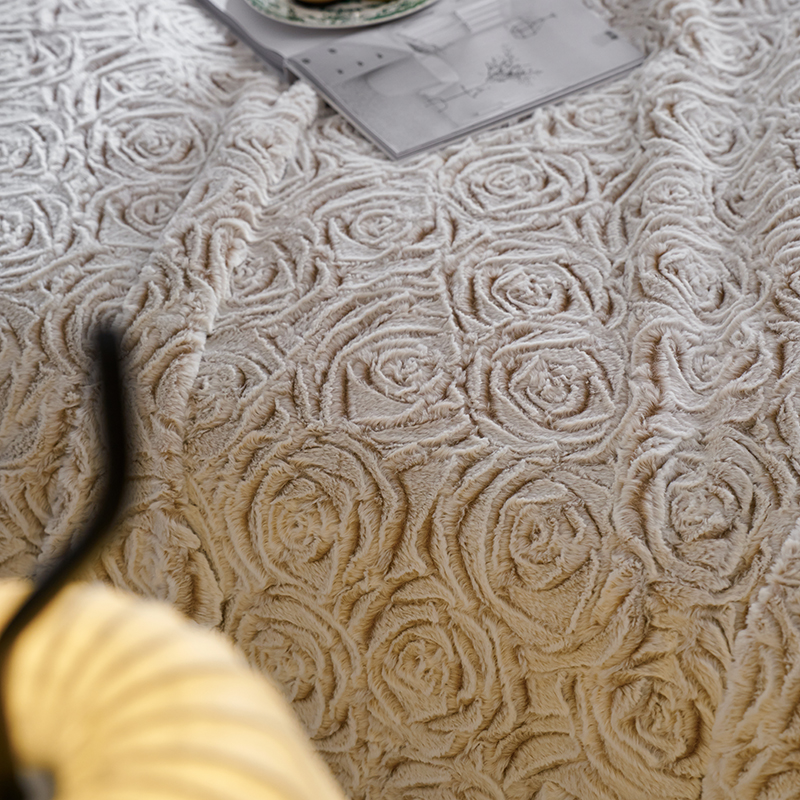 经典兔毛刷花工艺将每一朵玫瑰渲染的更加立体,更有层次的质感呈现,独特且高级。首次采用高端羊毛绒作为底料,让整条毯子更加厚实与亲肤。