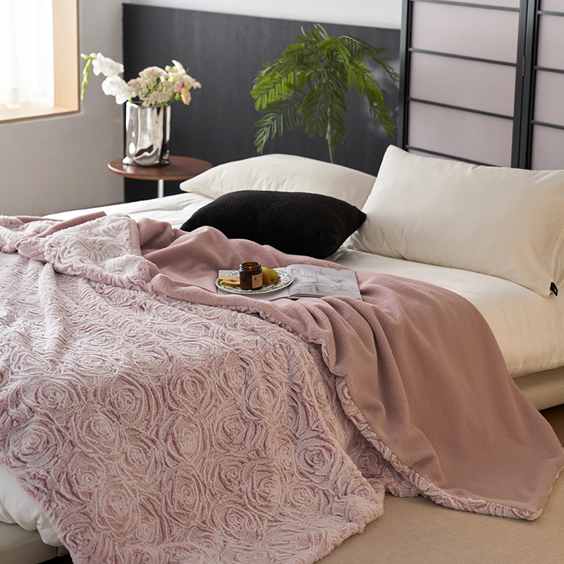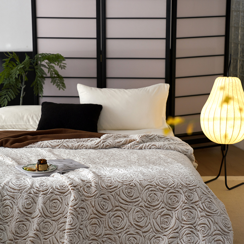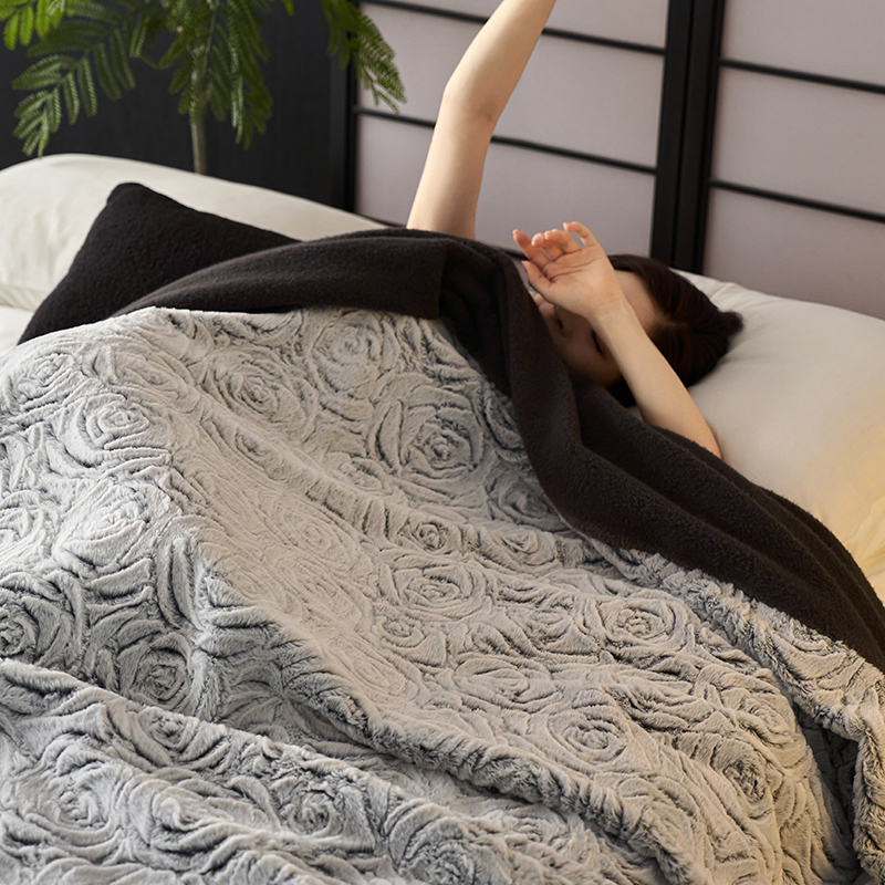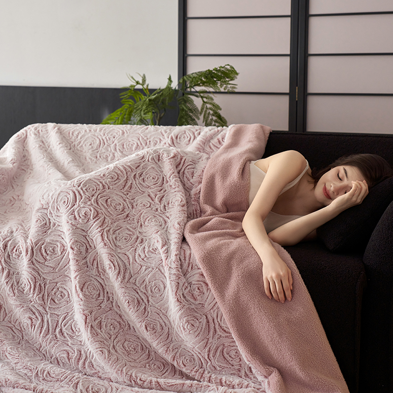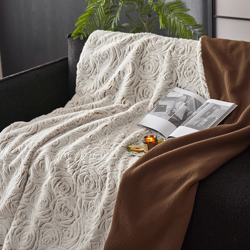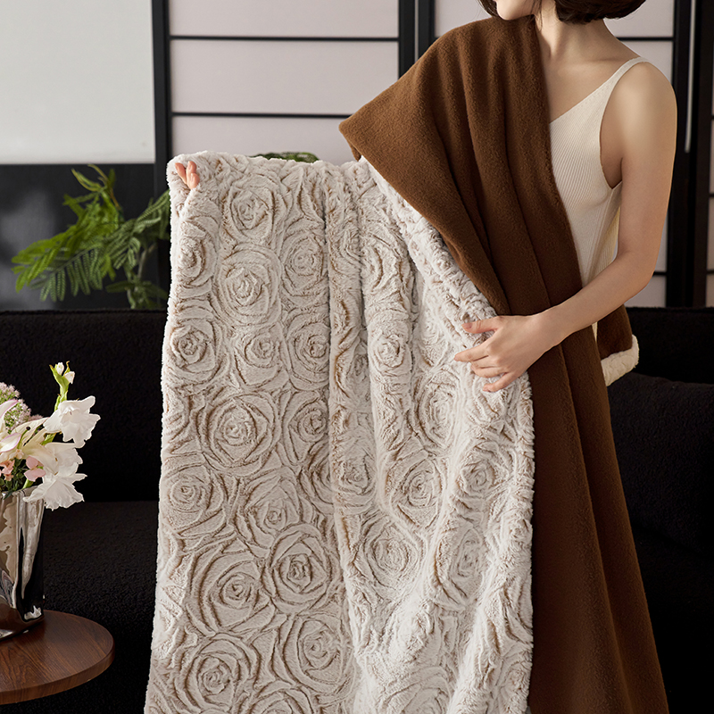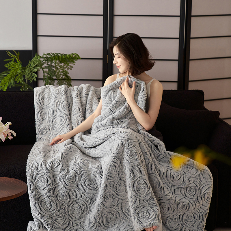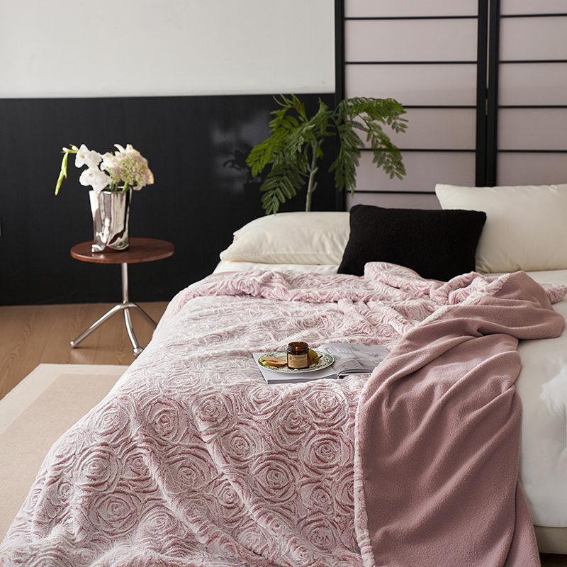 经典兔毛刷花工艺将每一朵玫瑰渲染的更加立体,更有层次的质感呈现,独特且高级。首次采用高端羊毛绒作为底料,让整条毯子更加厚实与亲肤。