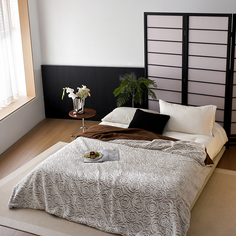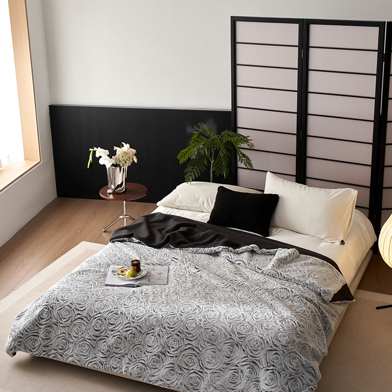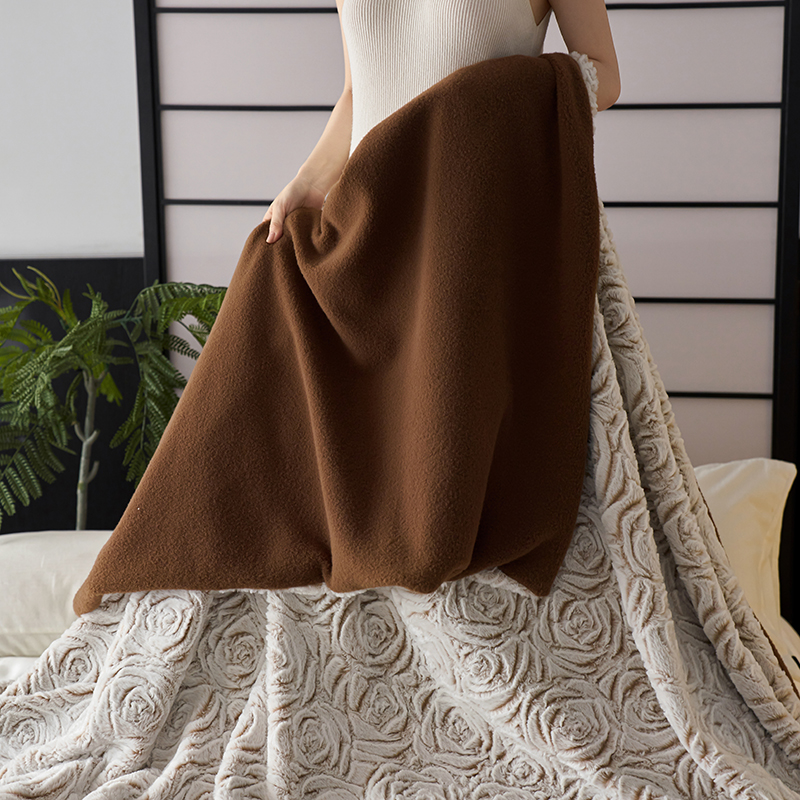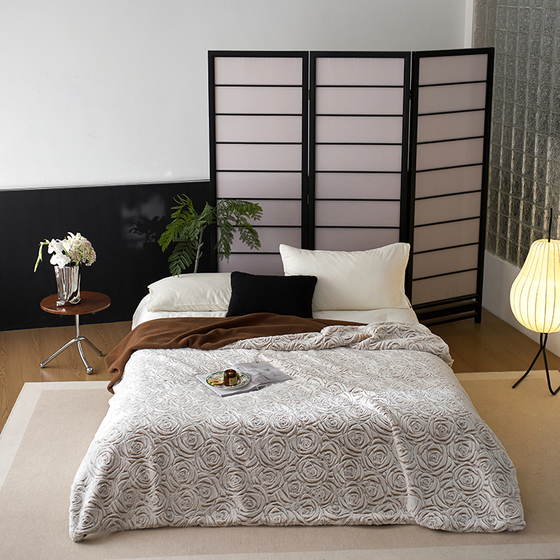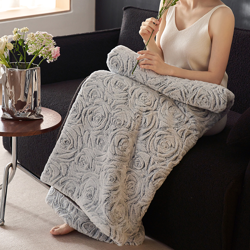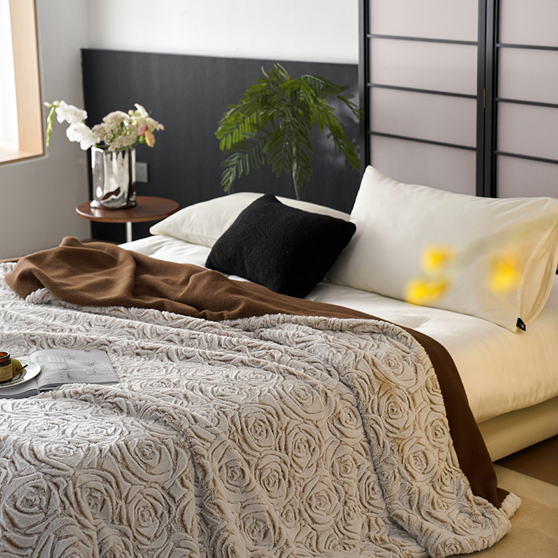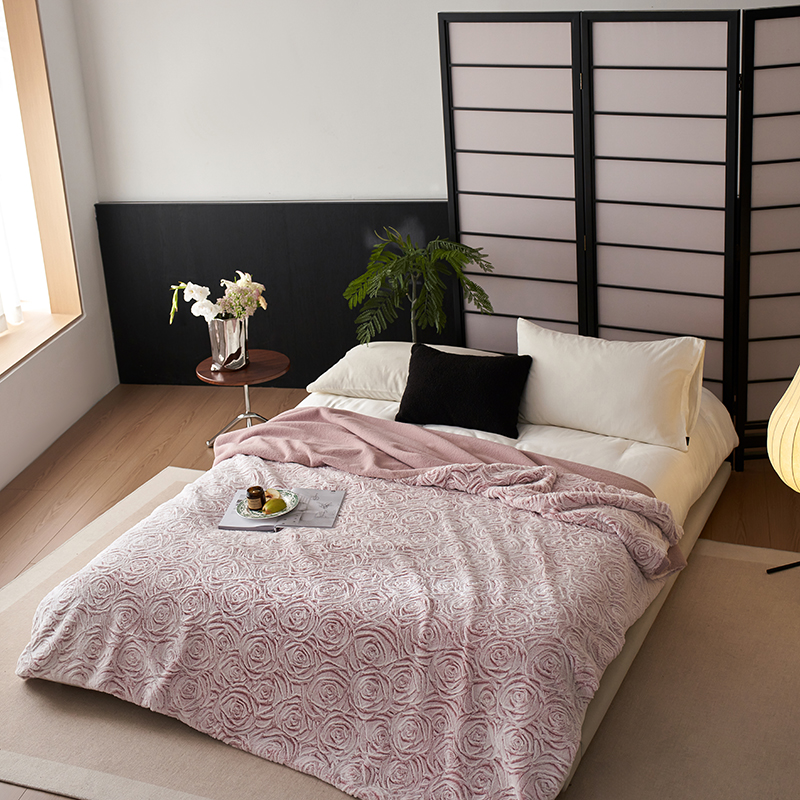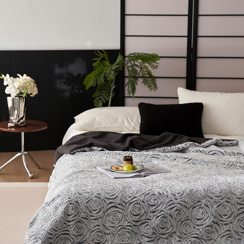 经典兔毛刷花工艺将每一朵玫瑰渲染的更加立体,更有层次的质感呈现,独特且高级。首次采用高端羊毛绒作为底料,让整条毯子更加厚实与亲肤。