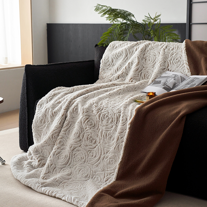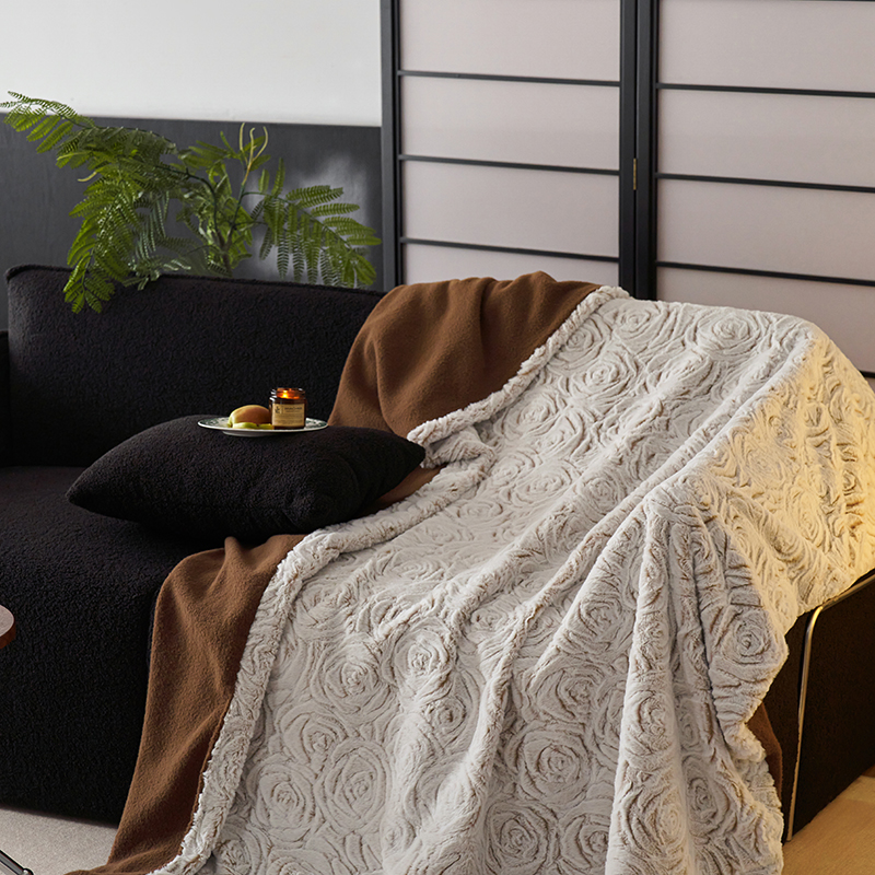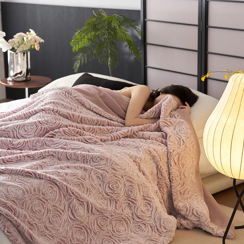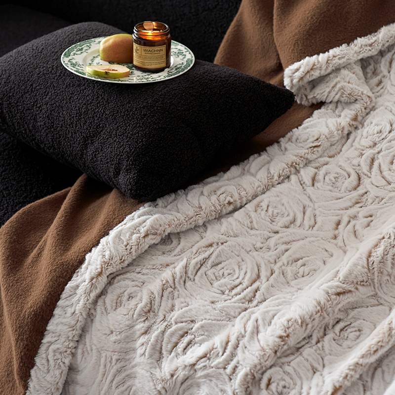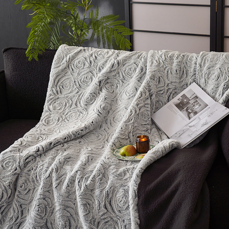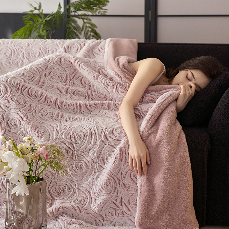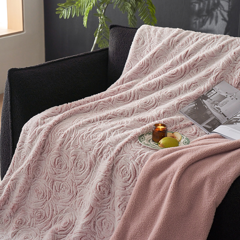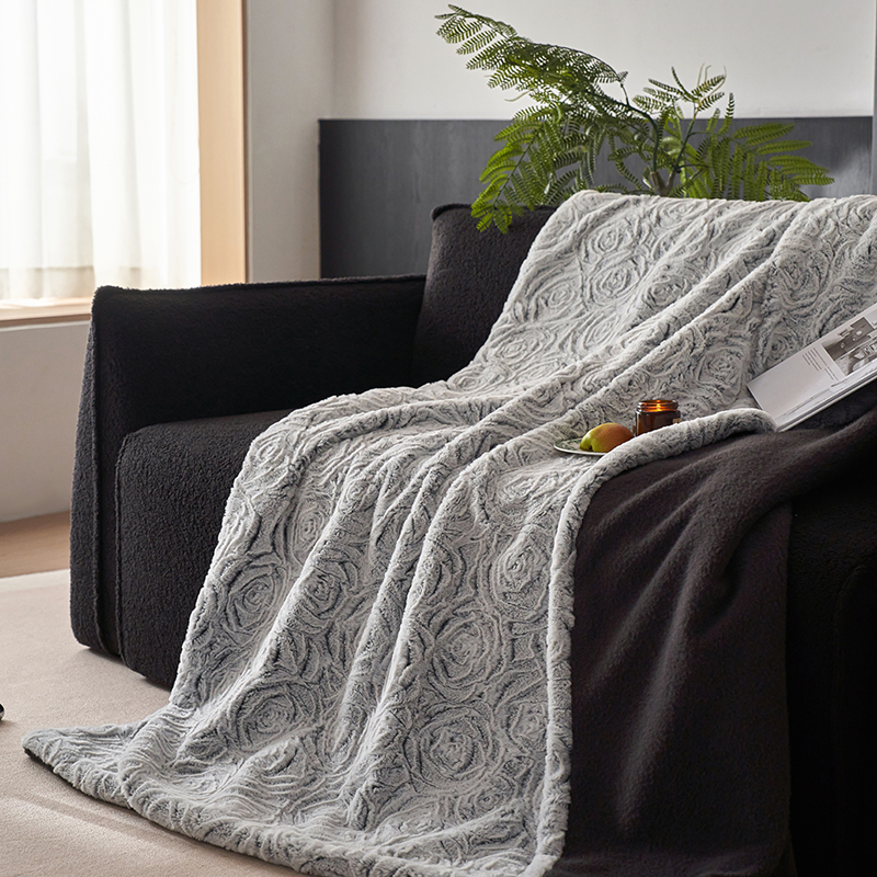 自然醒兔毛大马士革曼塔玫瑰系列盖毯毛毯欧式肌理感立体刷花兔毛绒毛毯秋冬加厚午睡毯高端沙发毯盖毯MT