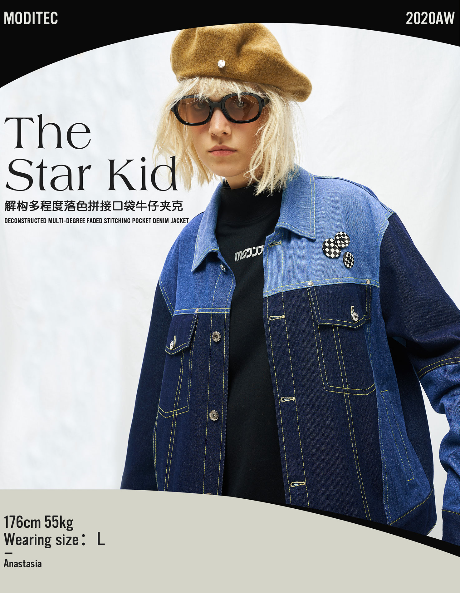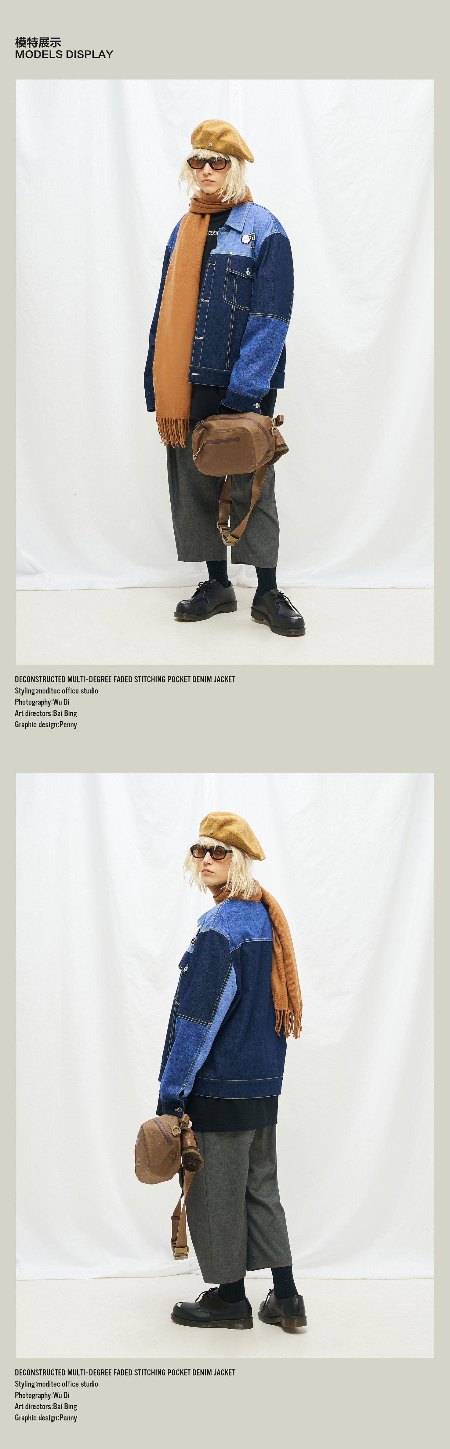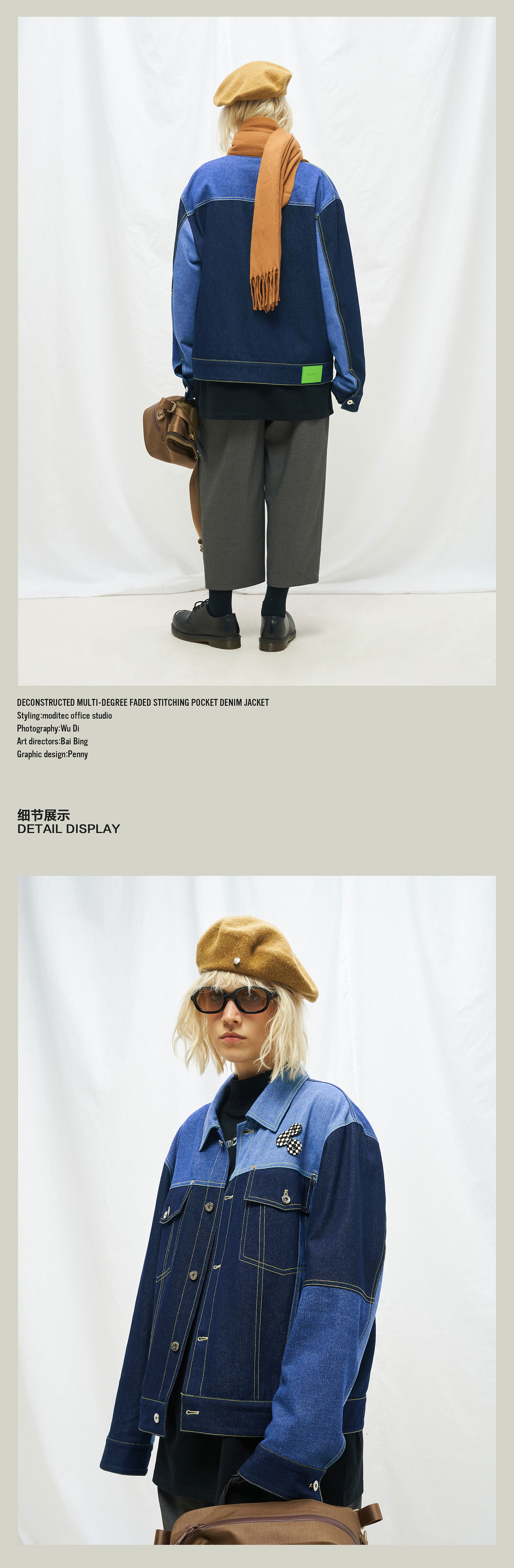 MODITEC20秋冬解构落色拼接牛仔夹克口袋牛仔外套梁老师TSong同款