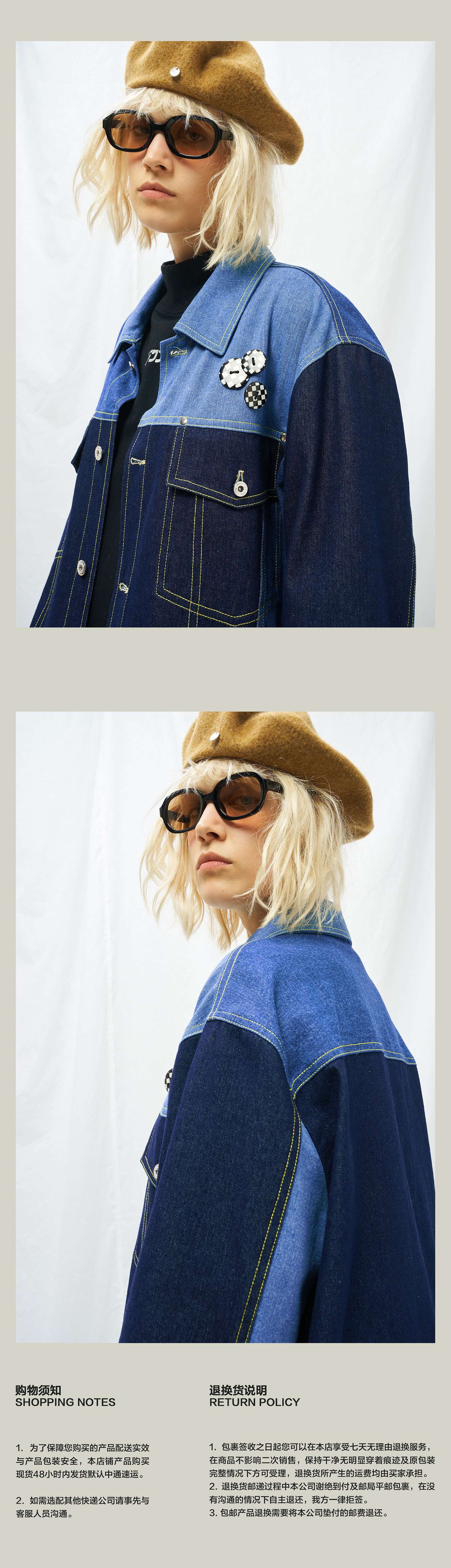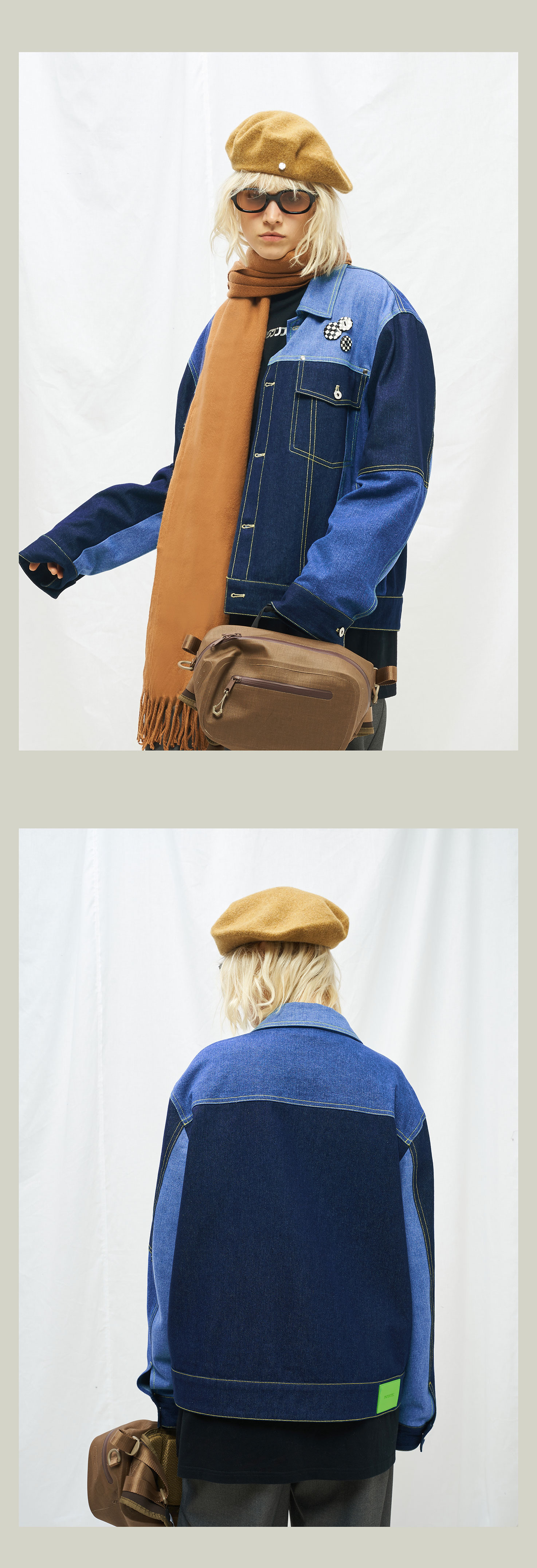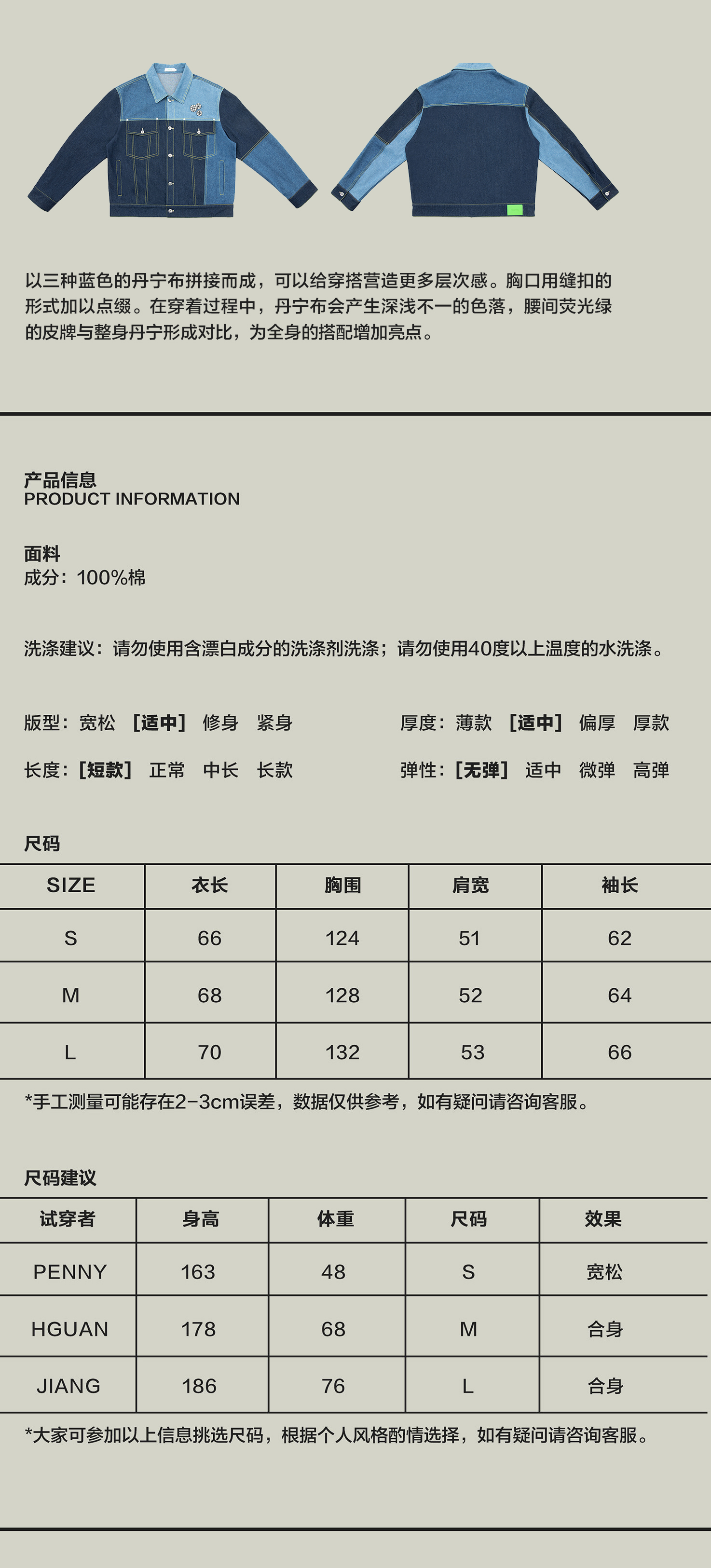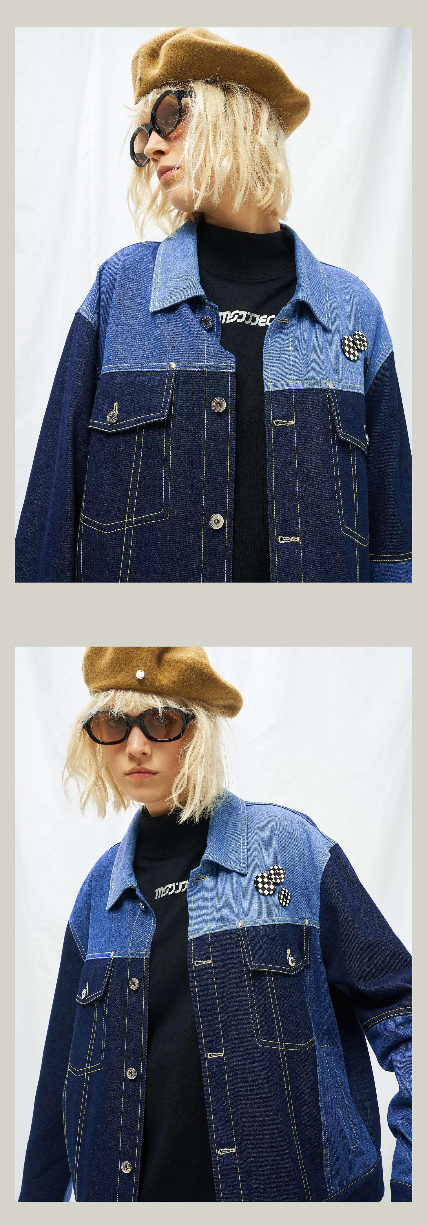 MODITEC20秋冬解构落色拼接牛仔夹克口袋牛仔外套梁老师TSong同款