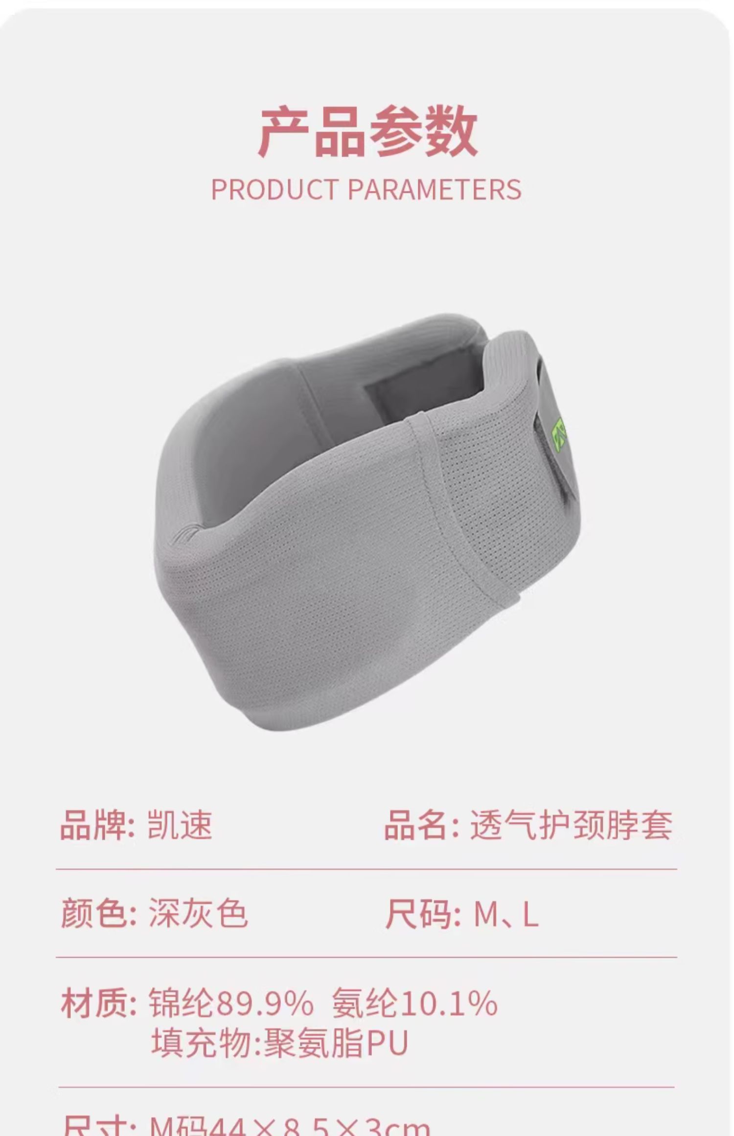 凯速颈托支撑舒缓脖子颈脖套JT002(灰色)【XPTX】