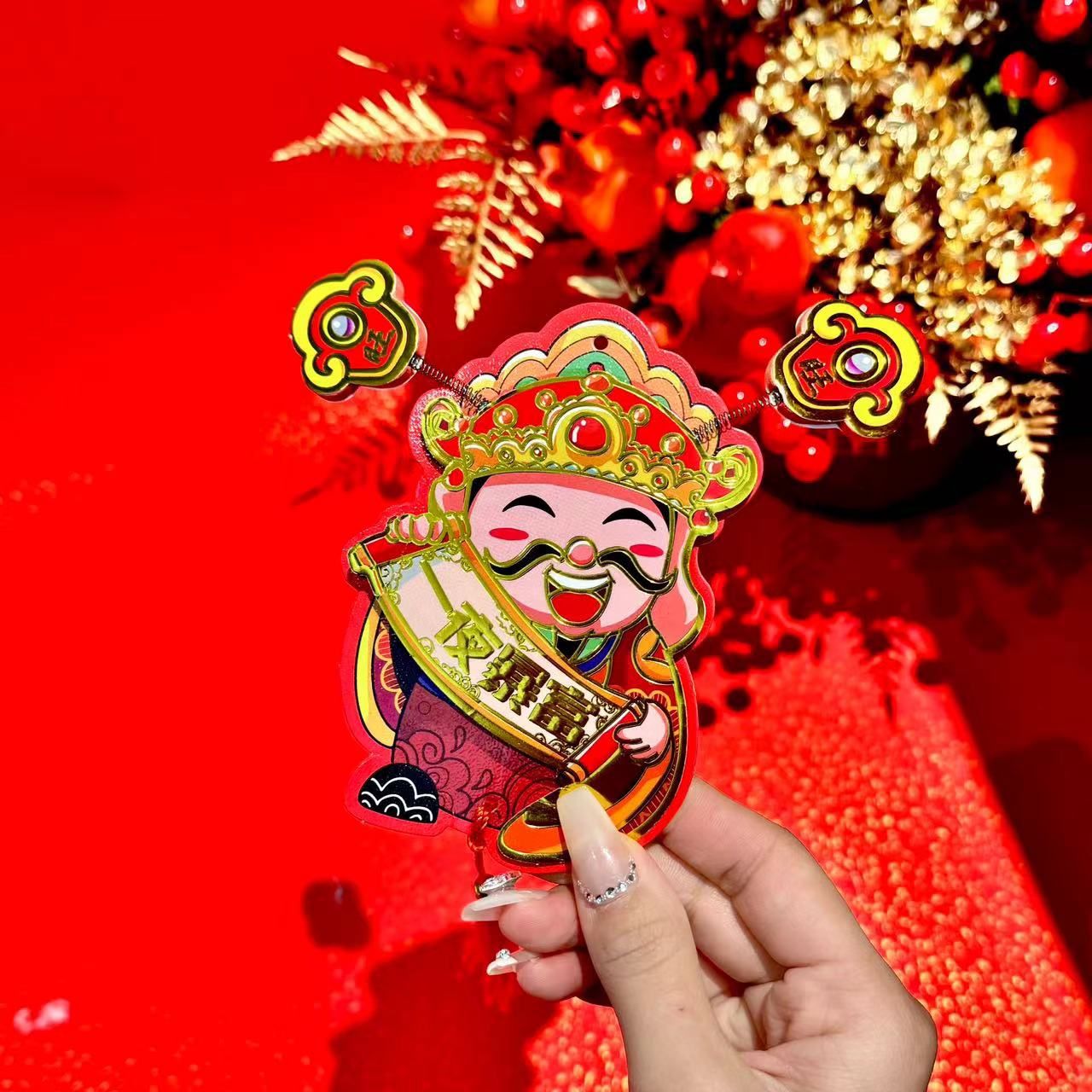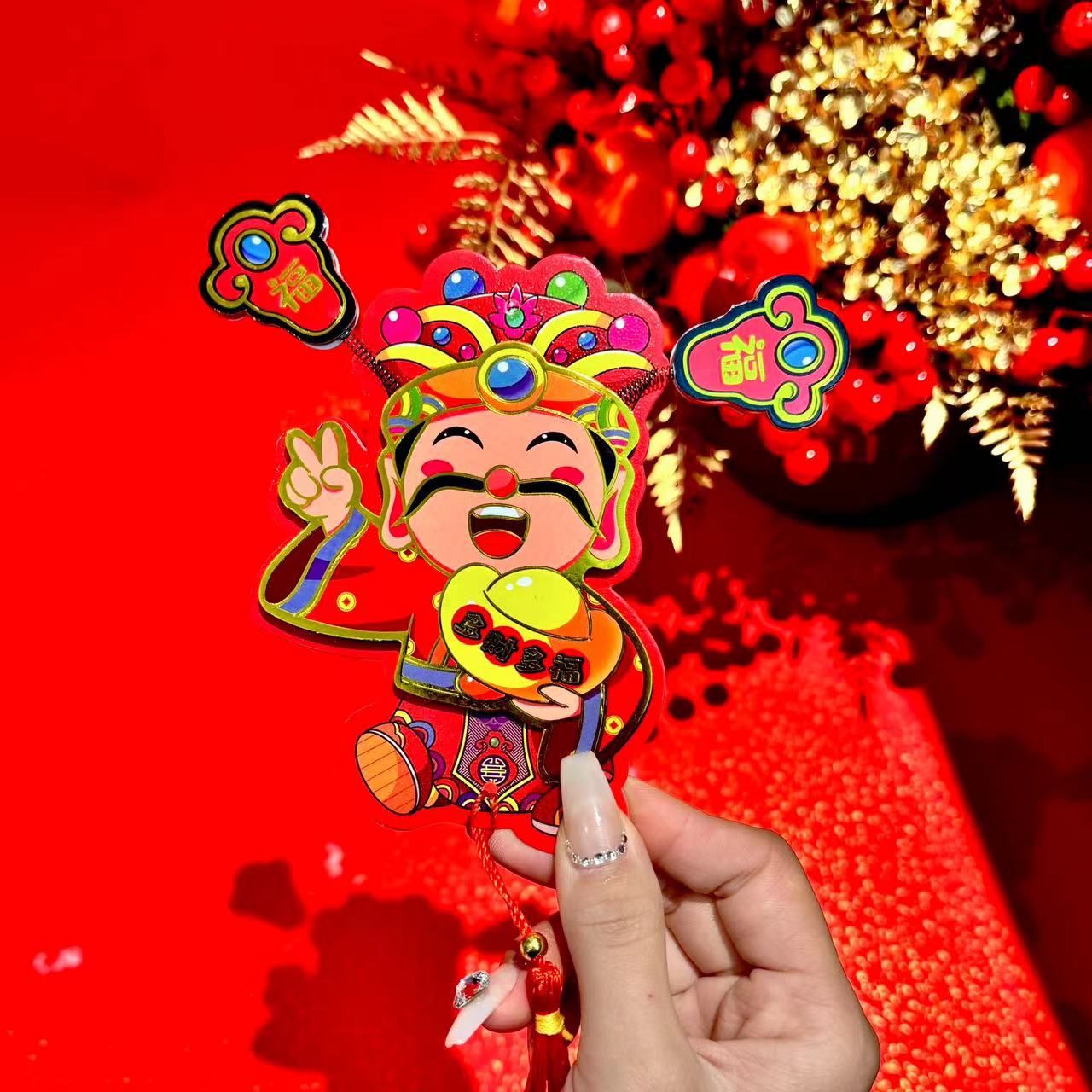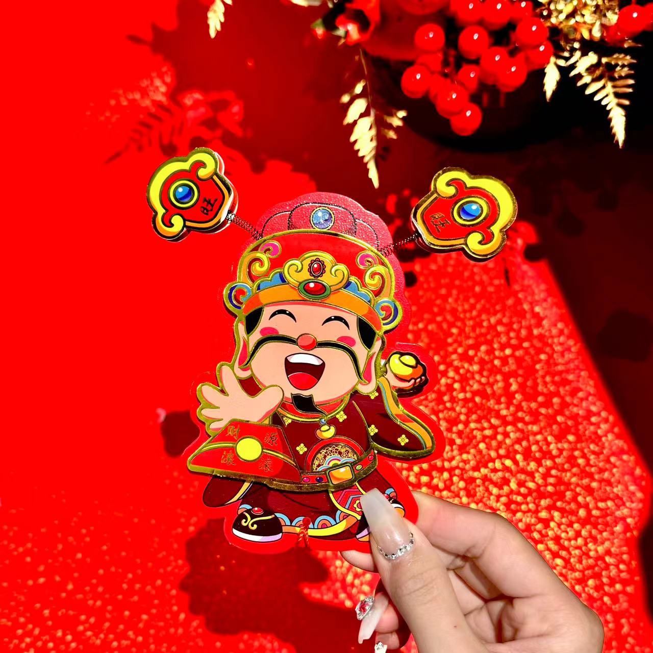 新年【趣味摇耳朵立体财神爷冰箱贴】可爱摇耳朵立体财神爷磁吸冰箱贴 新年喜庆烫金财神装饰挂件 好财运纸质趣味磁吸贴