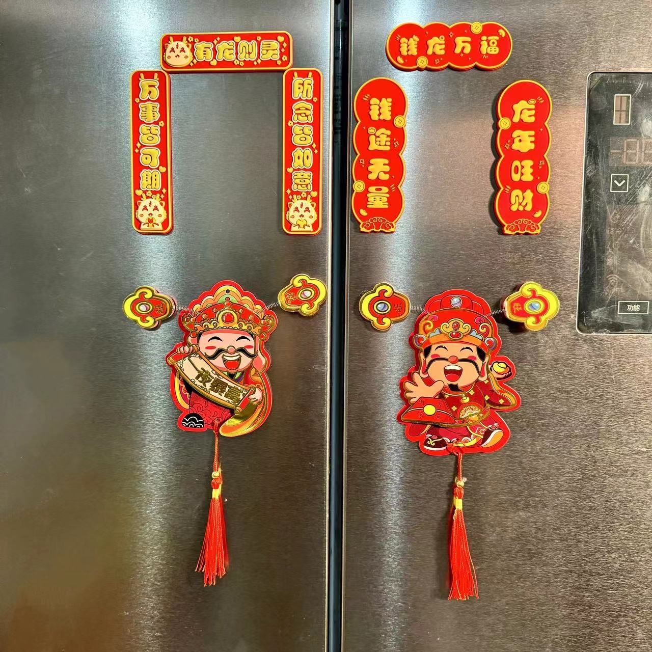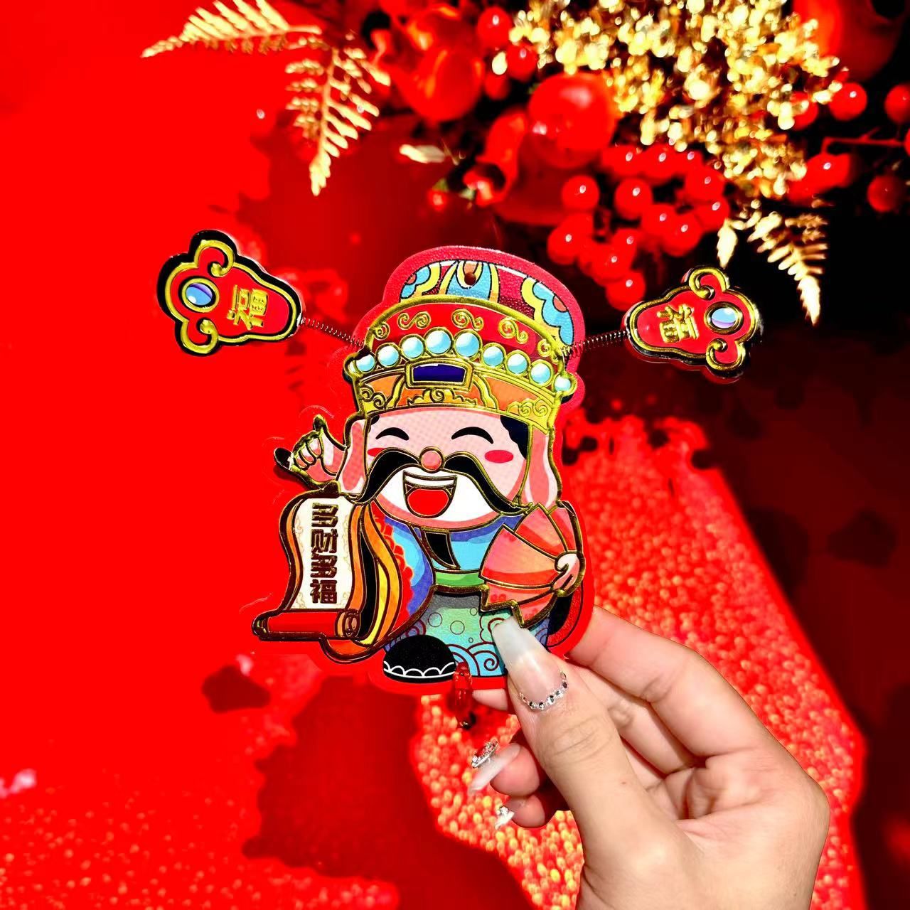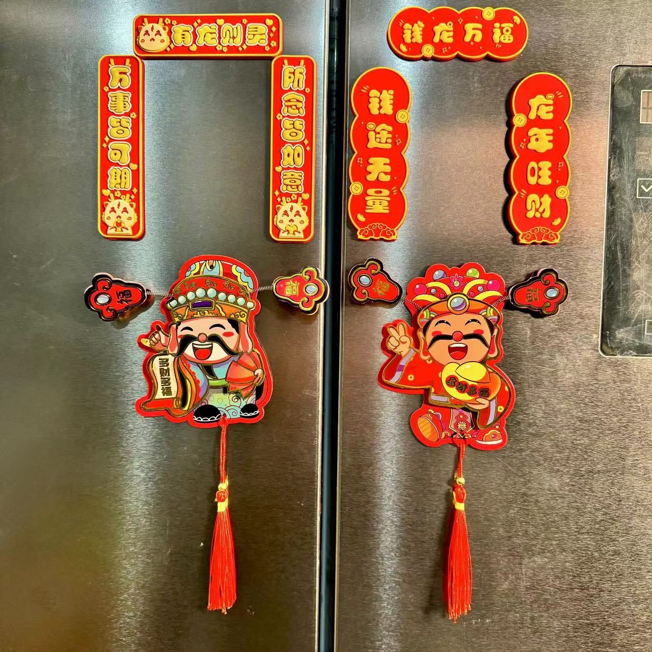 新年【趣味摇耳朵立体财神爷冰箱贴】可爱摇耳朵立体财神爷磁吸冰箱贴 新年喜庆烫金财神装饰挂件 好财运纸质趣味磁吸贴