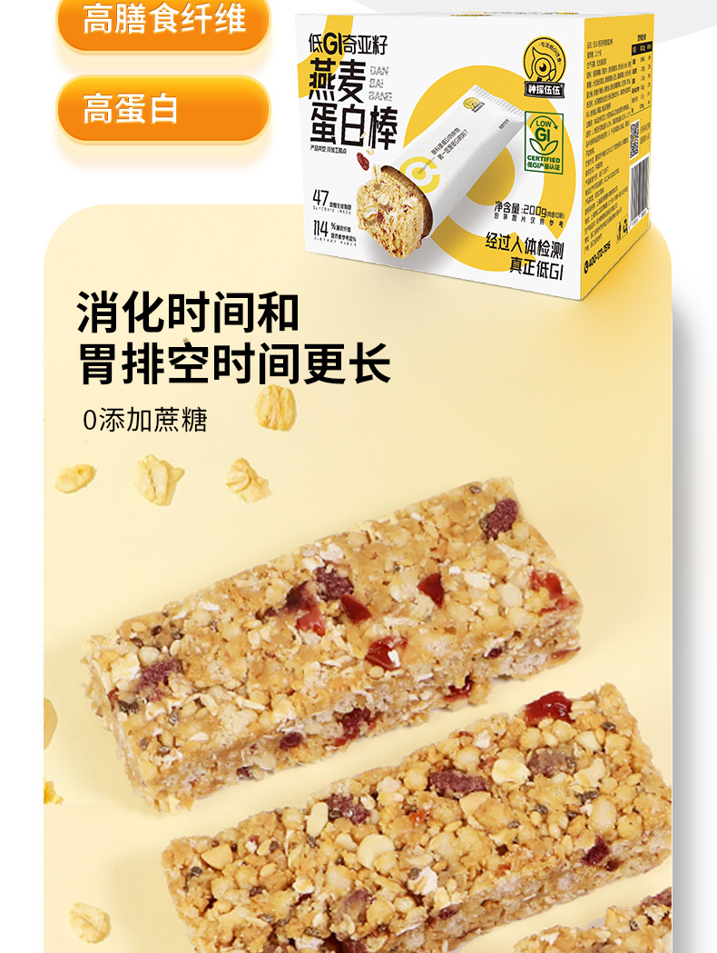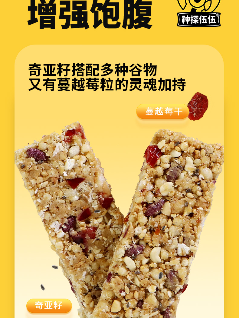 神探伍伍低升糖指数奇亚籽燕麦蛋白棒200g