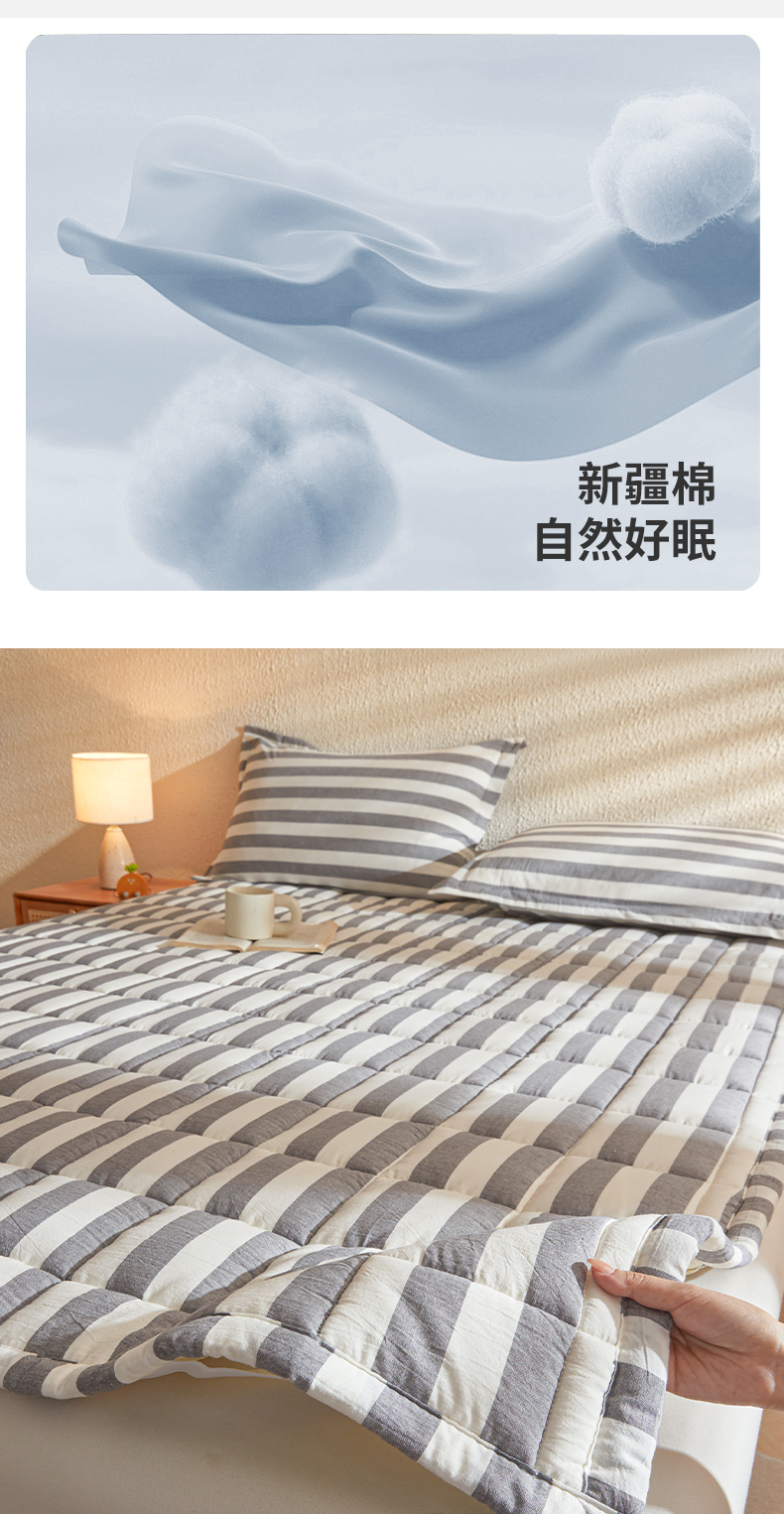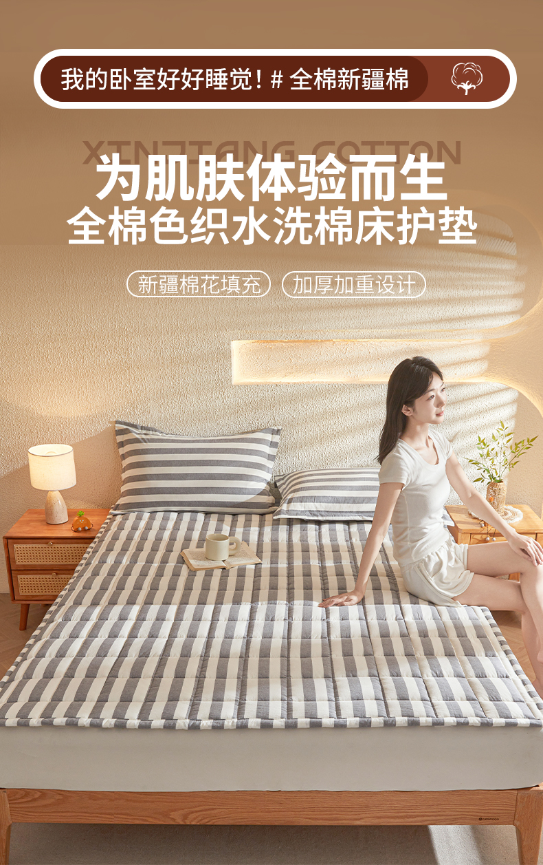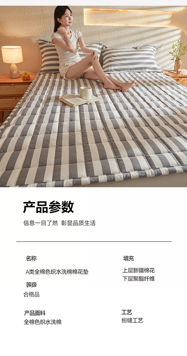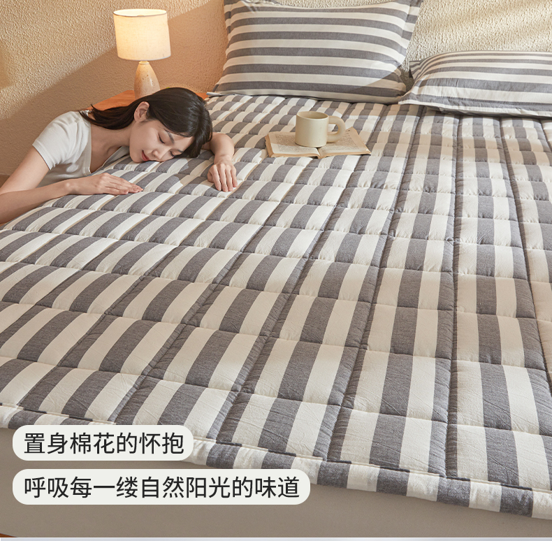 自然醒全棉色织水洗棉棉花床护垫家用卧室软垫纯棉床褥垫子垫褥宿舍学生单人垫被褥子LN