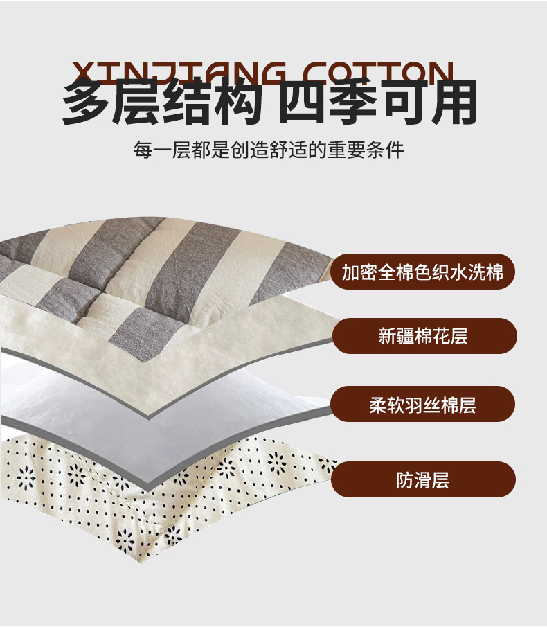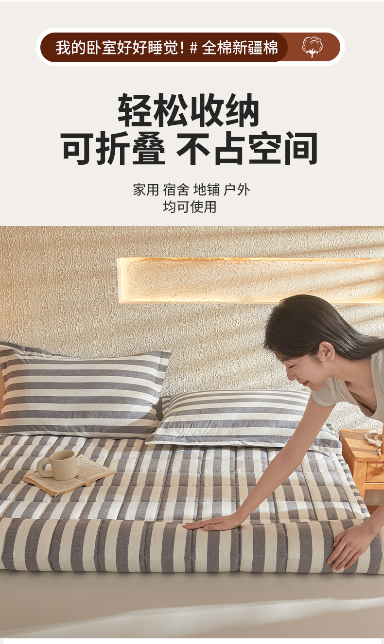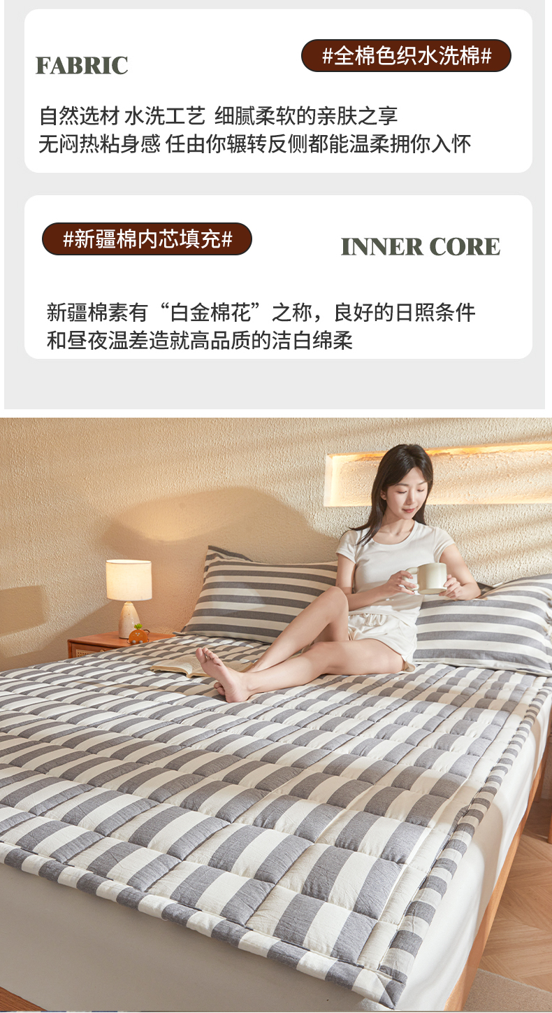 自然醒全棉色织水洗棉棉花床护垫家用卧室软垫纯棉床褥垫子垫褥宿舍学生单人垫被褥子LN