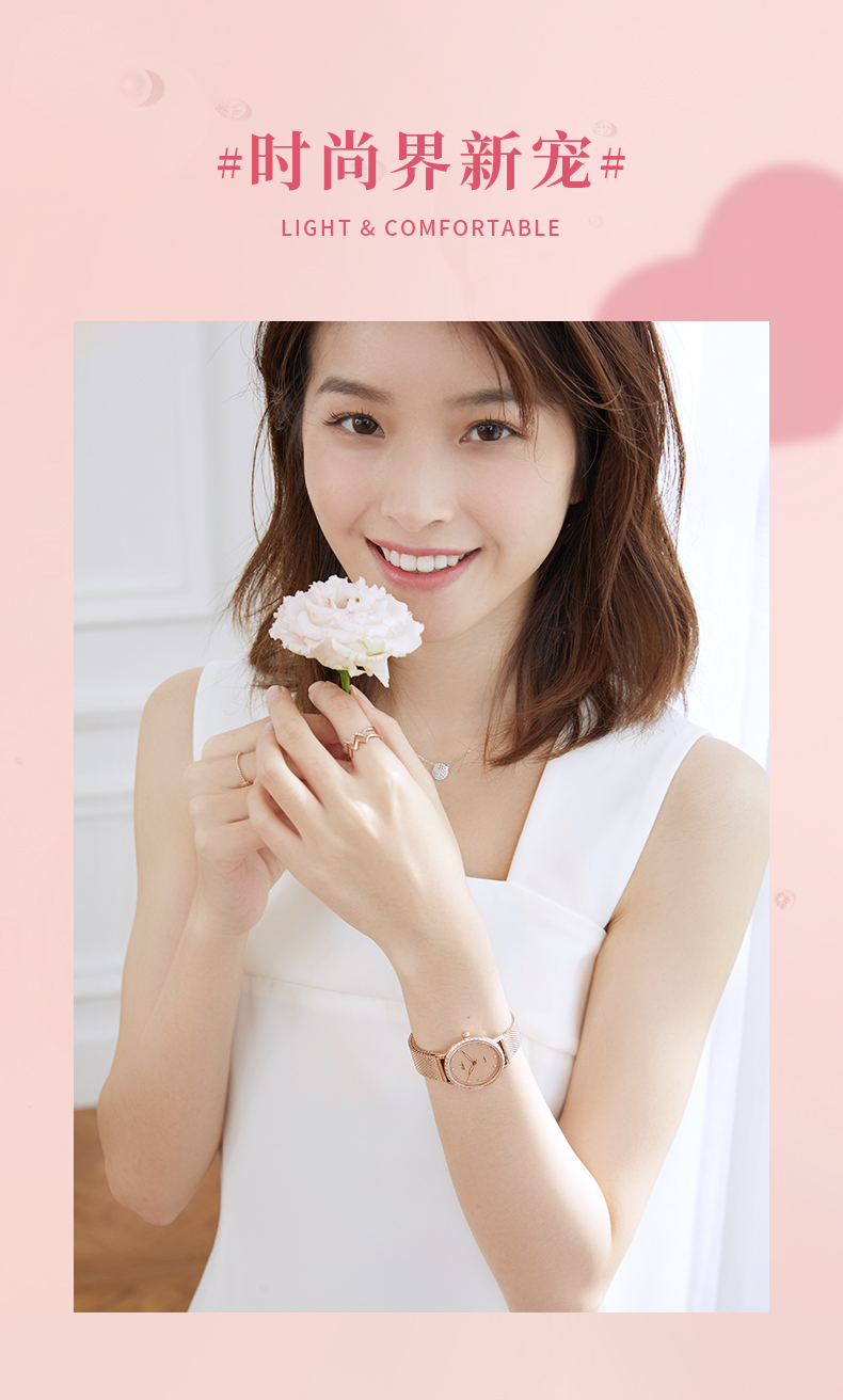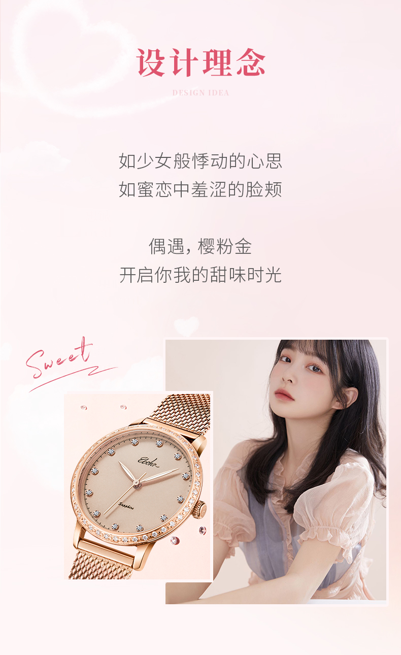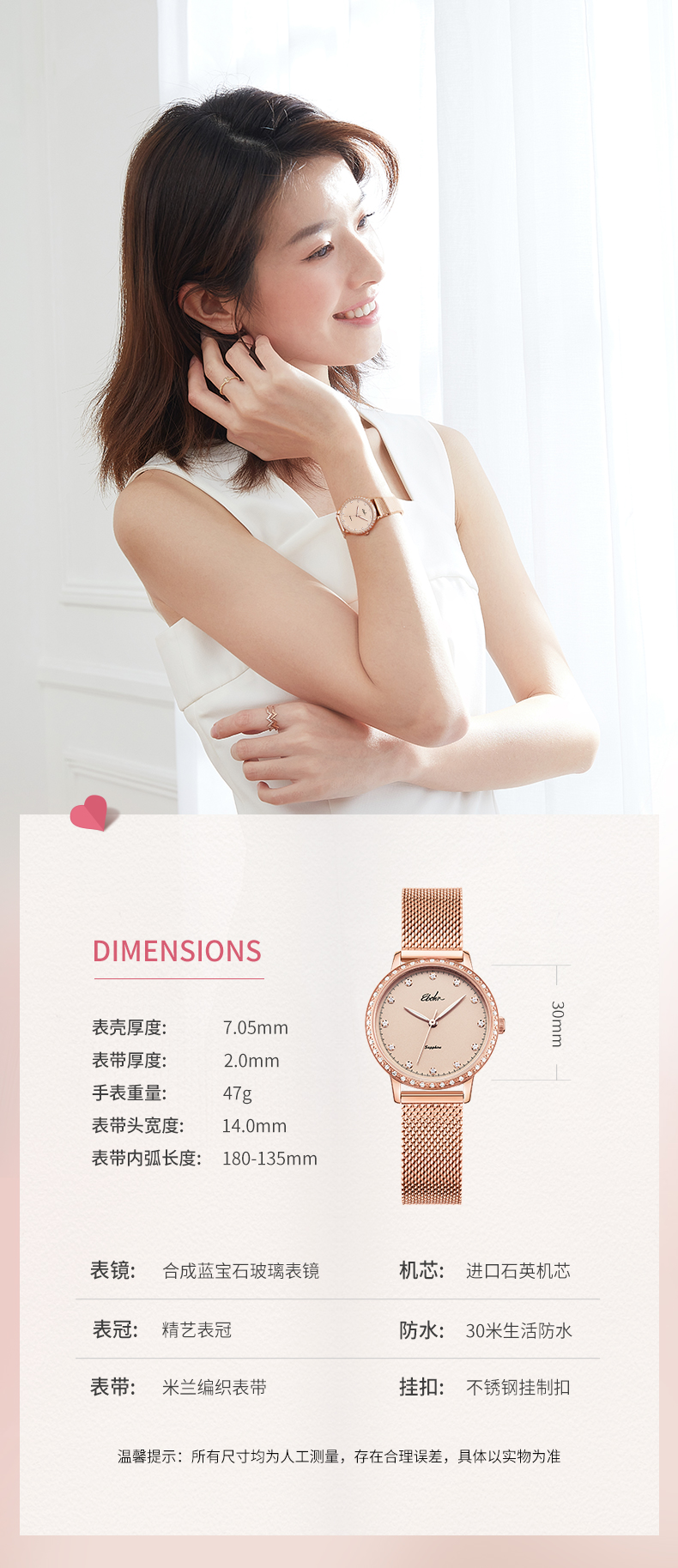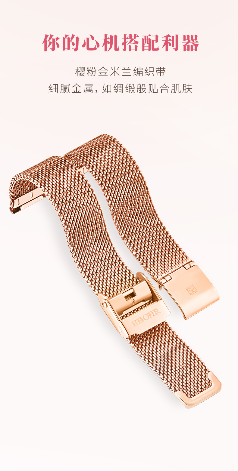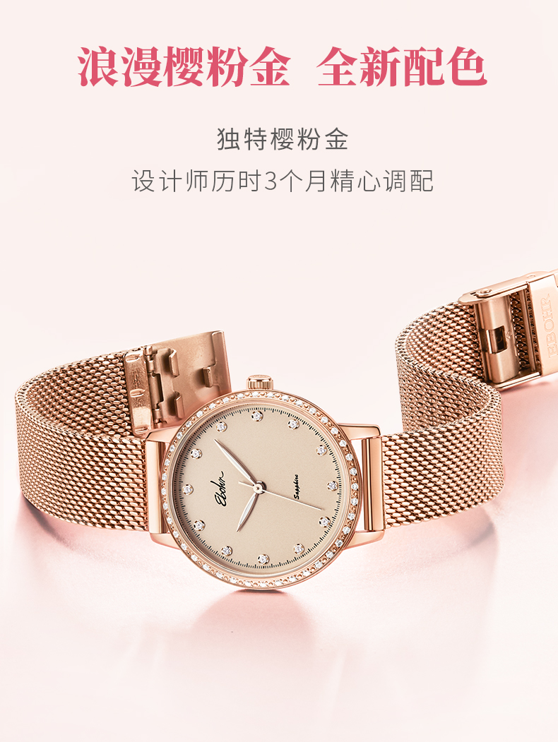 依波(EBOHR)时尚简约女士腕表樱粉金女士石英手表5138