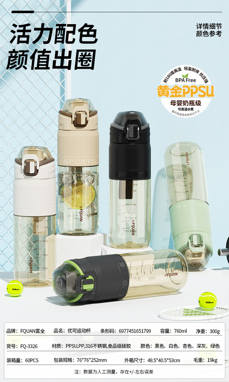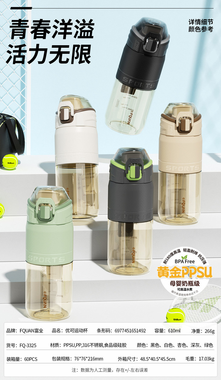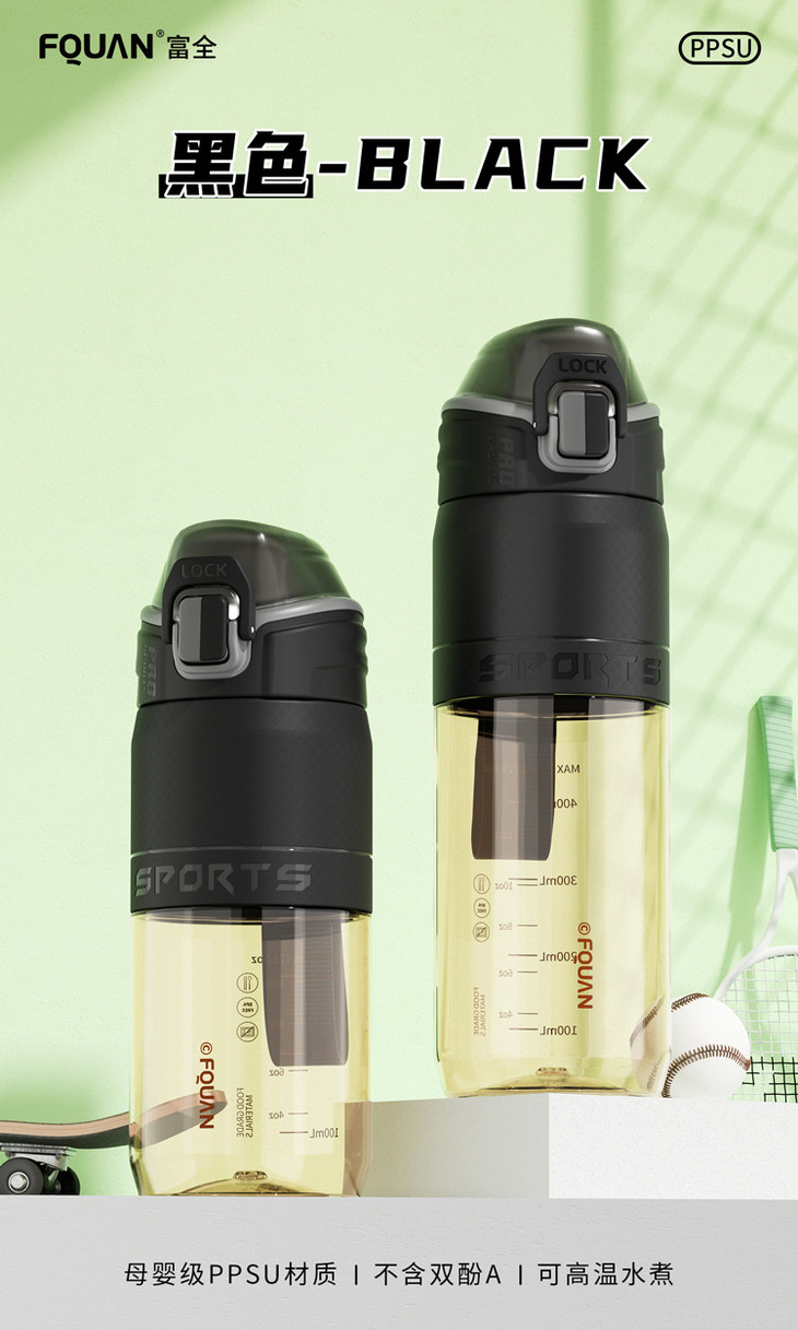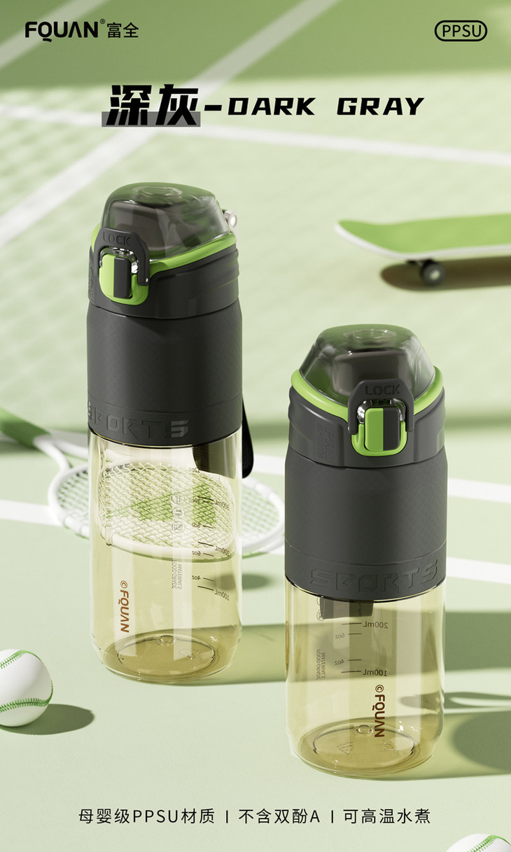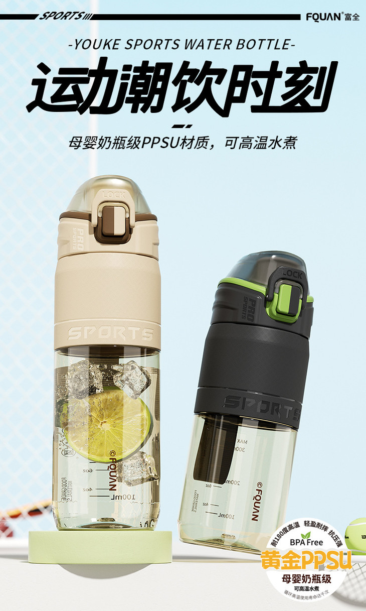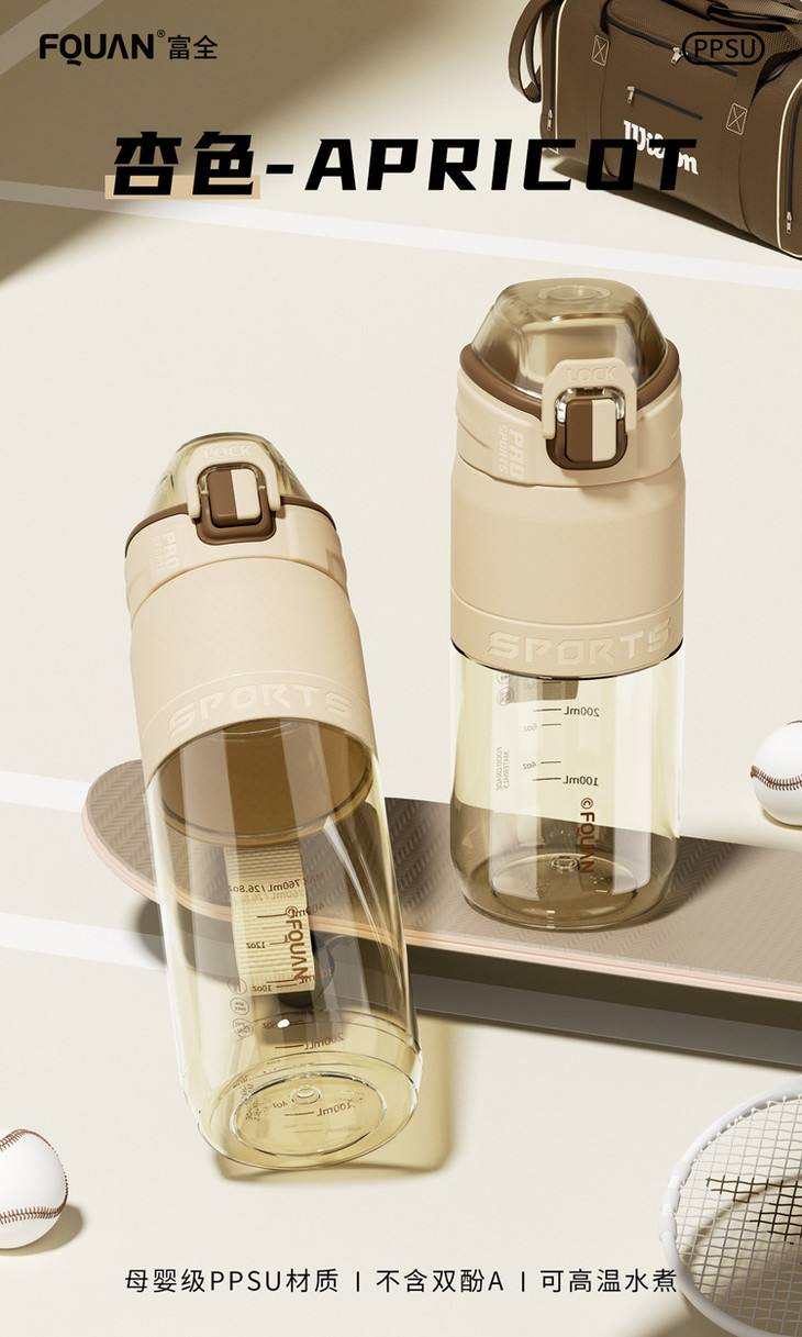 母婴级PPSU耐高温塑料杯提绳大容量优可运动水杯简约户外直饮杯子