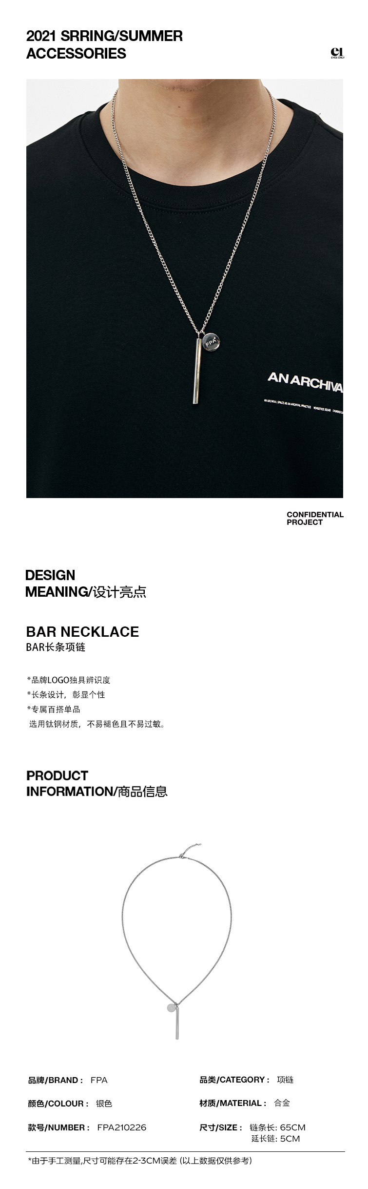 FPA(VENGETICE) Bar长条项链 嘻哈国潮饰品情侣