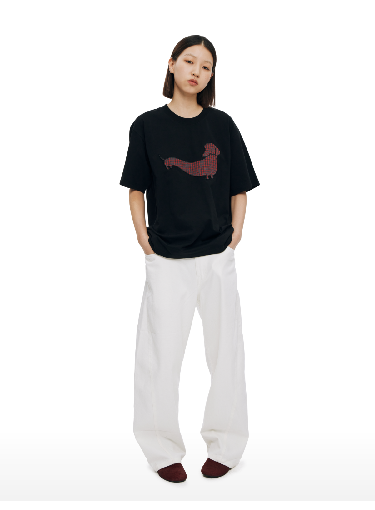 WassupHouse腊肠犬贴布绣短袖T恤