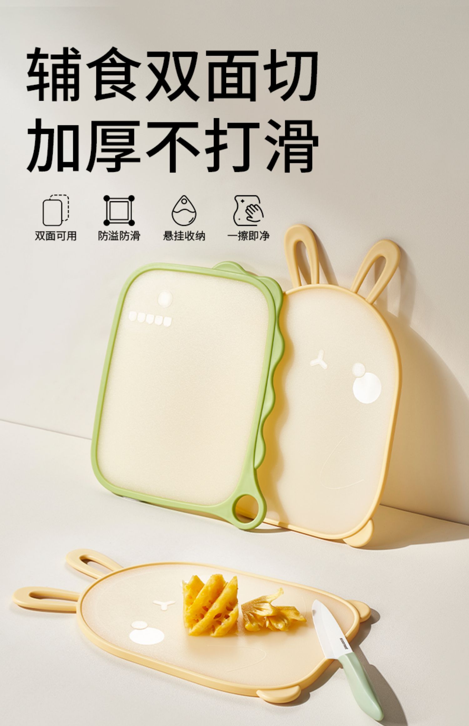 科巢婴儿宝宝辅食案板厨房专用防霉家用切水果刀砧板小菜板分类 格拉斯恐龙A1+斯图尔萌兔B1