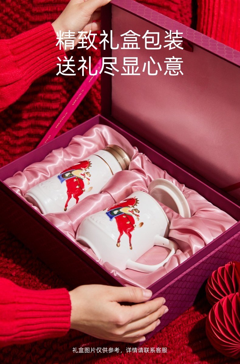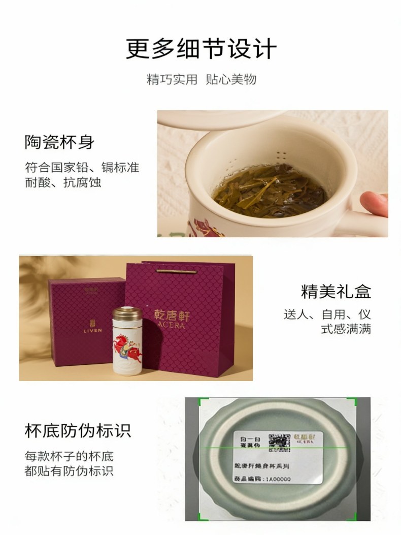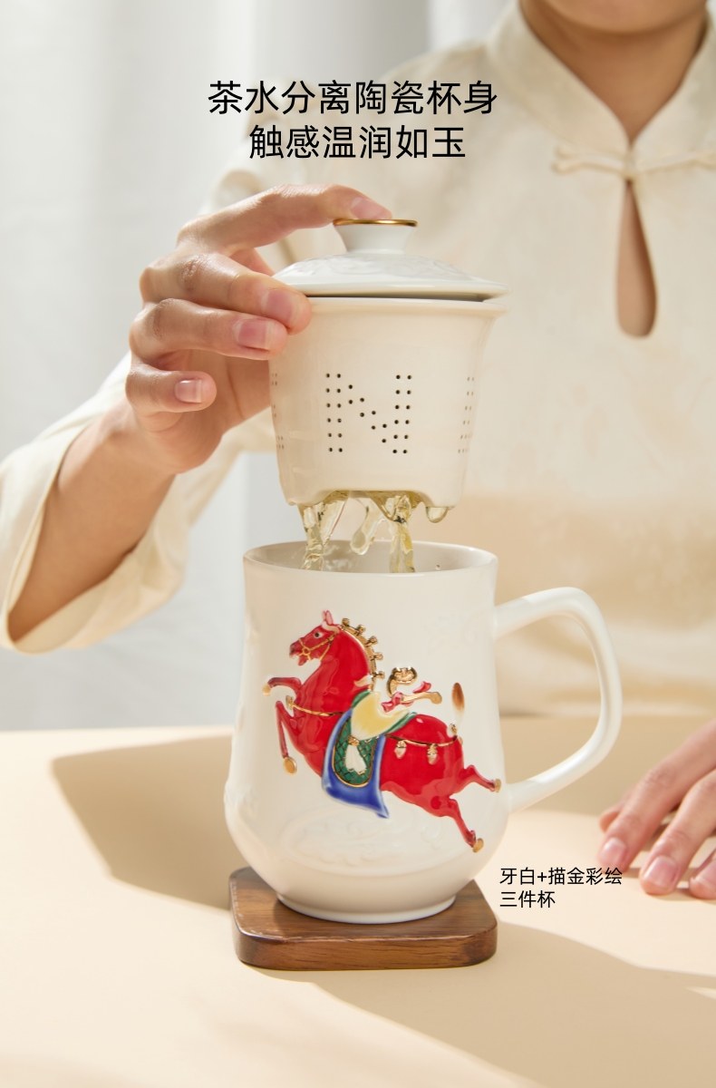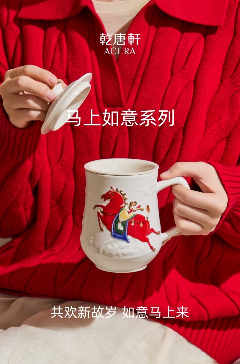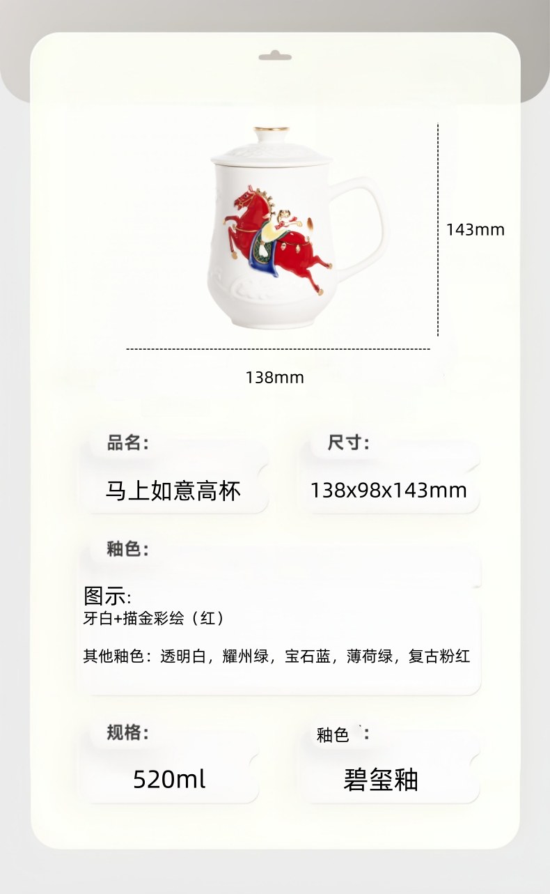 乾唐轩马上如意双层随身杯330ml(透明白+手工描金)