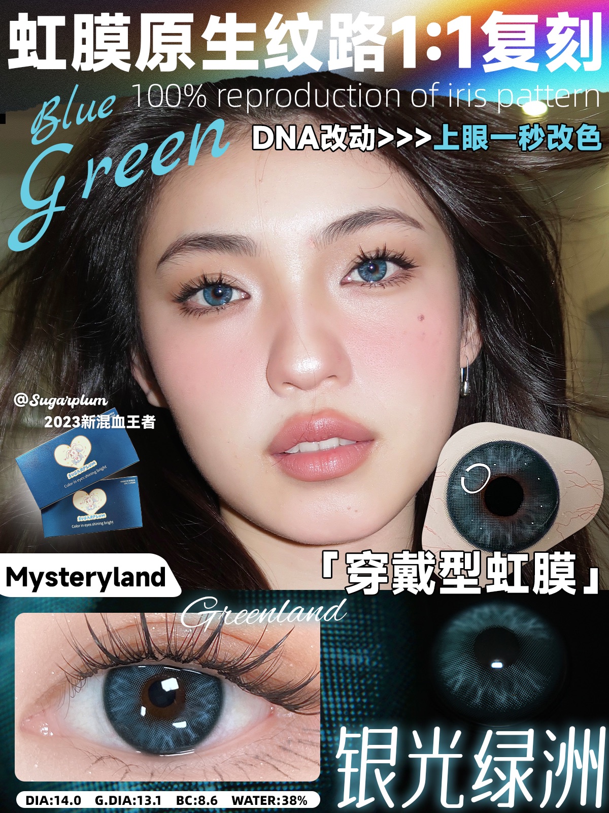 SUGARPLUM 银光绿洲 年抛 2片 14.0mm 参考着色13.1mm 基弧8.6 含水38% 韩国进口
