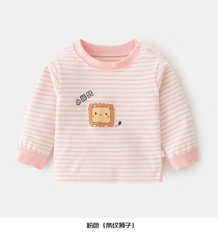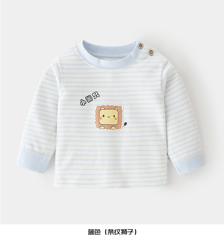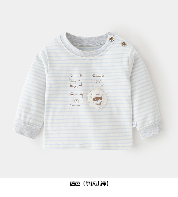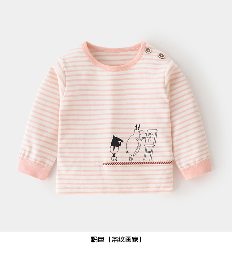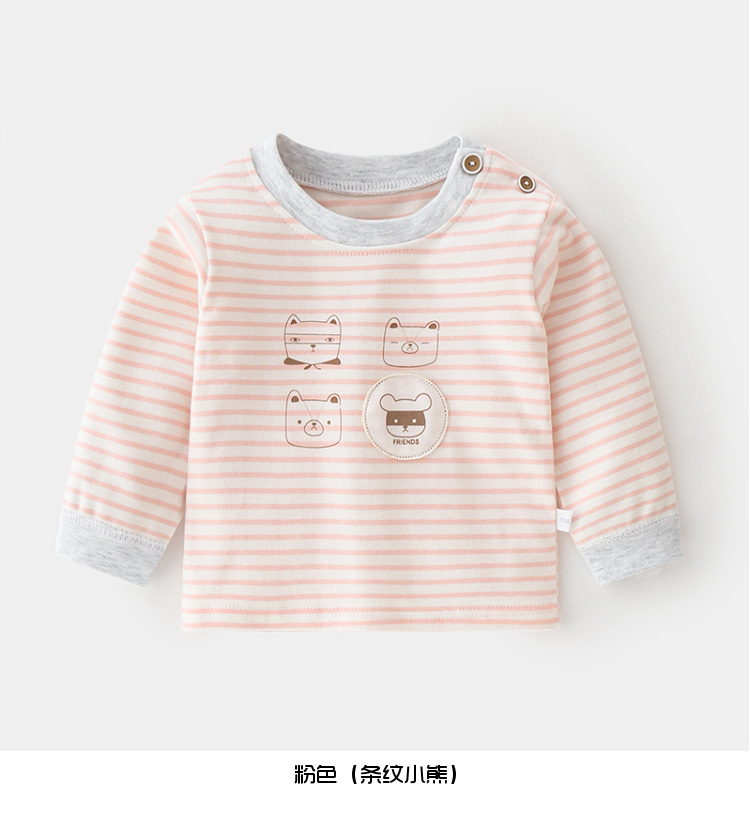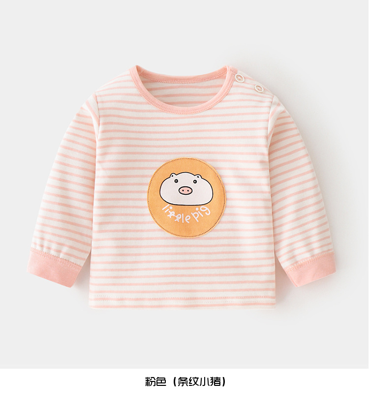 婴儿纯棉单上秋衣服条纹男女童春秋宝宝内衣打底衫童装肩开T恤