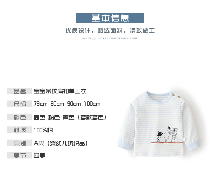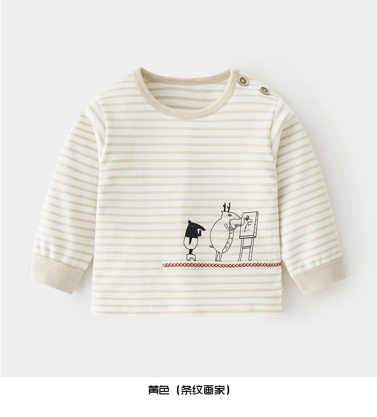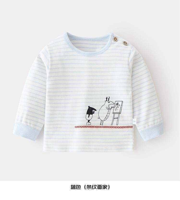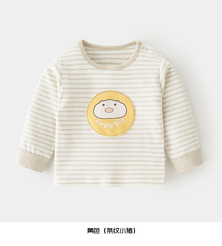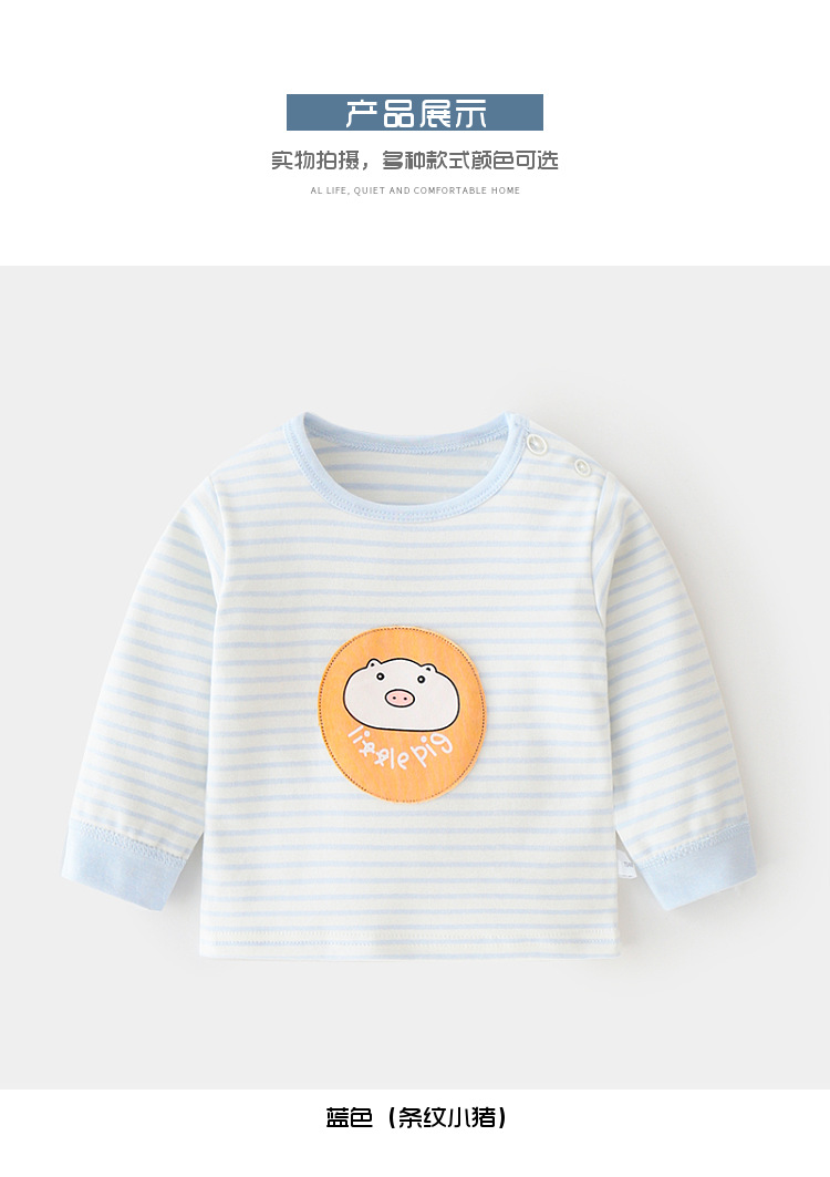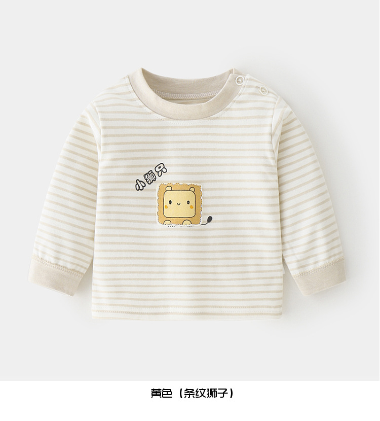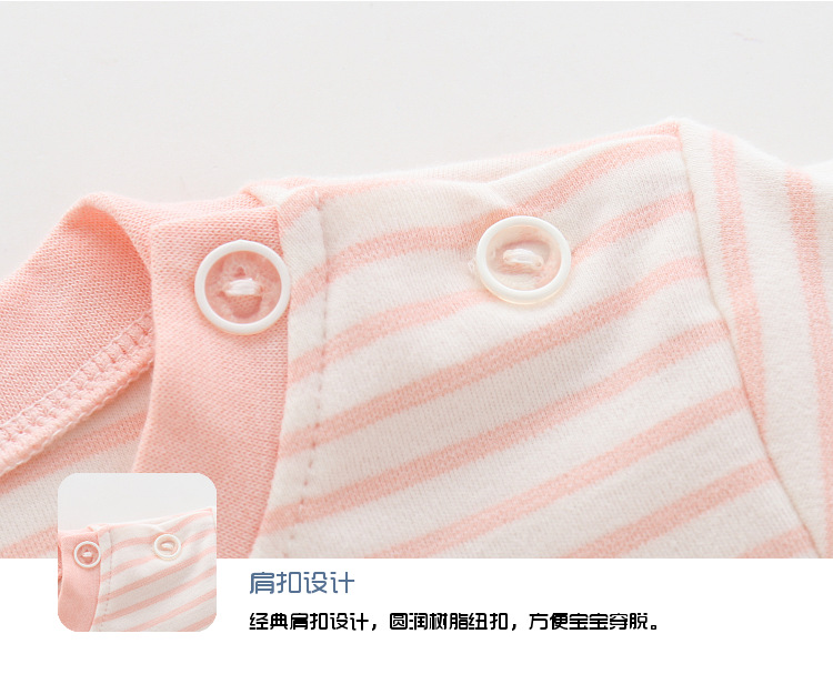 婴儿纯棉单上秋衣服条纹男女童春秋宝宝内衣打底衫童装肩开T恤