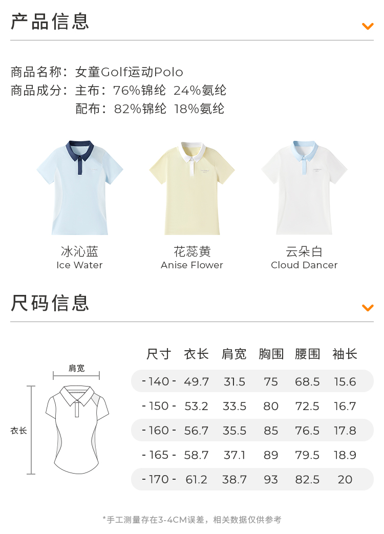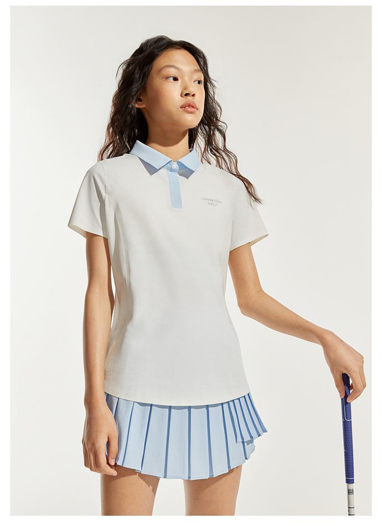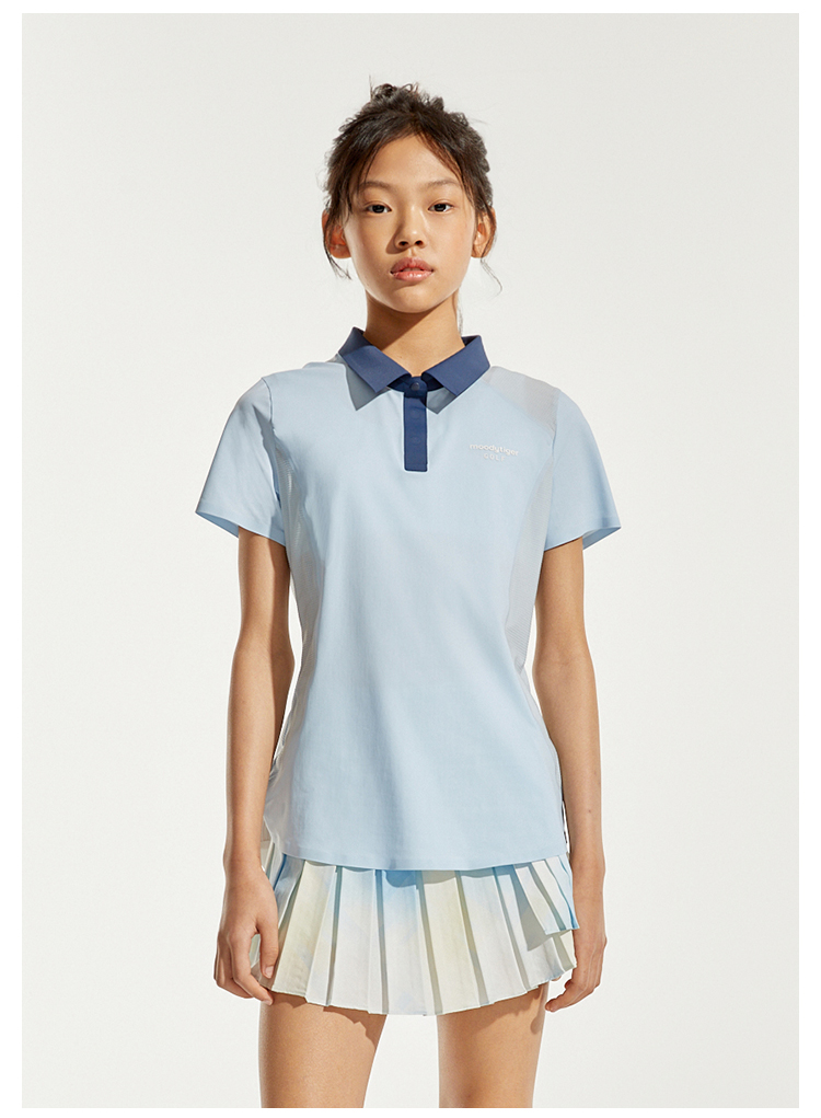 【24年夏新品】【高尔夫系列】moodytiger女童运动polo衫24年春新款拼接透气上衣 41214105