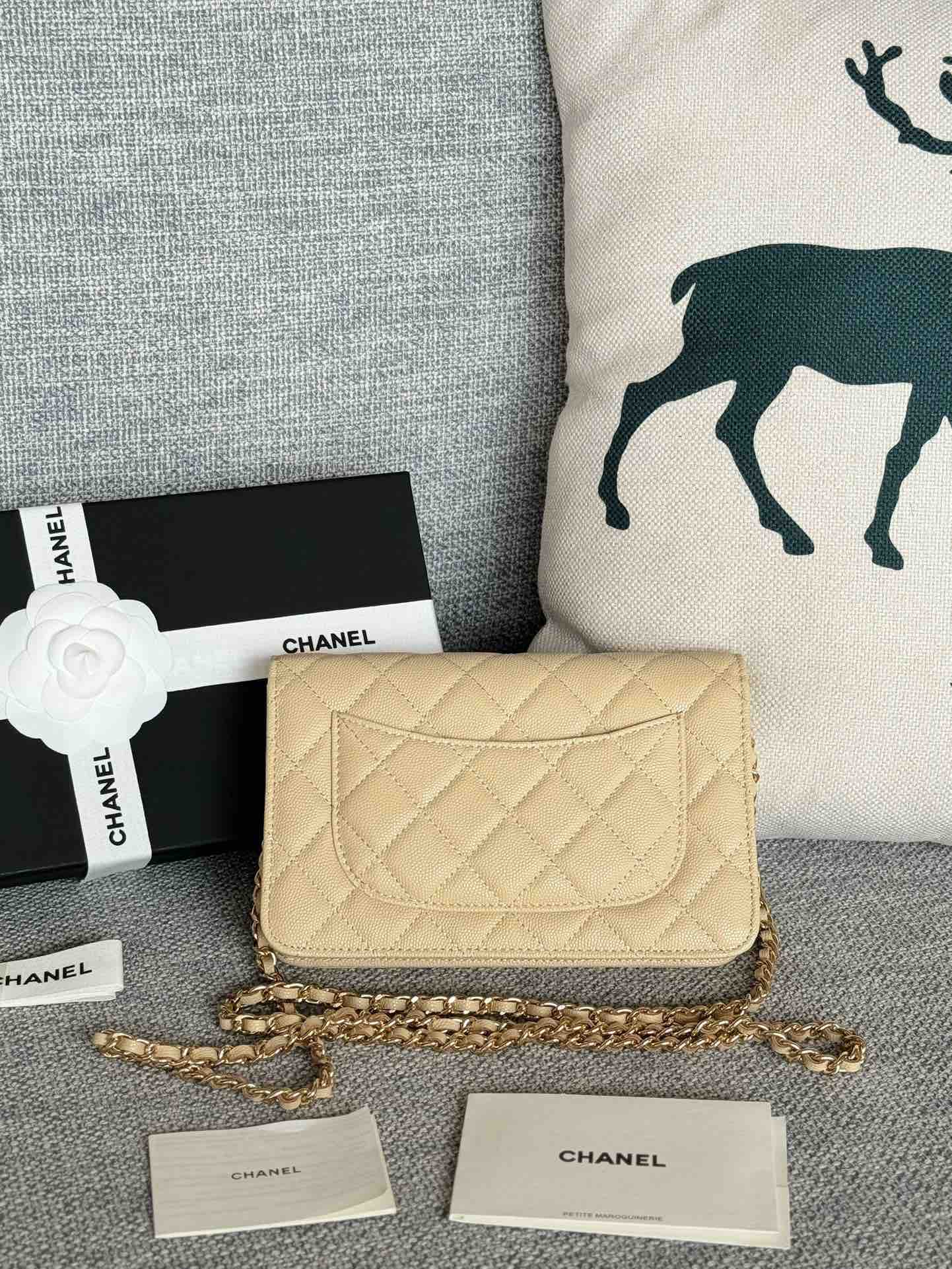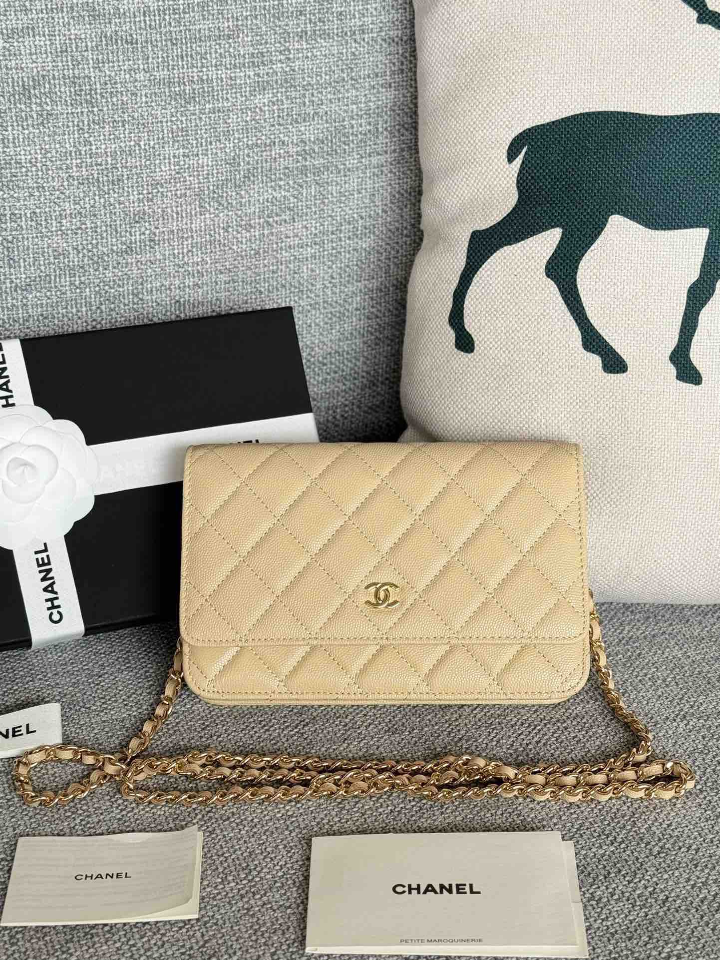 香奈儿woc链条包🉐️牛皮-杏色金扣(⚠️细球纹)
