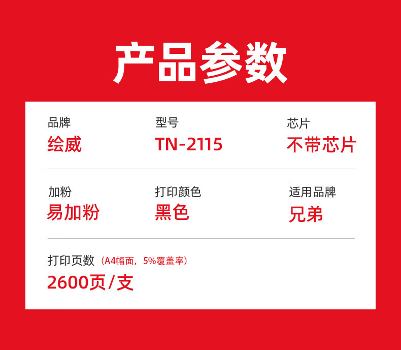 绘威商专 易加粉粉盒TN-2115 适用兄弟 MFC-7340 黑色 1支