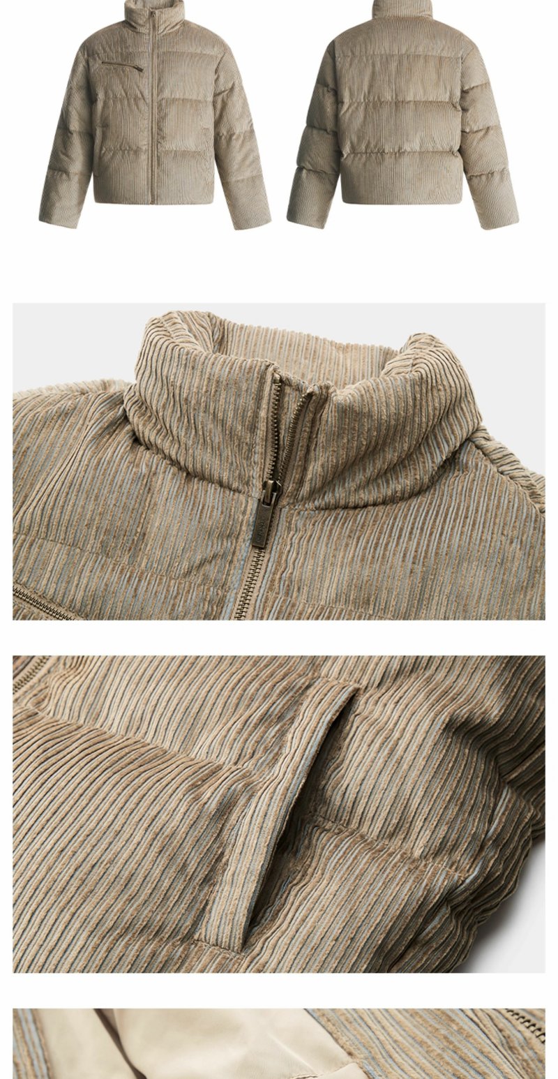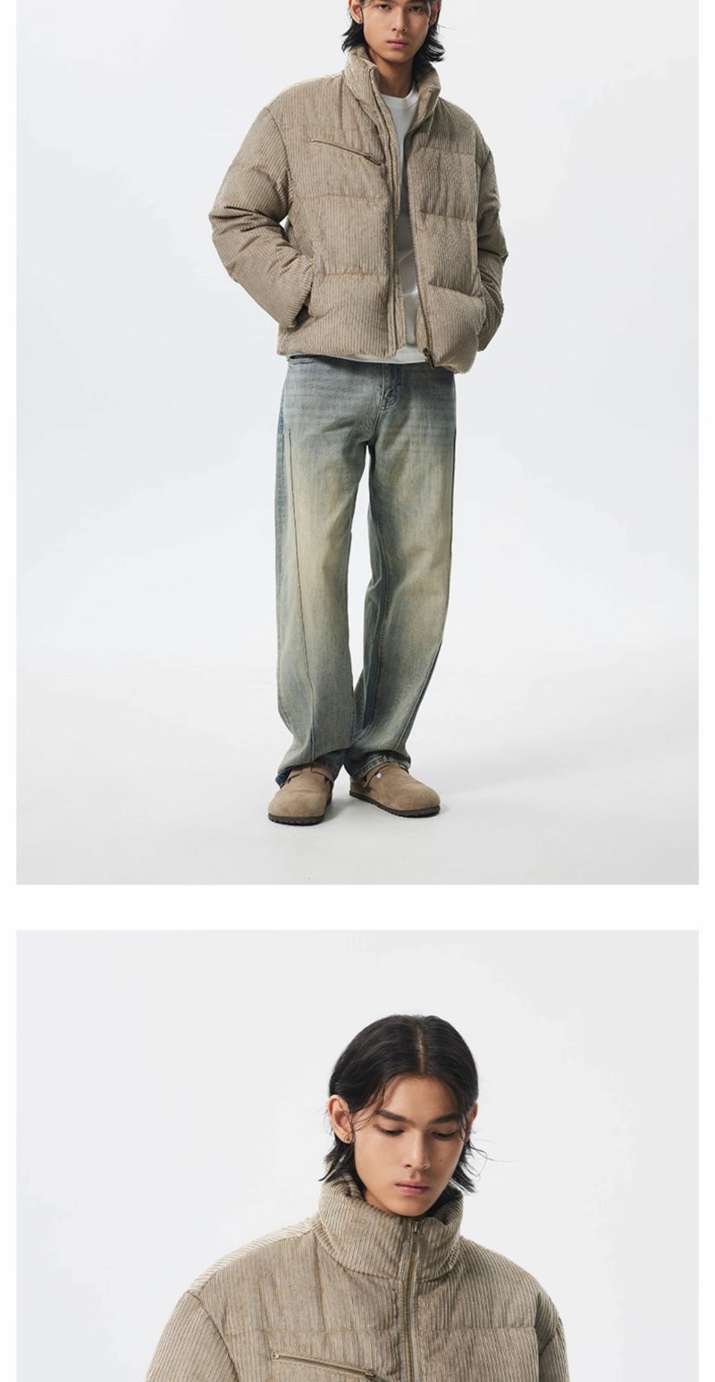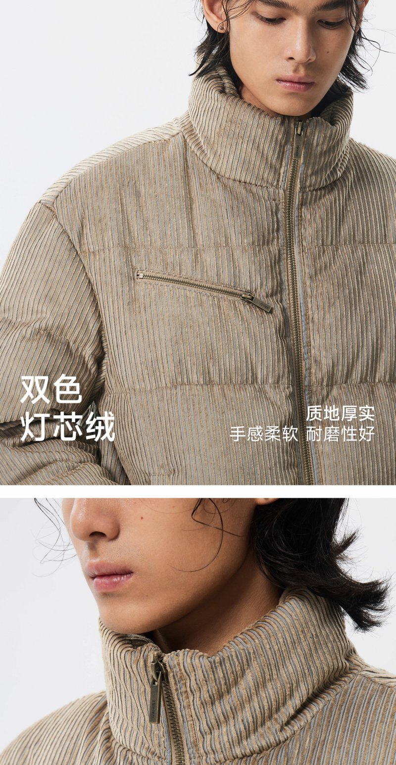 CHINISM赤尘 双色灯芯绒短款羽绒服男冬季新款面包服加厚外套