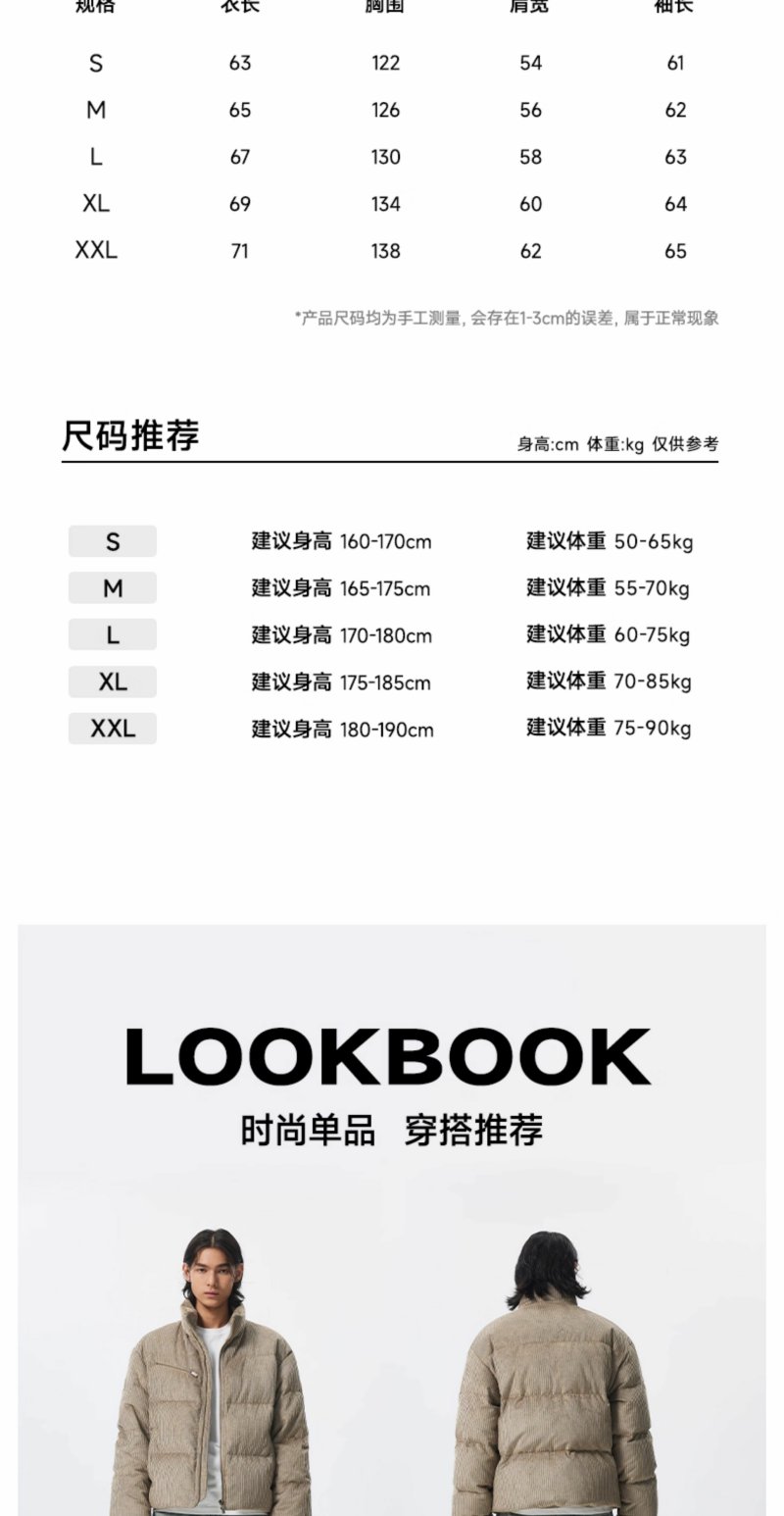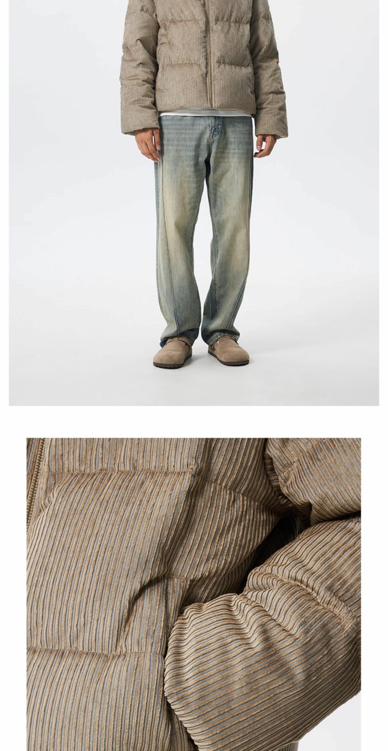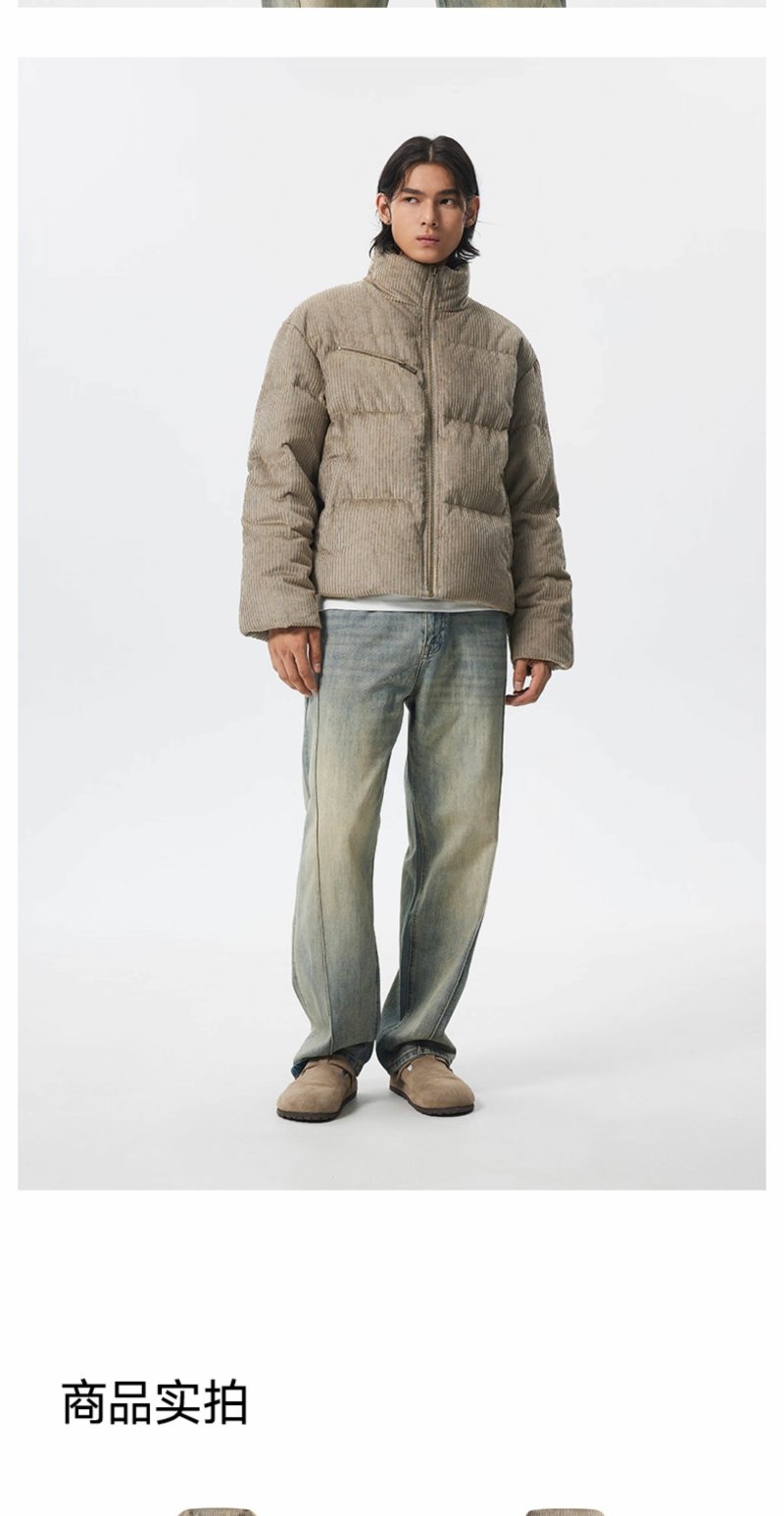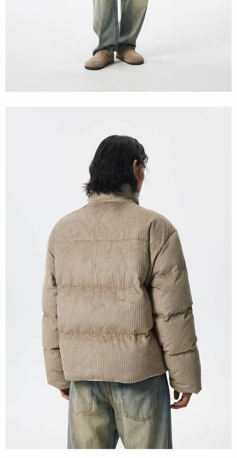 CHINISM赤尘 双色灯芯绒短款羽绒服男冬季新款面包服加厚外套