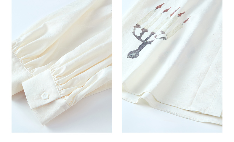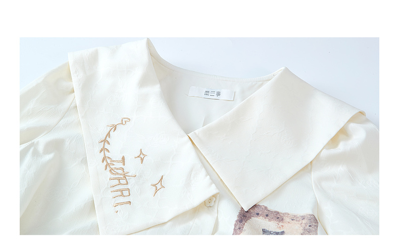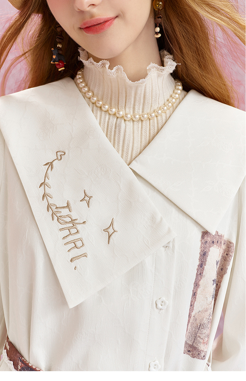 两三事 月缎流萤 2025夏季新款淑女风印花荷叶边刺绣翻领衬衫女