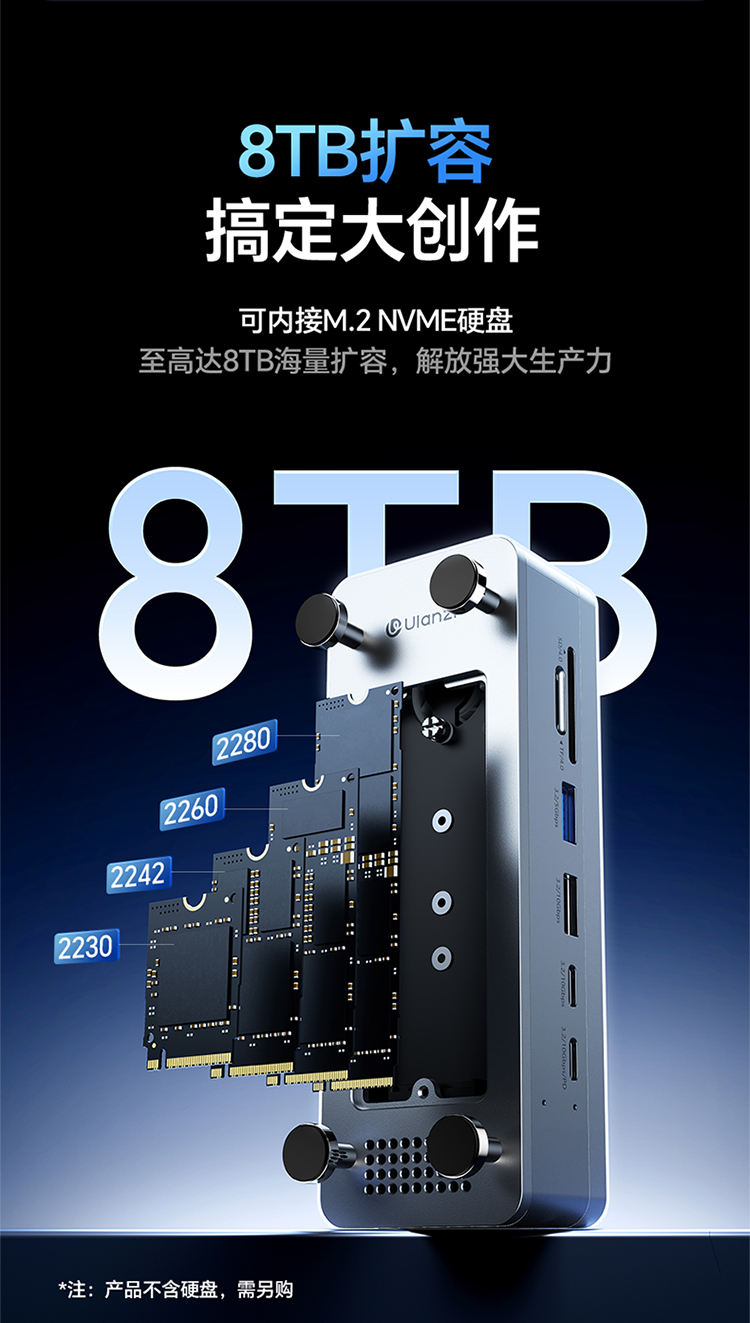 Ulanzi优篮子 QT03Mac Mini硬盘盒拓展坞扩容扩内存十合一拓展坞