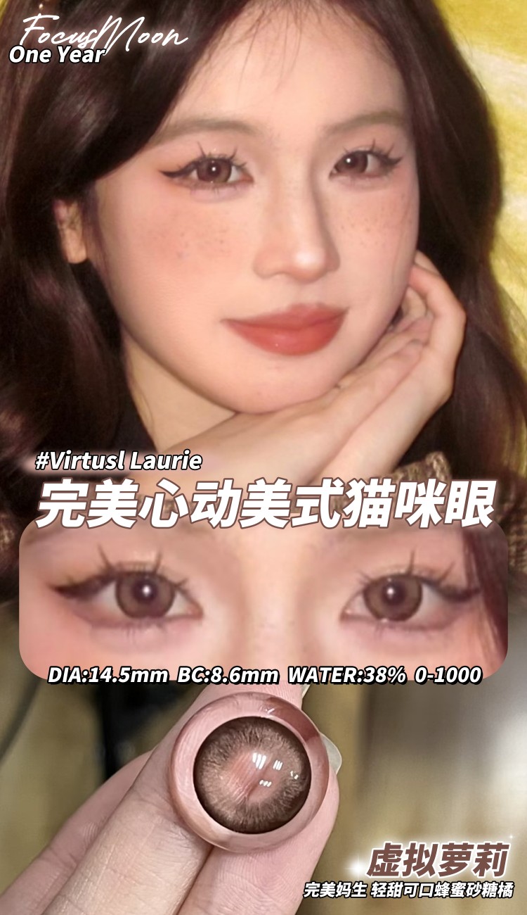 Focus Moon 虚拟萝莉 年抛 两片 14.5mm 参考着色 13.9mm 基弧 8.6 含水 38% 韩国进口