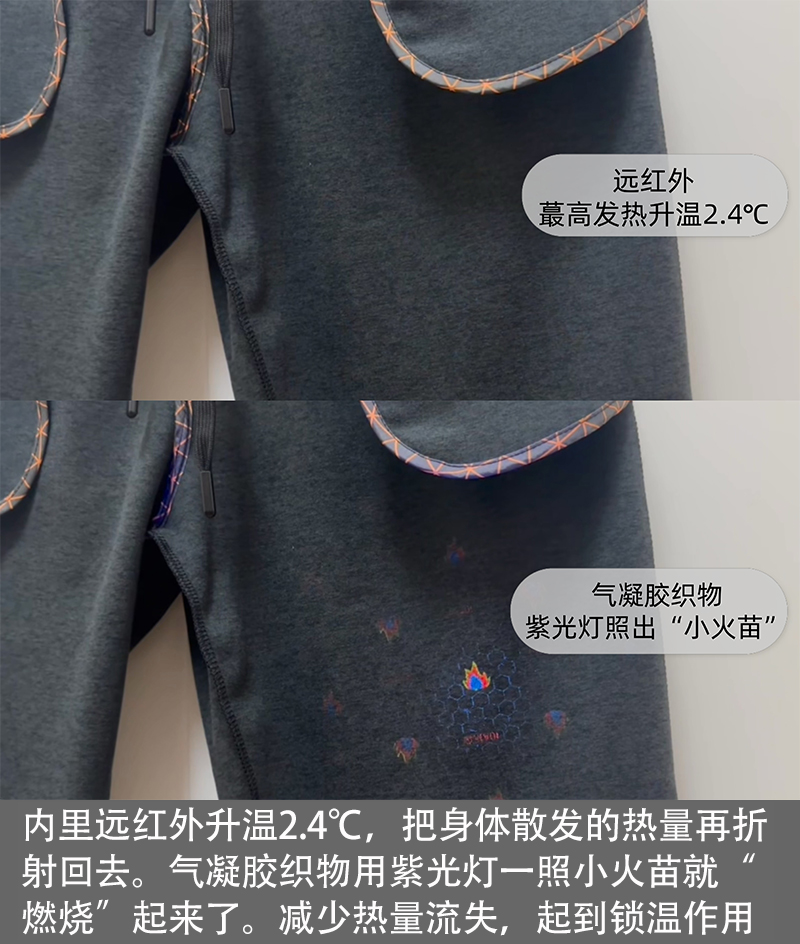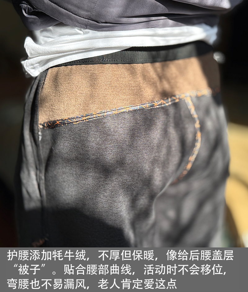 里层护腰成分:牦牛绒1%+腈纶4.2%+氨纶6.7%+94.3%聚酯纤维