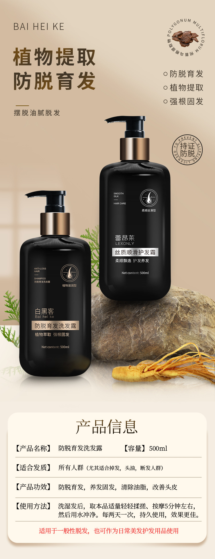 老生姜防脱育发洗发水国妆特证侧柏叶固发养发洗发露修护护发素