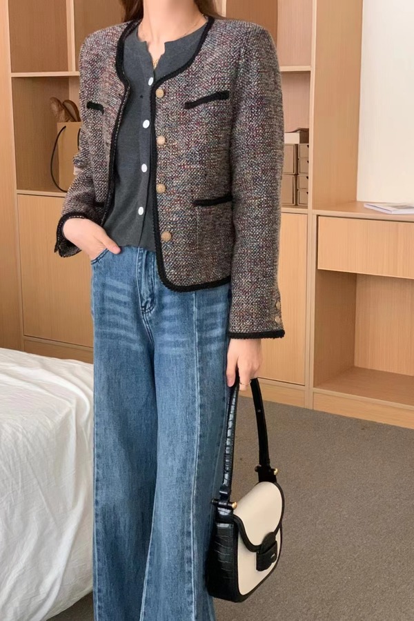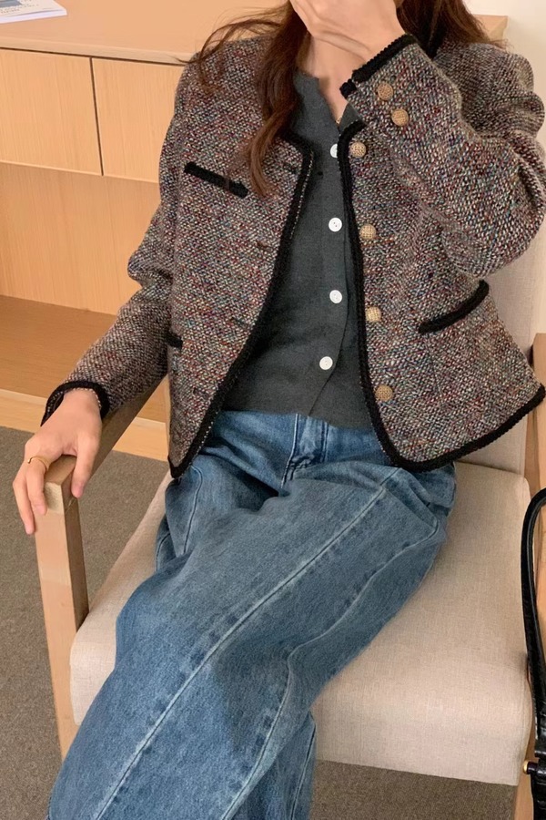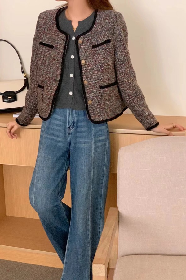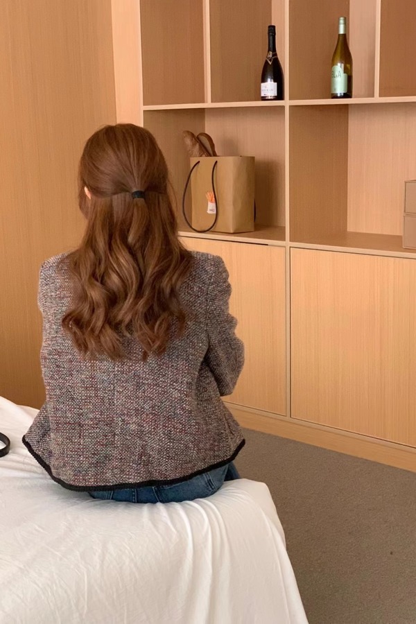 Le Malene 圆领粗花呢编织肌理感短款外套 19498