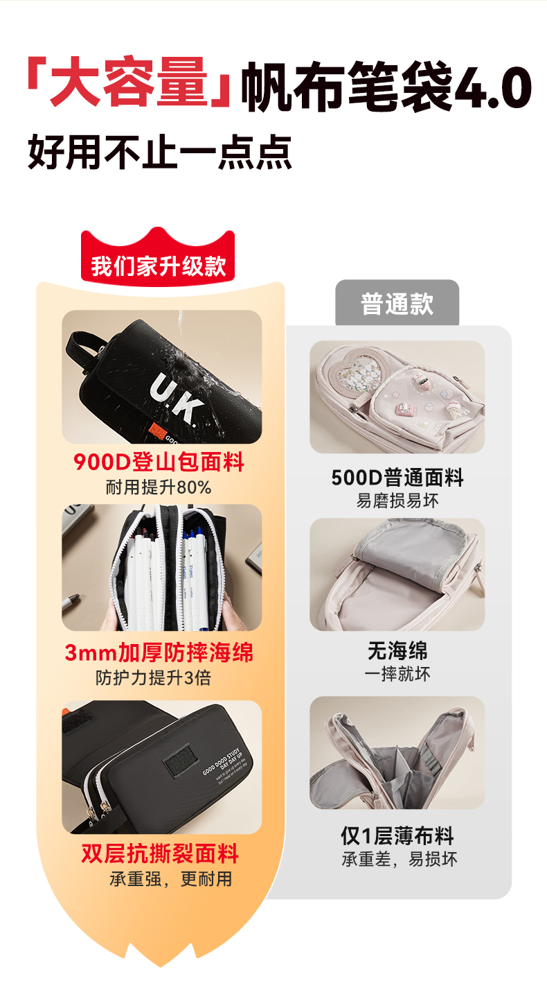 猫太子帆布笔袋大容量加厚高中简约铅笔盒男孩款学生初中女生小学生文具盒ins日系2025年新款两层收纳文具袋