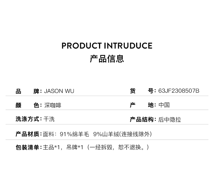 【JASON WU】新款羊毛通勤休闲外套短大衣鱼尾式半裙女
