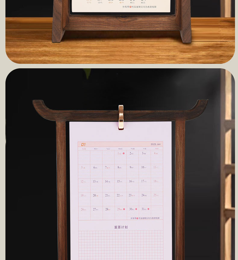 「实木台历!精美礼盒装」2025年新款国潮实木台历 居家日用商务办公桌面摆件创意企业礼品