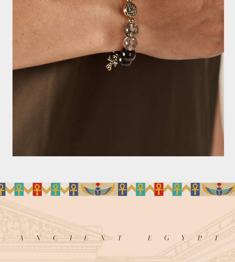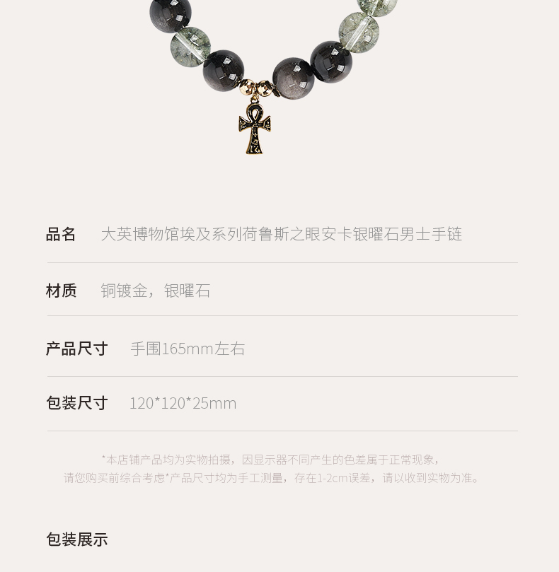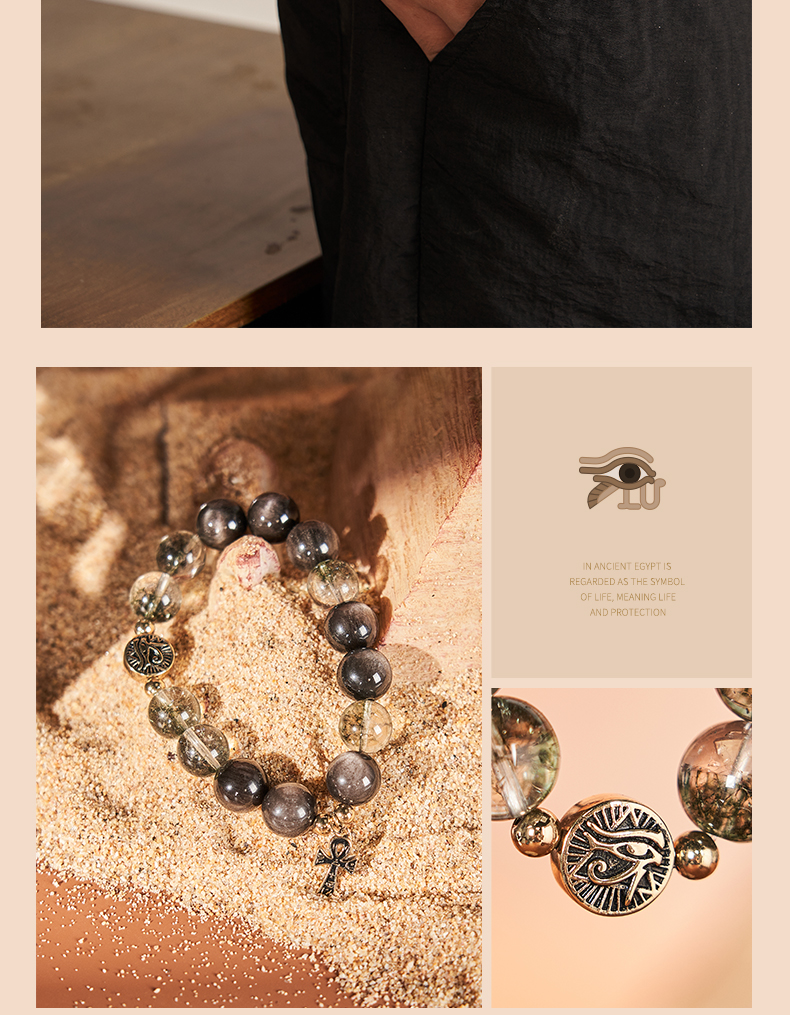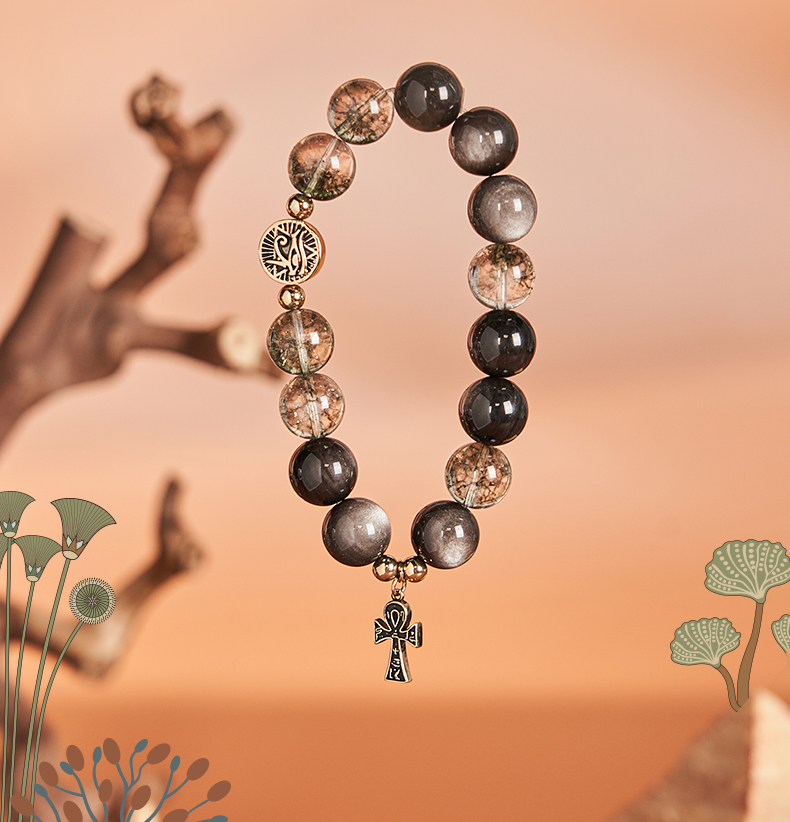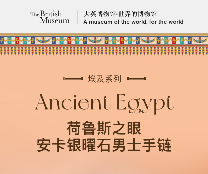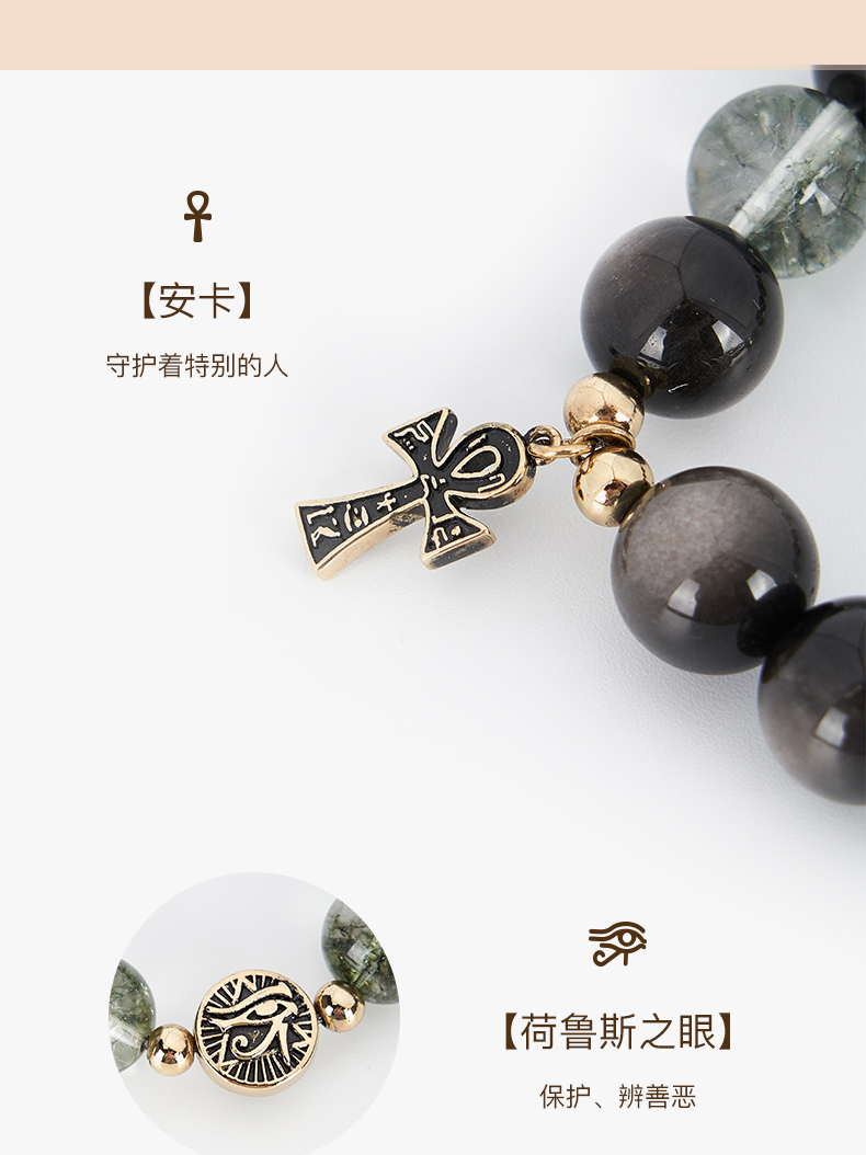 大英博物馆 埃及系列 荷鲁斯之眼 安卡银曜石 男士手链