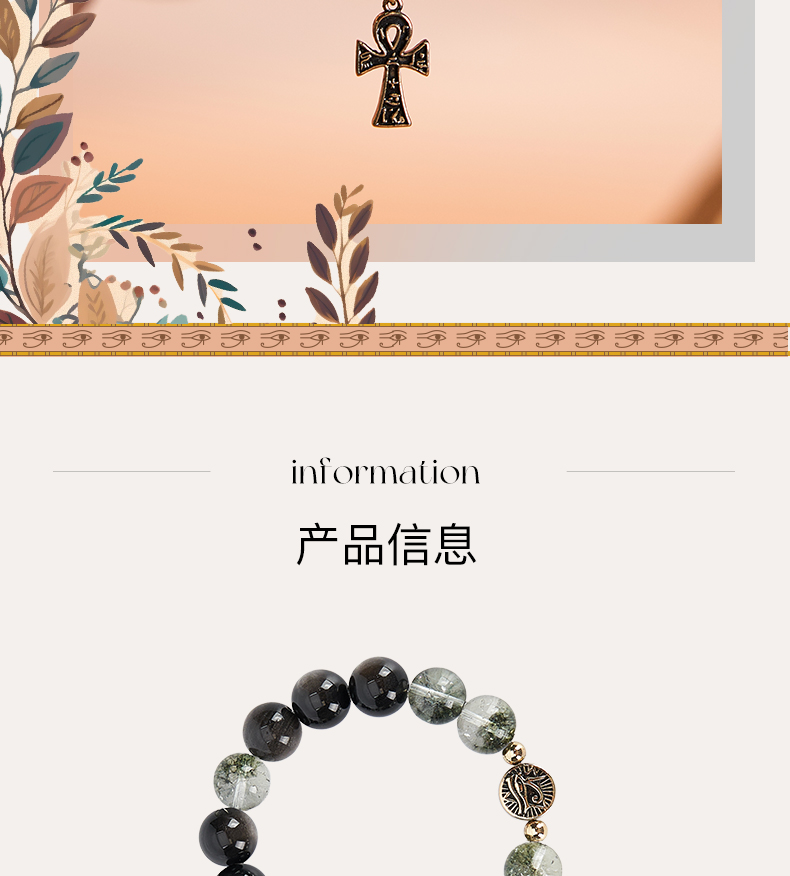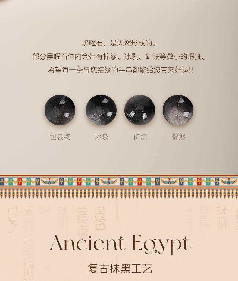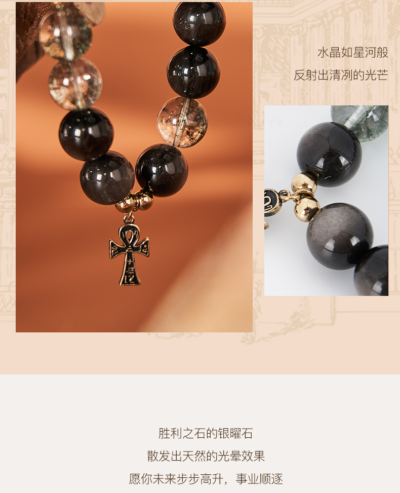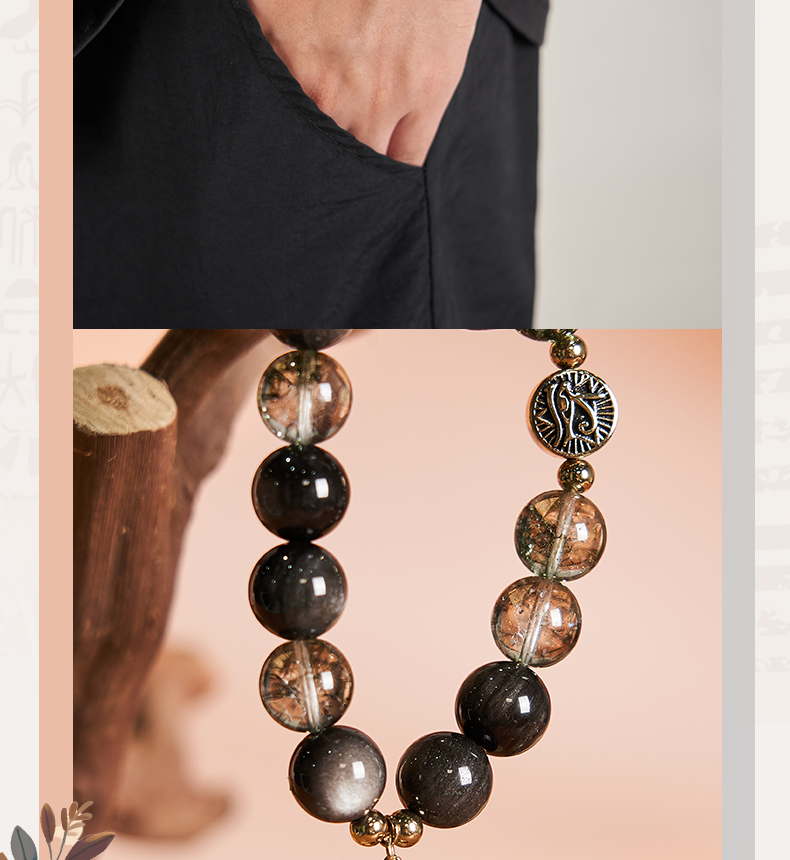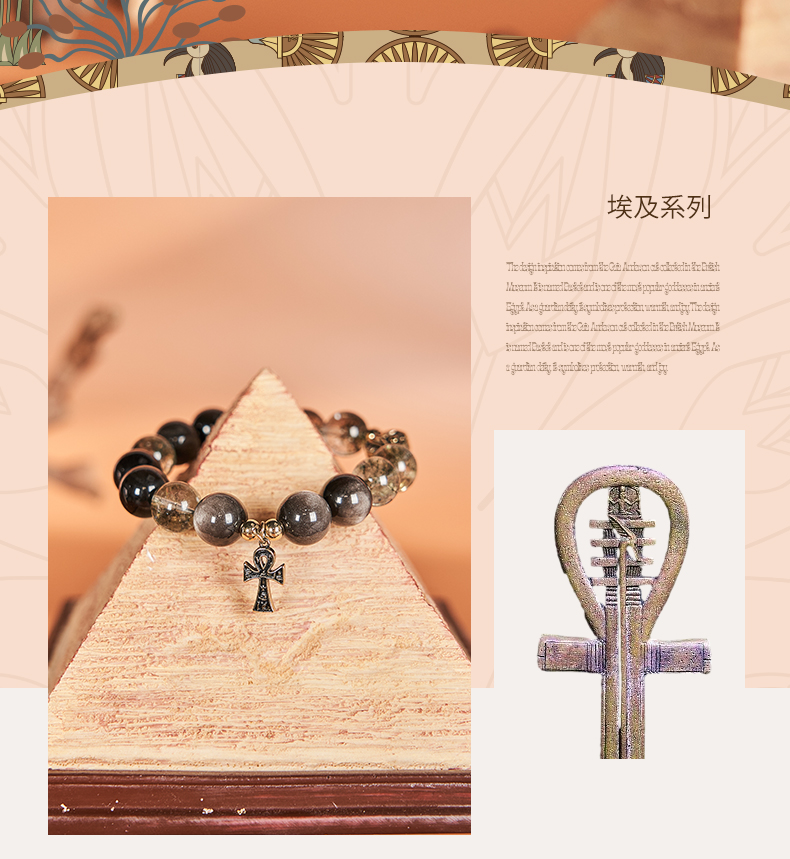 大英博物馆 埃及系列 荷鲁斯之眼 安卡银曜石 男士手链