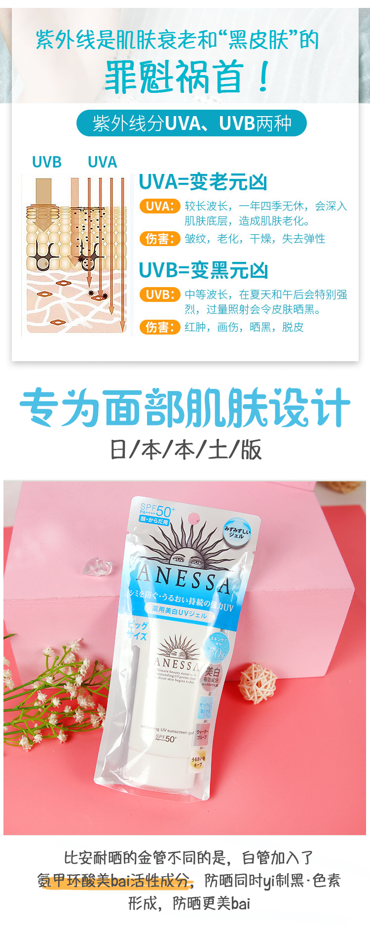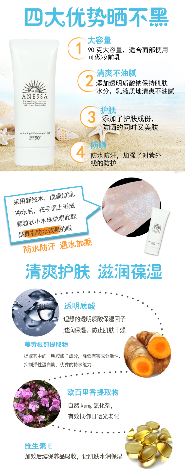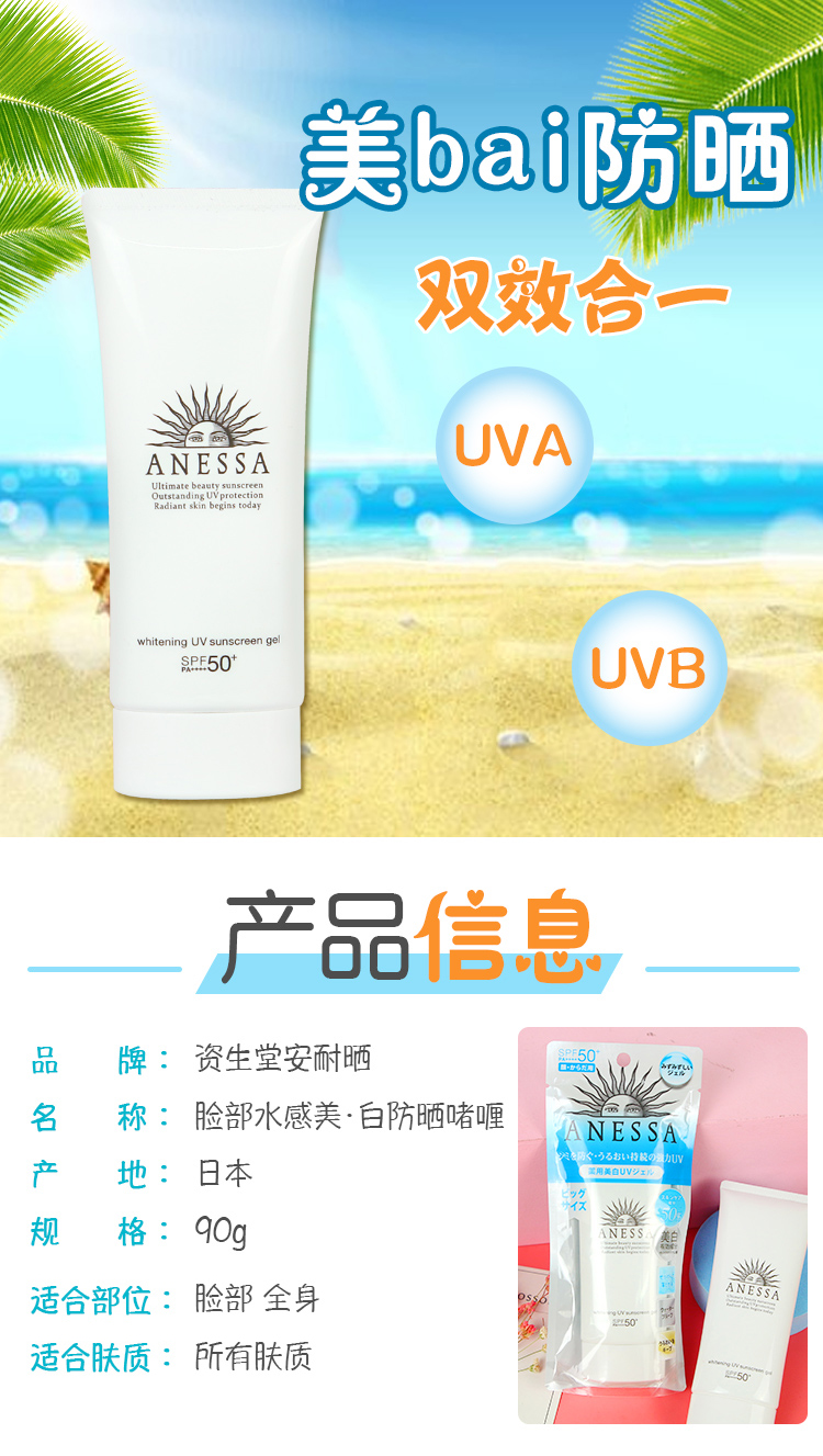 Shiseido资生堂 安耐晒防晒霜白管新版脸部专用90ml(临时)