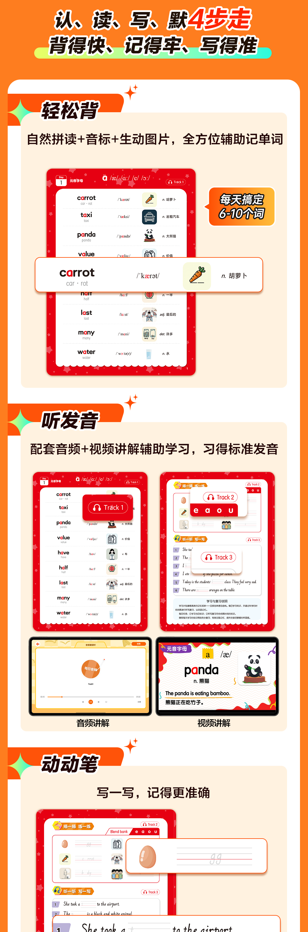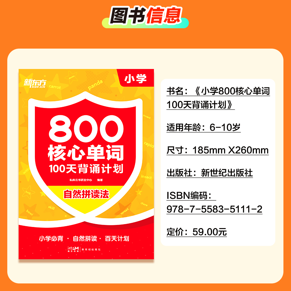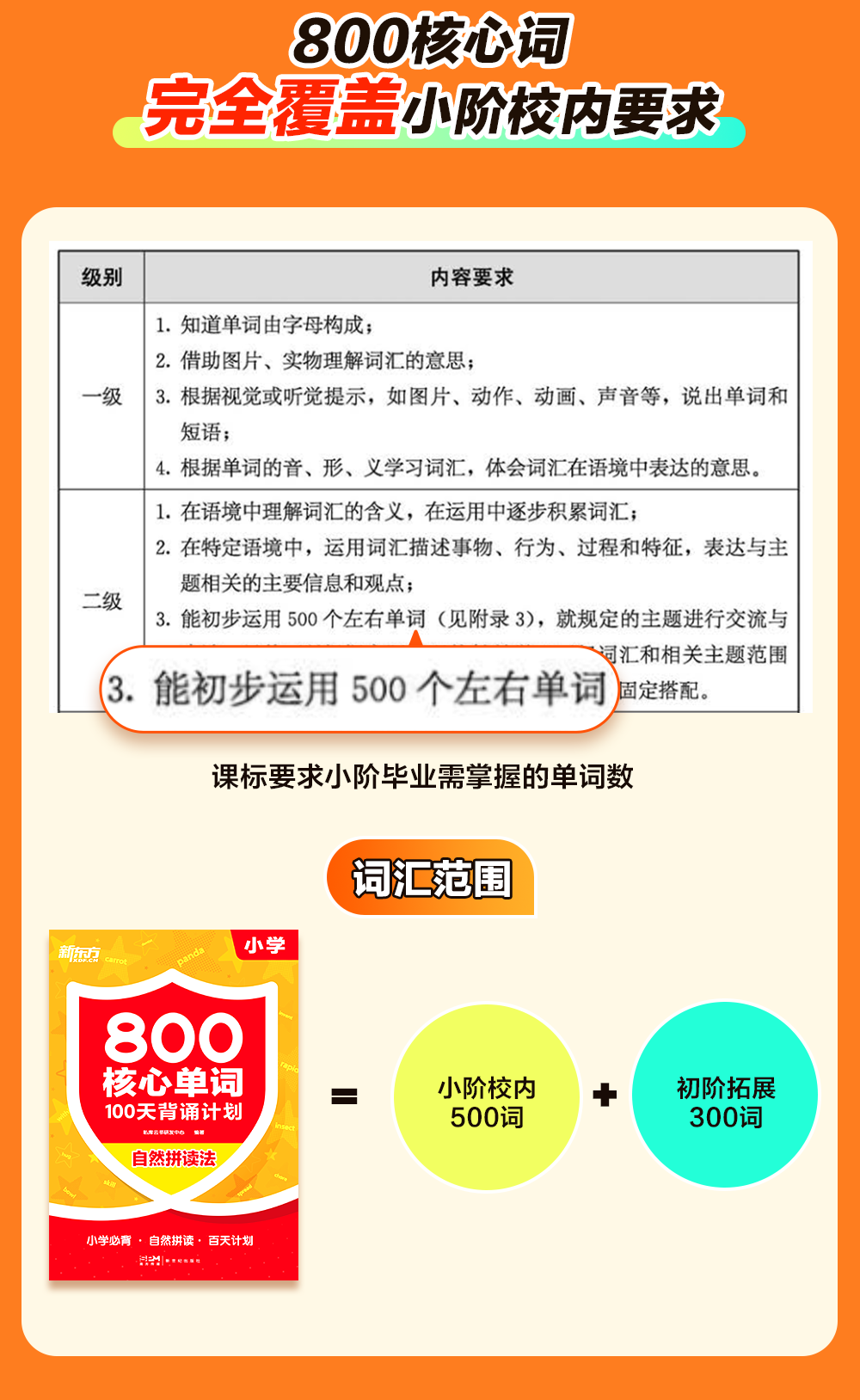 【新东方】小学800核心词100天背诵计划自拼拼读法高效记忆