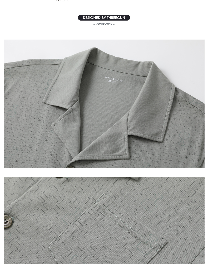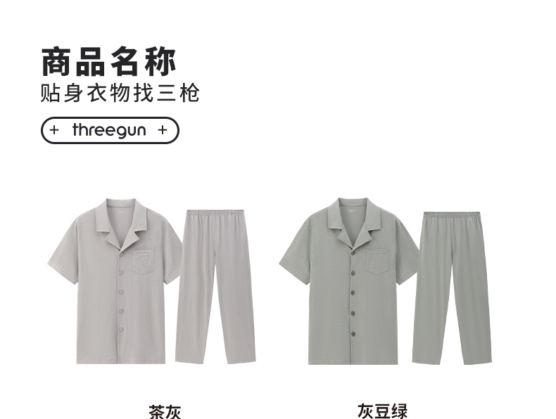 Threegun三枪 水柔棉翻领开襟短袖长裤男家居套-T80136D01
