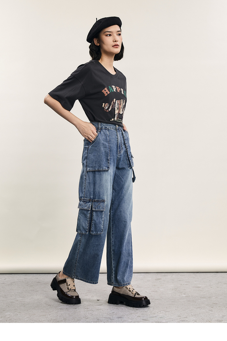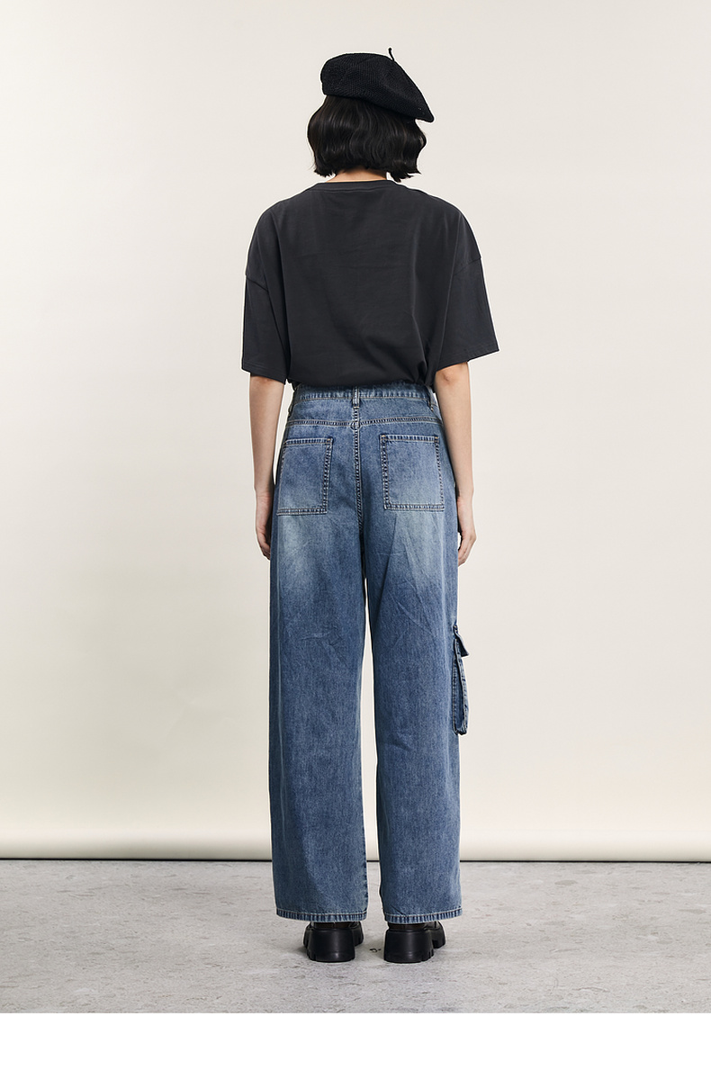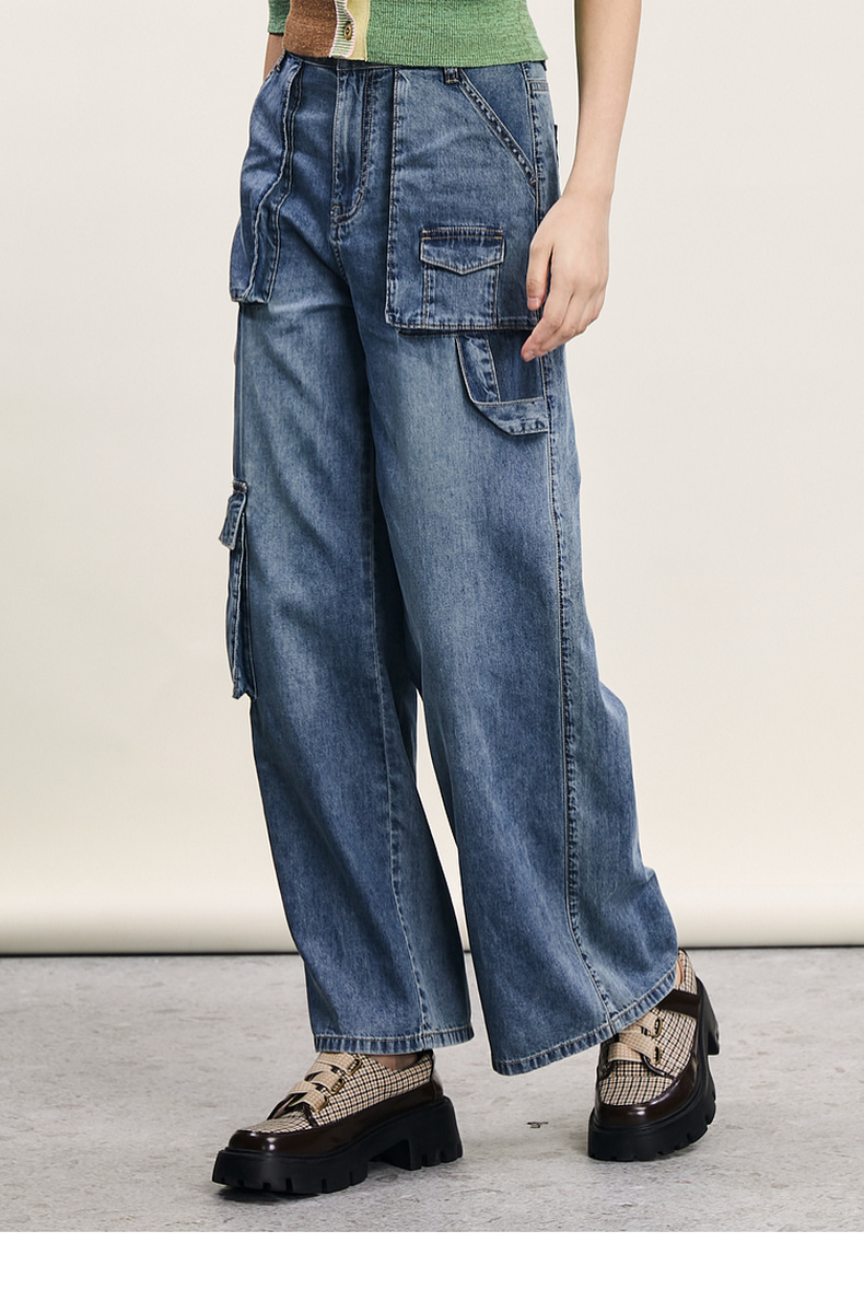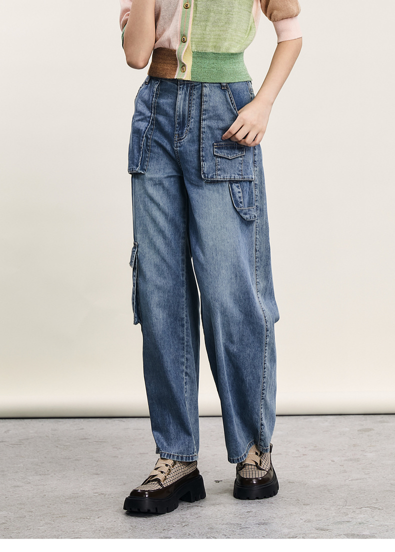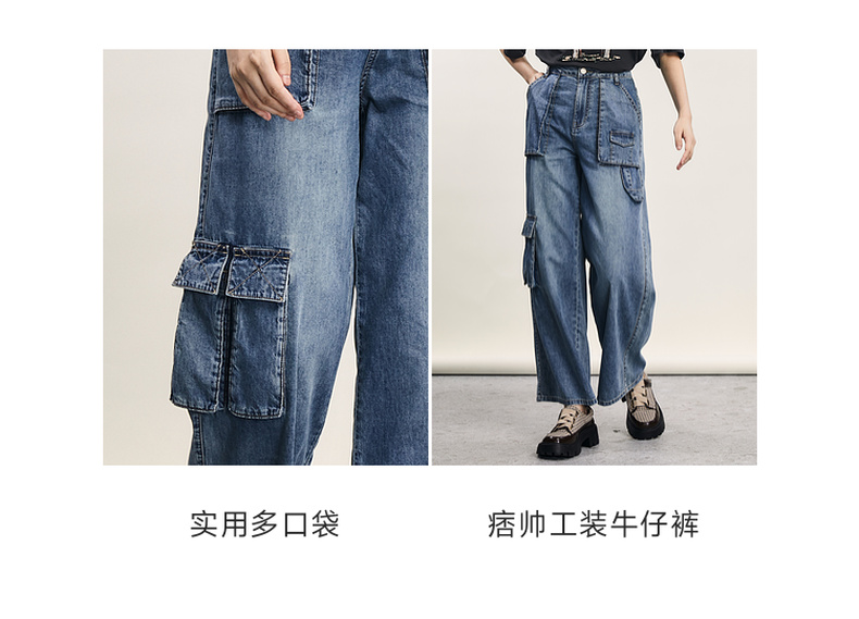 谜底牛仔直筒裤女2024年夏季新款工装风百搭大口袋长裤242MK0704