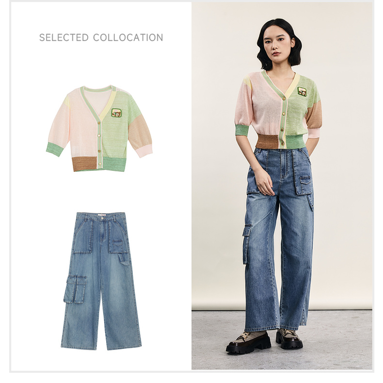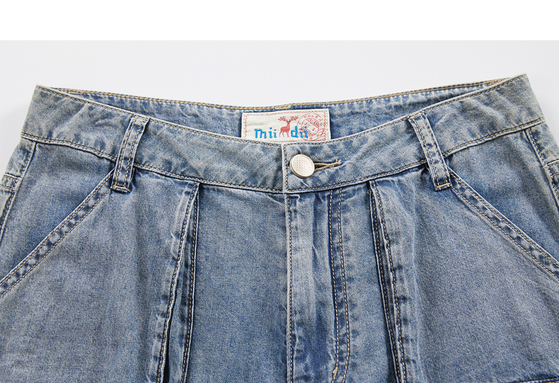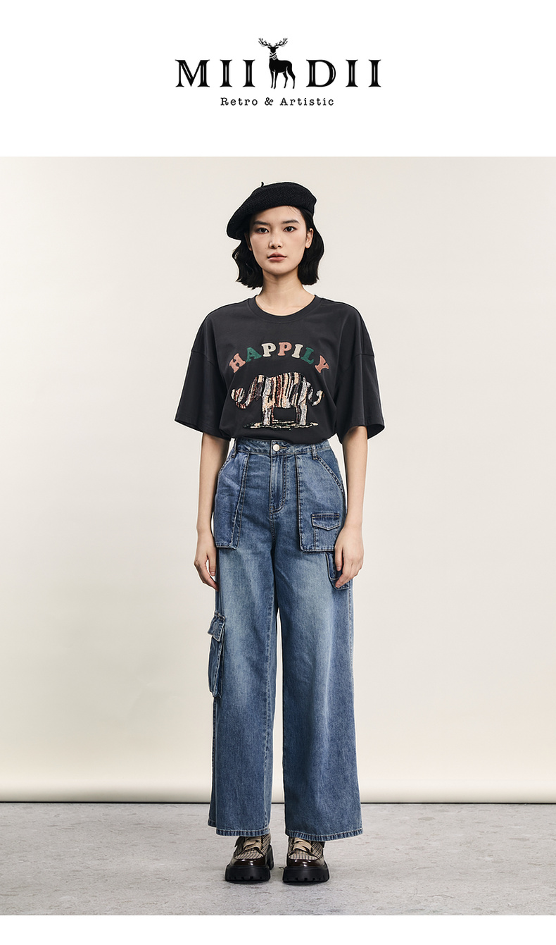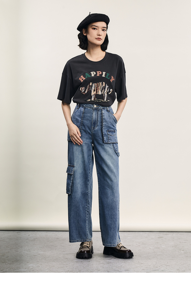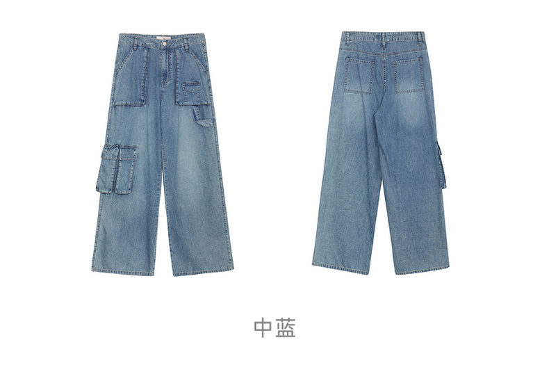 谜底牛仔直筒裤女2024年夏季新款工装风百搭大口袋长裤242MK0704