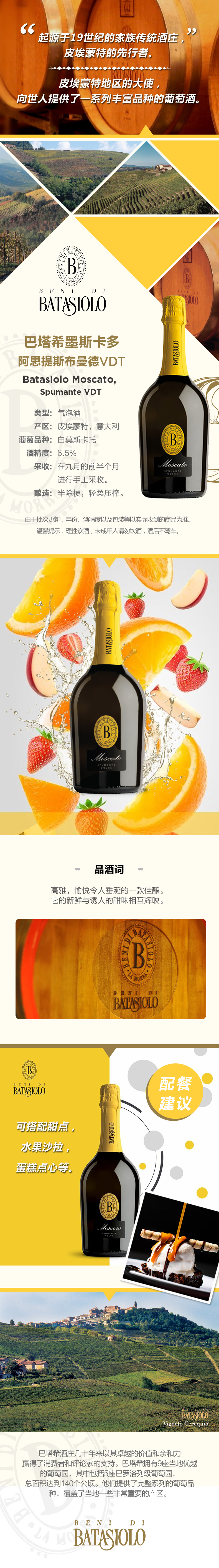 进口意大利巴塔希墨斯卡多斯布曼德VDT 甜酒 750ml精选包邮