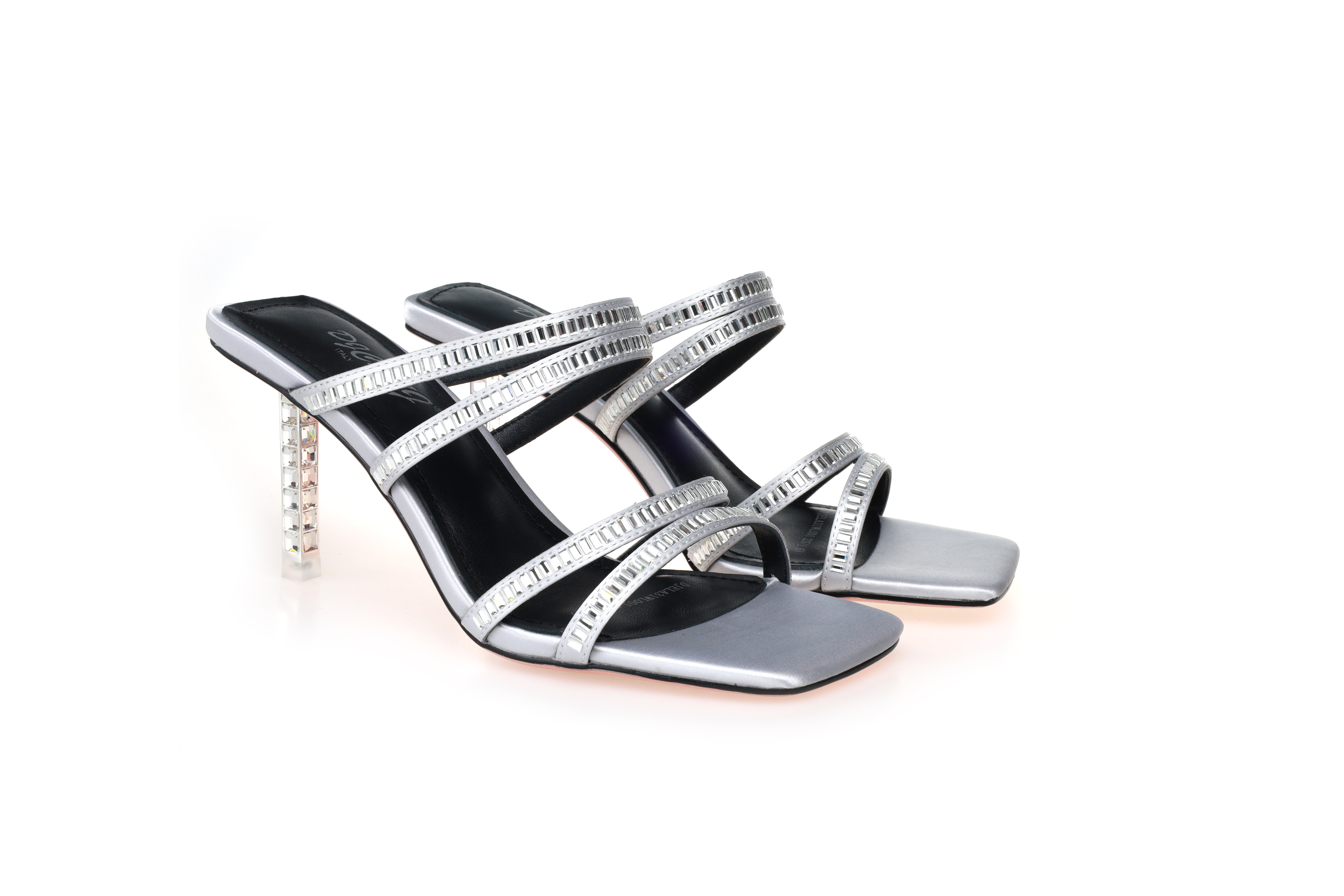 豪麟名鞋奥莱迪嘉女鞋真丝布凉拖DJELA31WL001银色 原价1660元