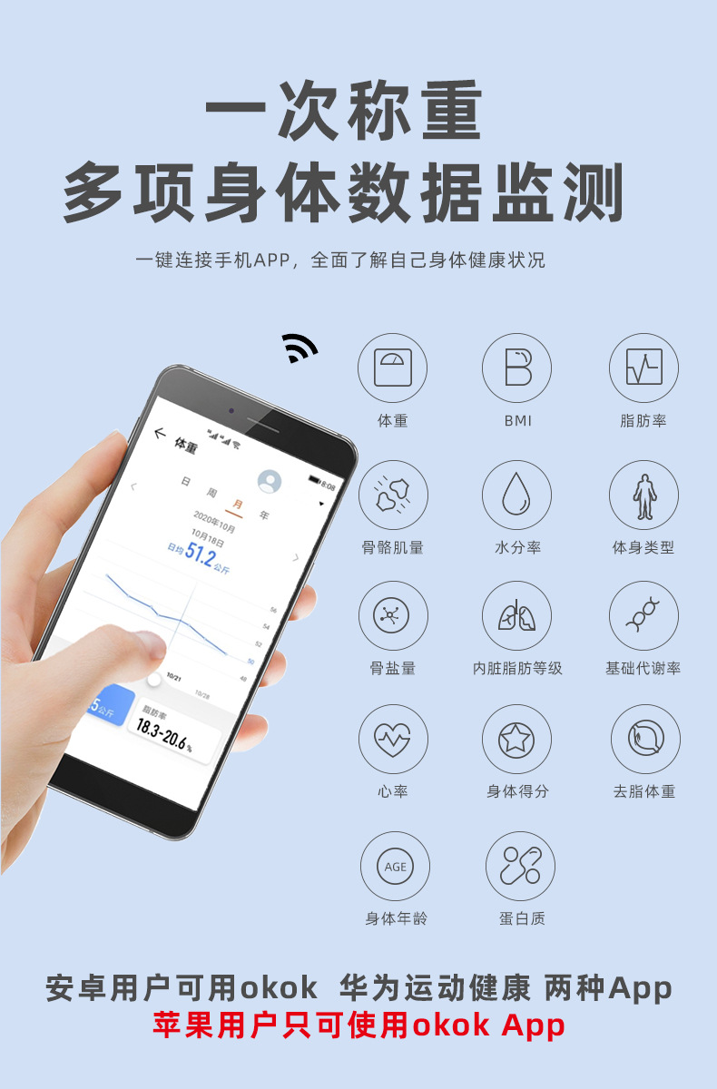 「一次称重!监测多项数据」体脂秤人体电子秤 居家日用体脂称智能体重秤